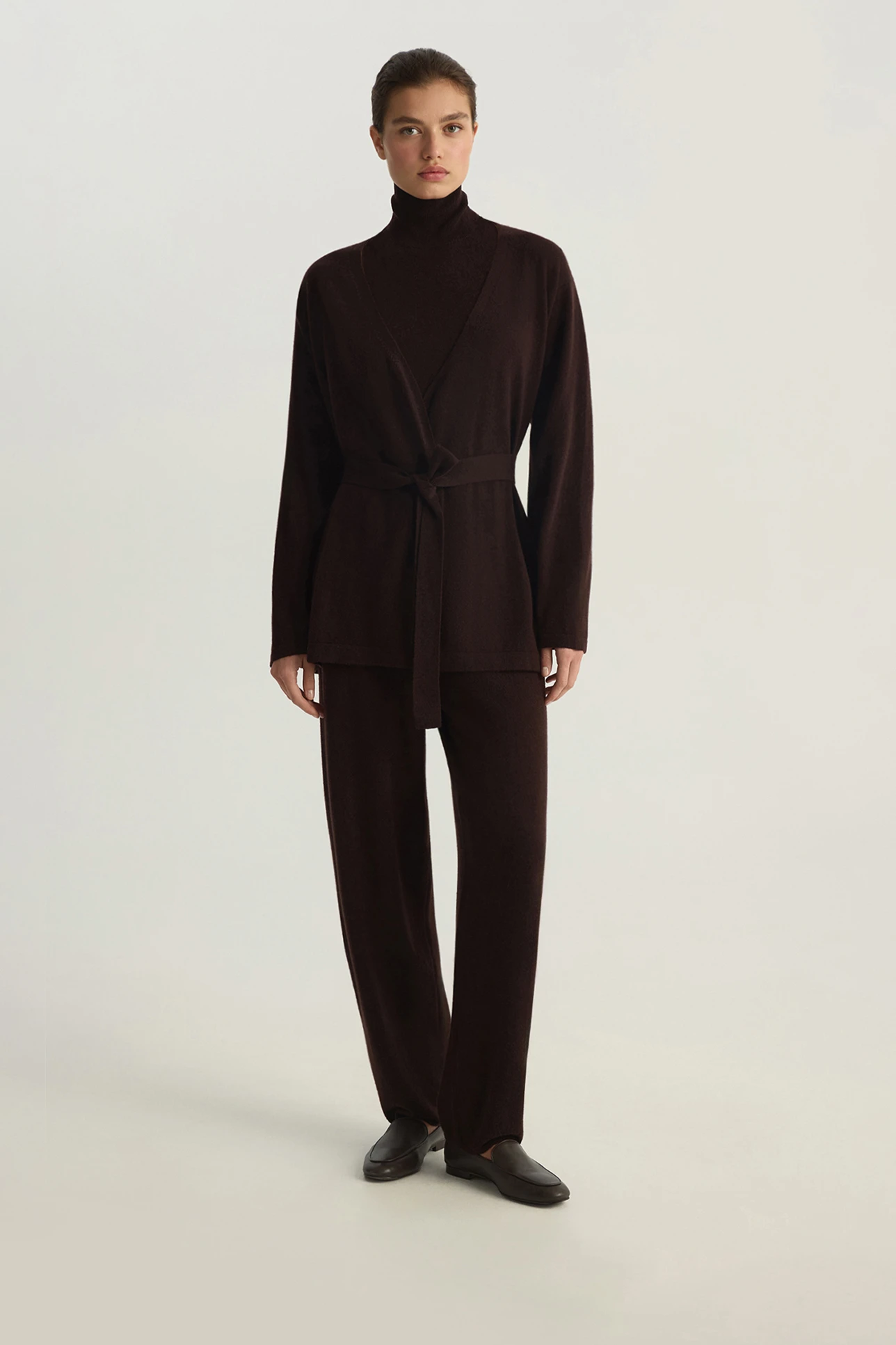 Кардиган-кимоно из кашемира шоколадного цвета