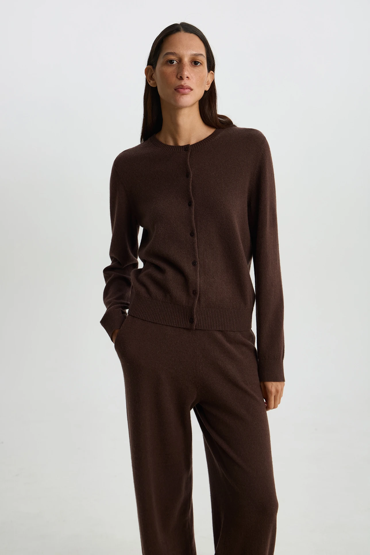 Кардиган из шерсти с добавлением кашемира шоколадного цвета