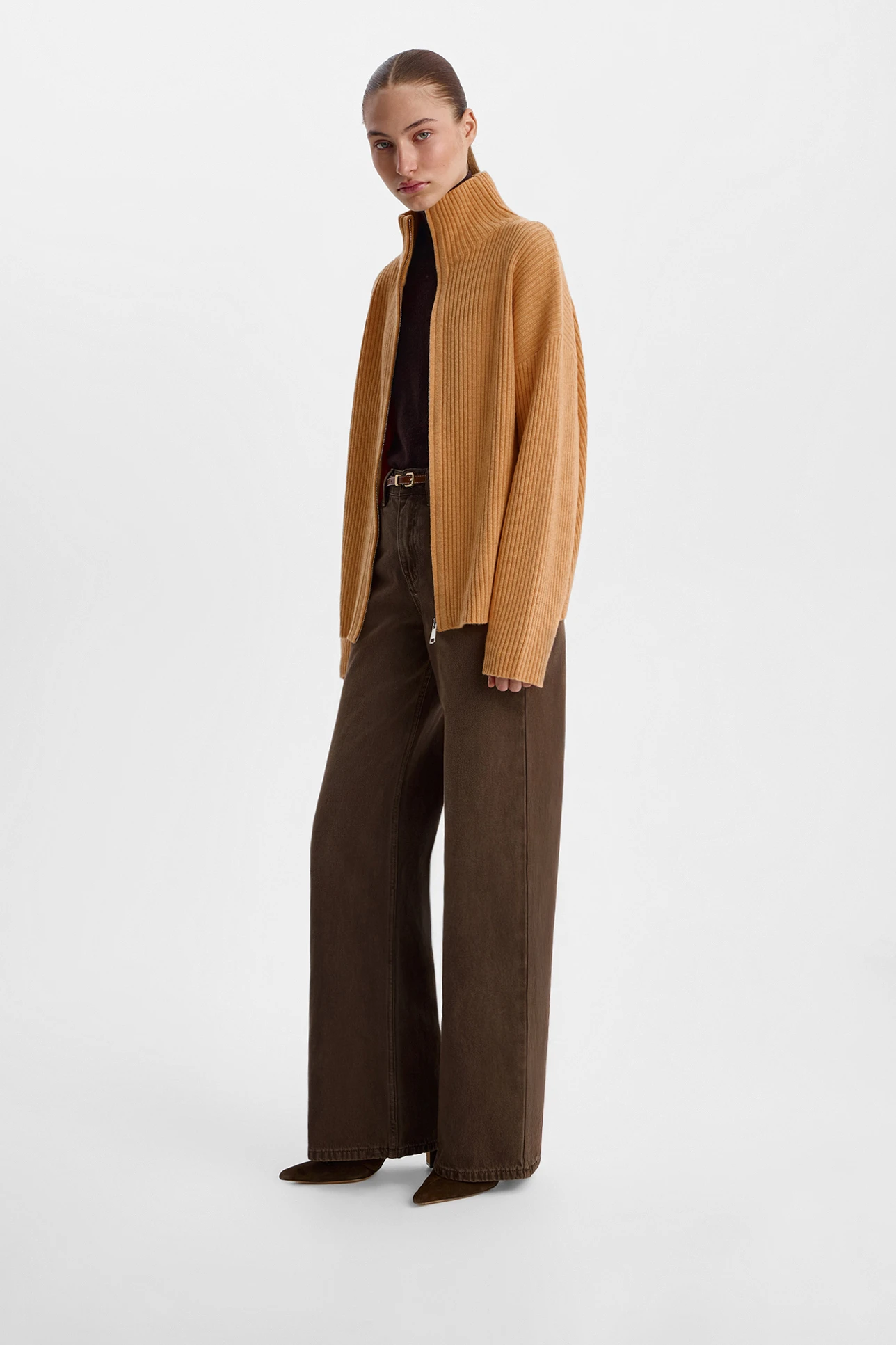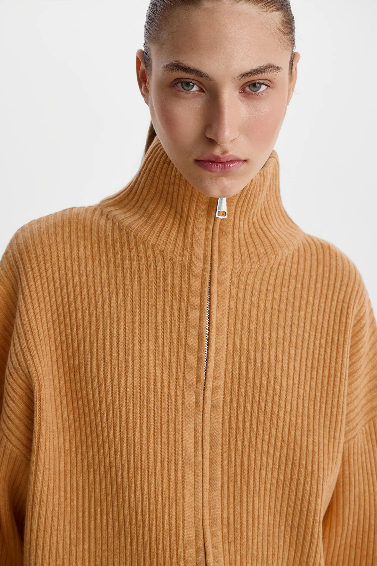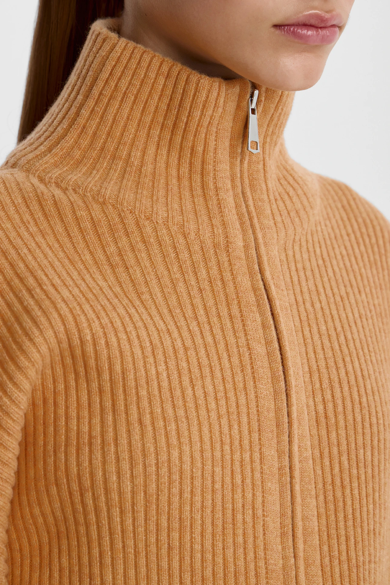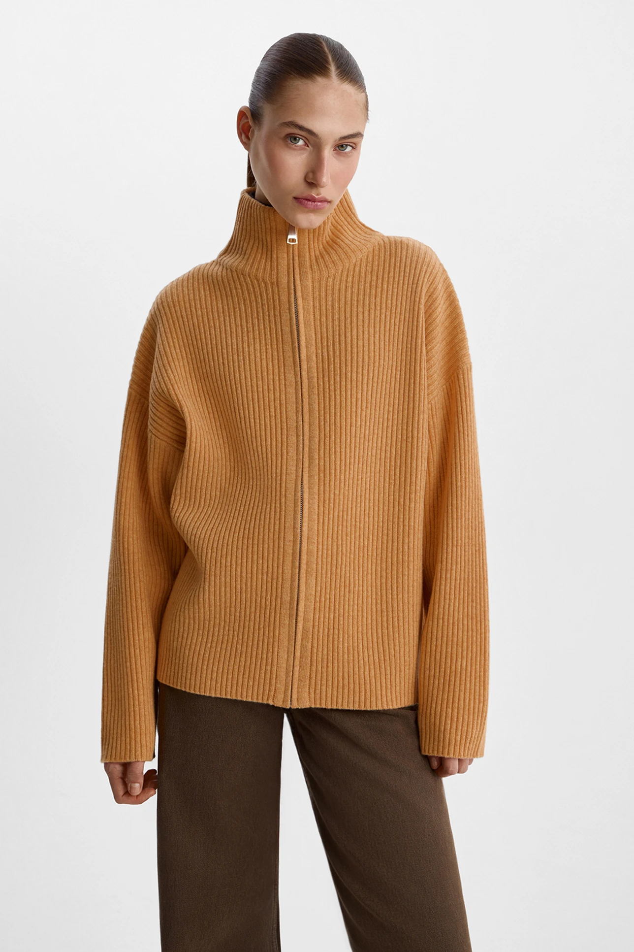 Кардиган на молнии из шерсти с добавлением кашемира медового цвета