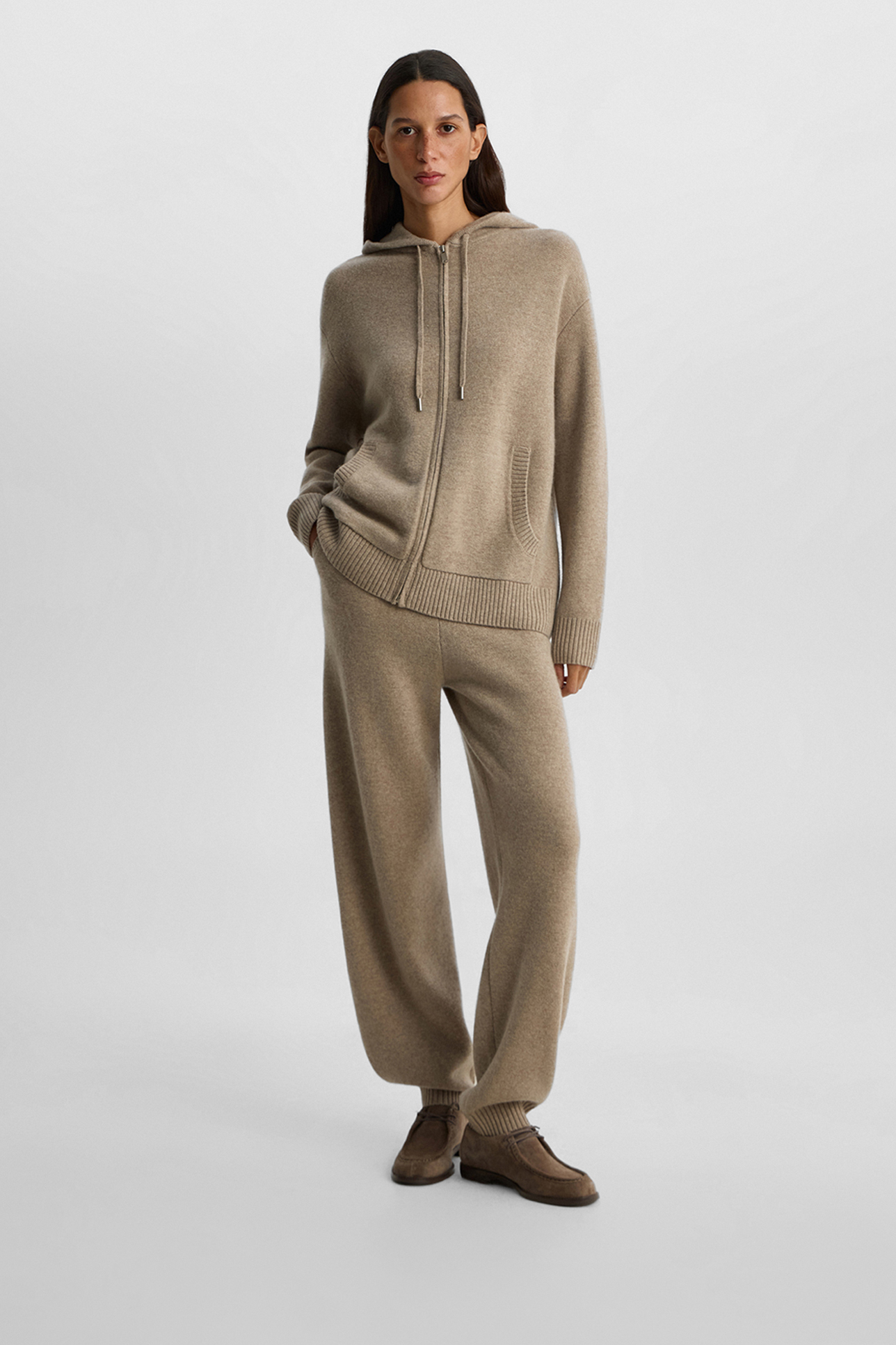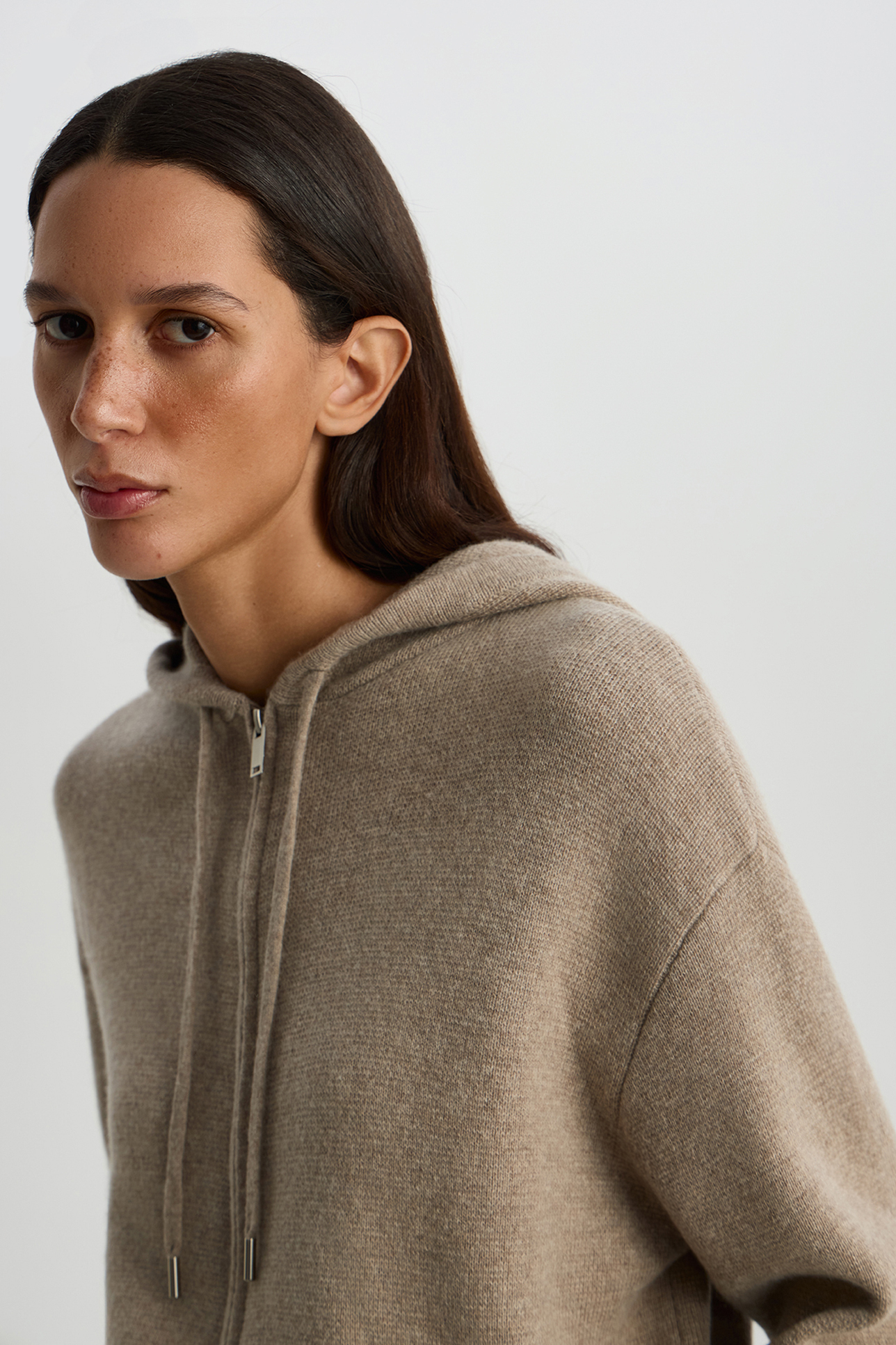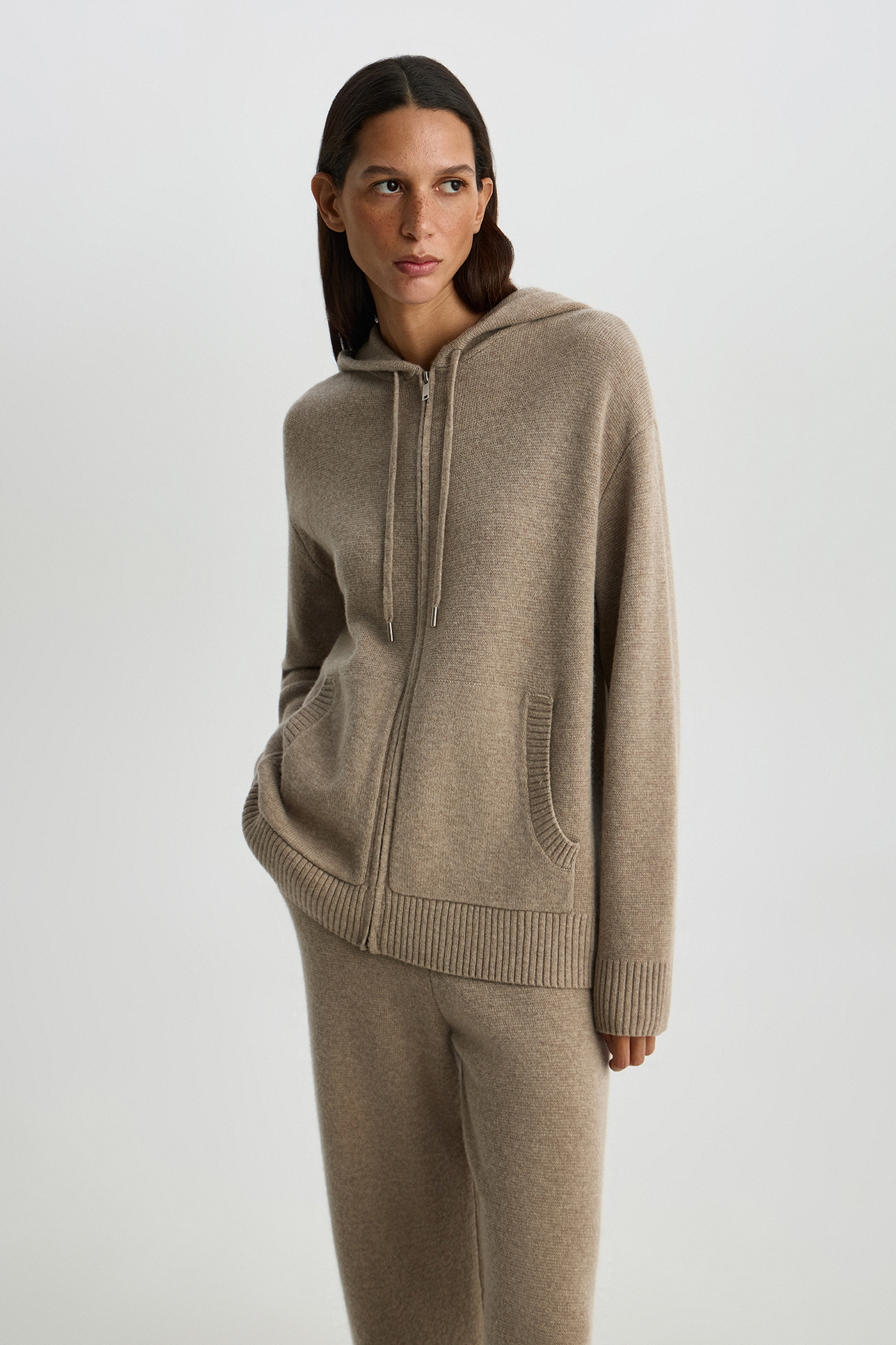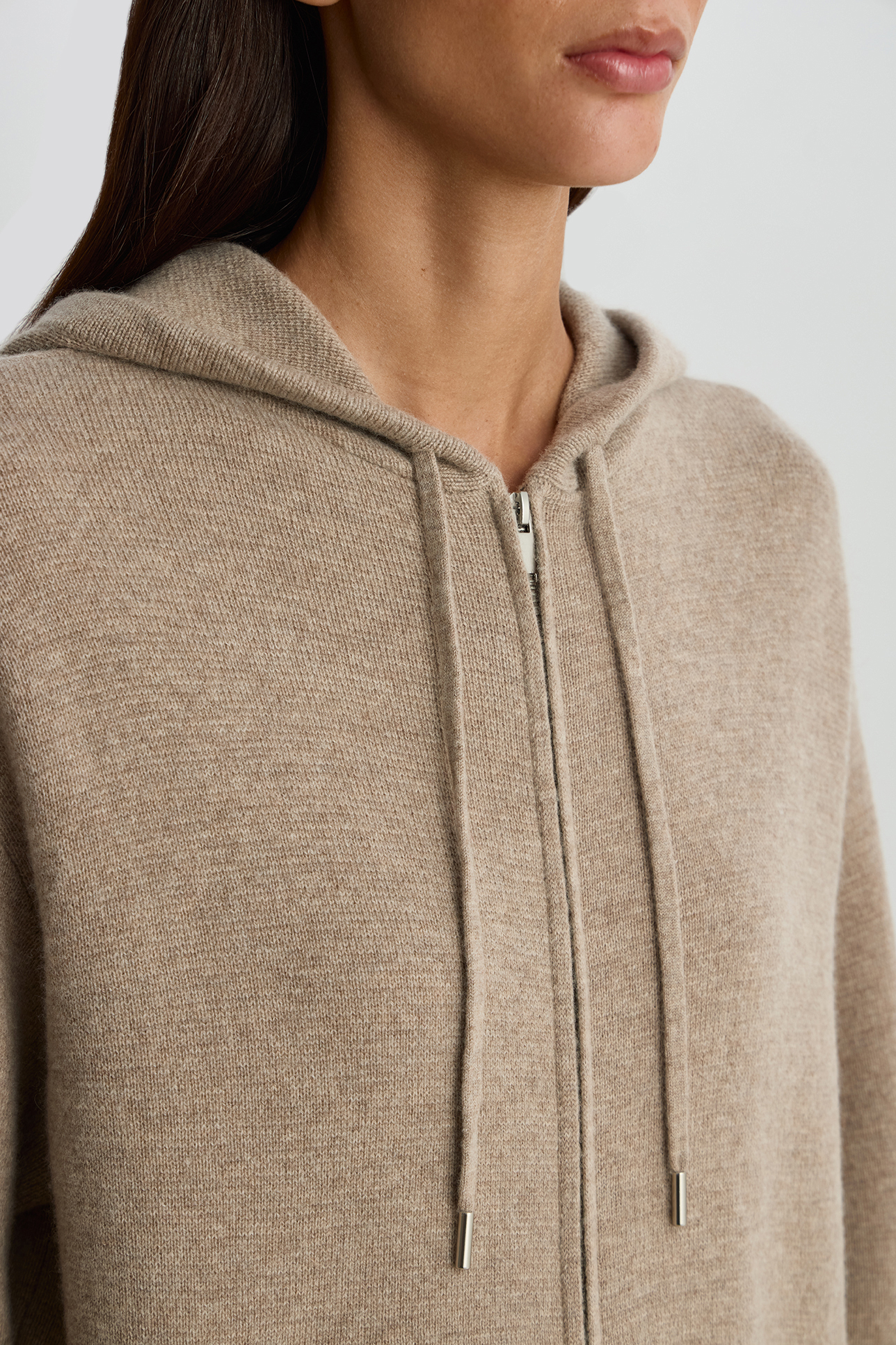 Худи на молнии из шерсти с добавлением кашемира бежевого цвета