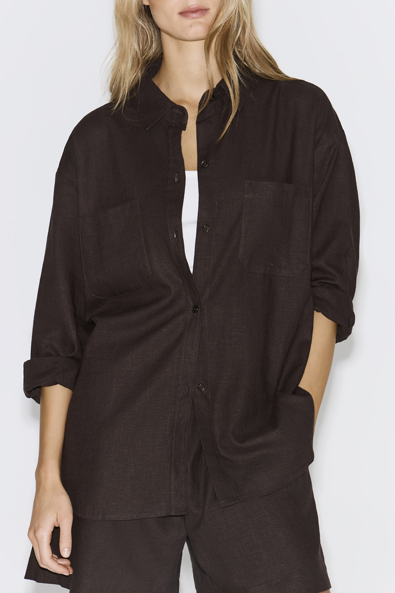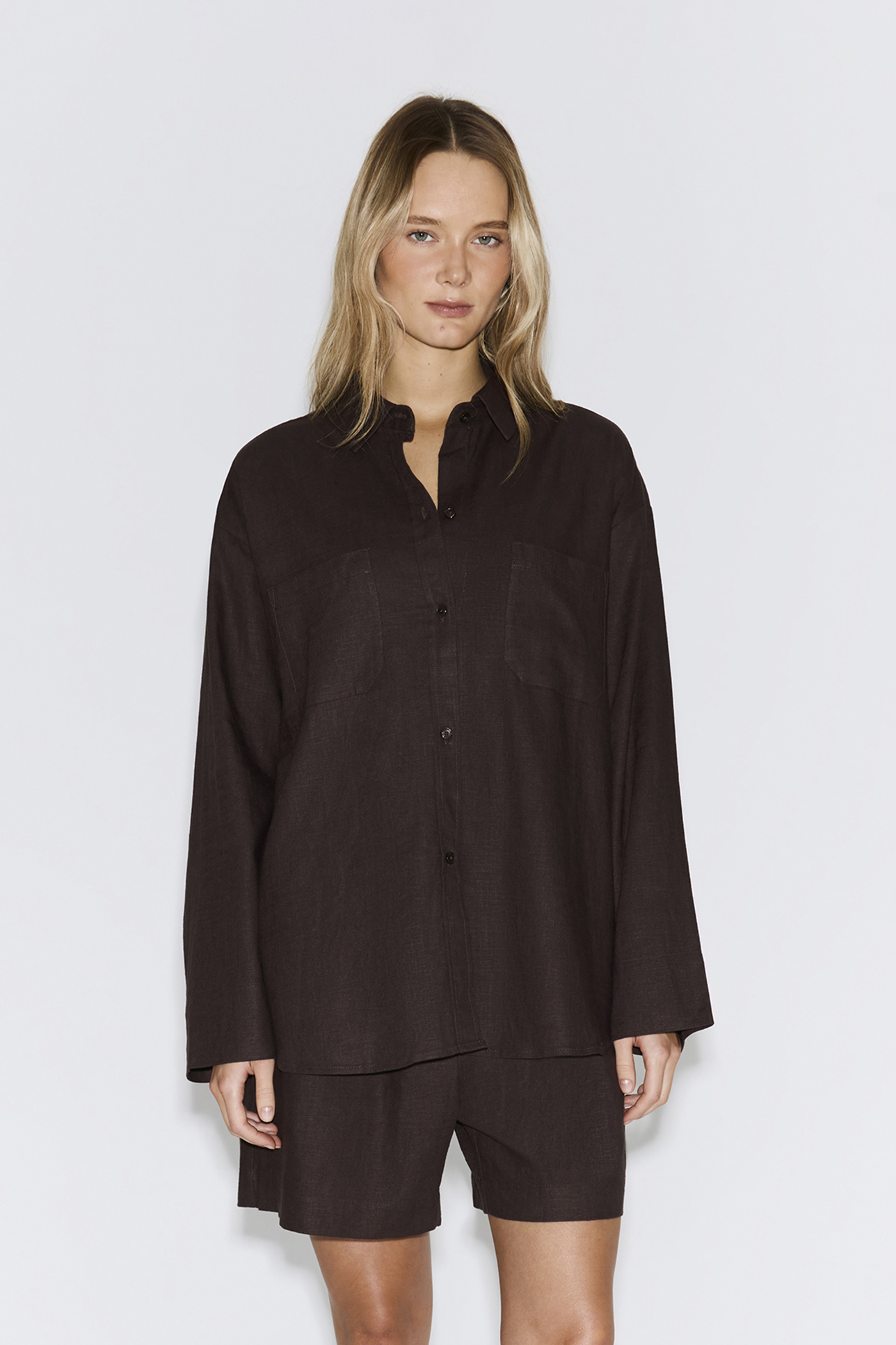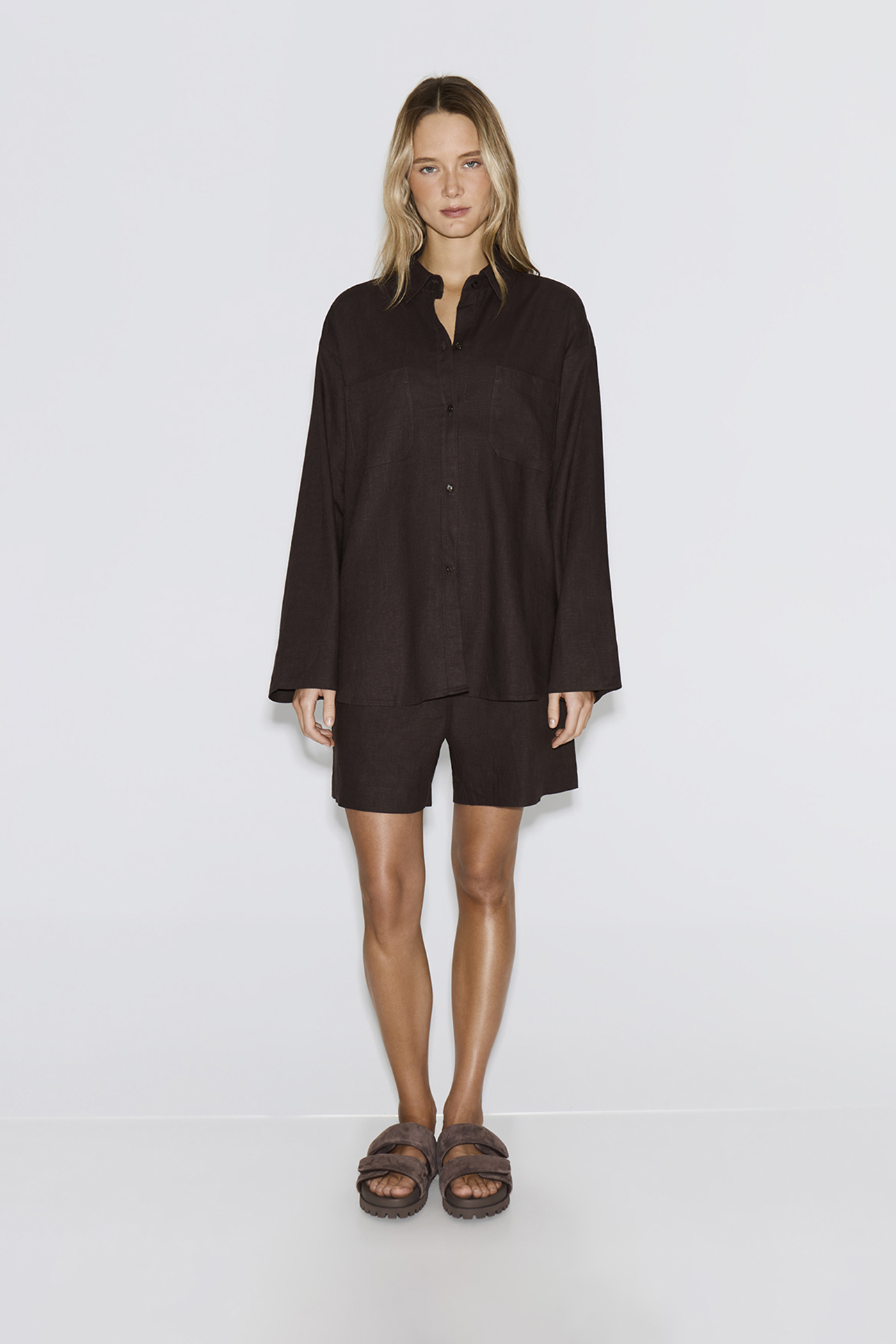 Костюм изо льна шоколадного цвета