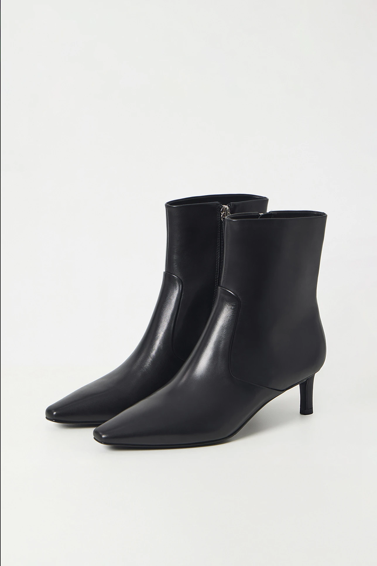 Кожаные ботильоны на среднем каблуке черного цвета