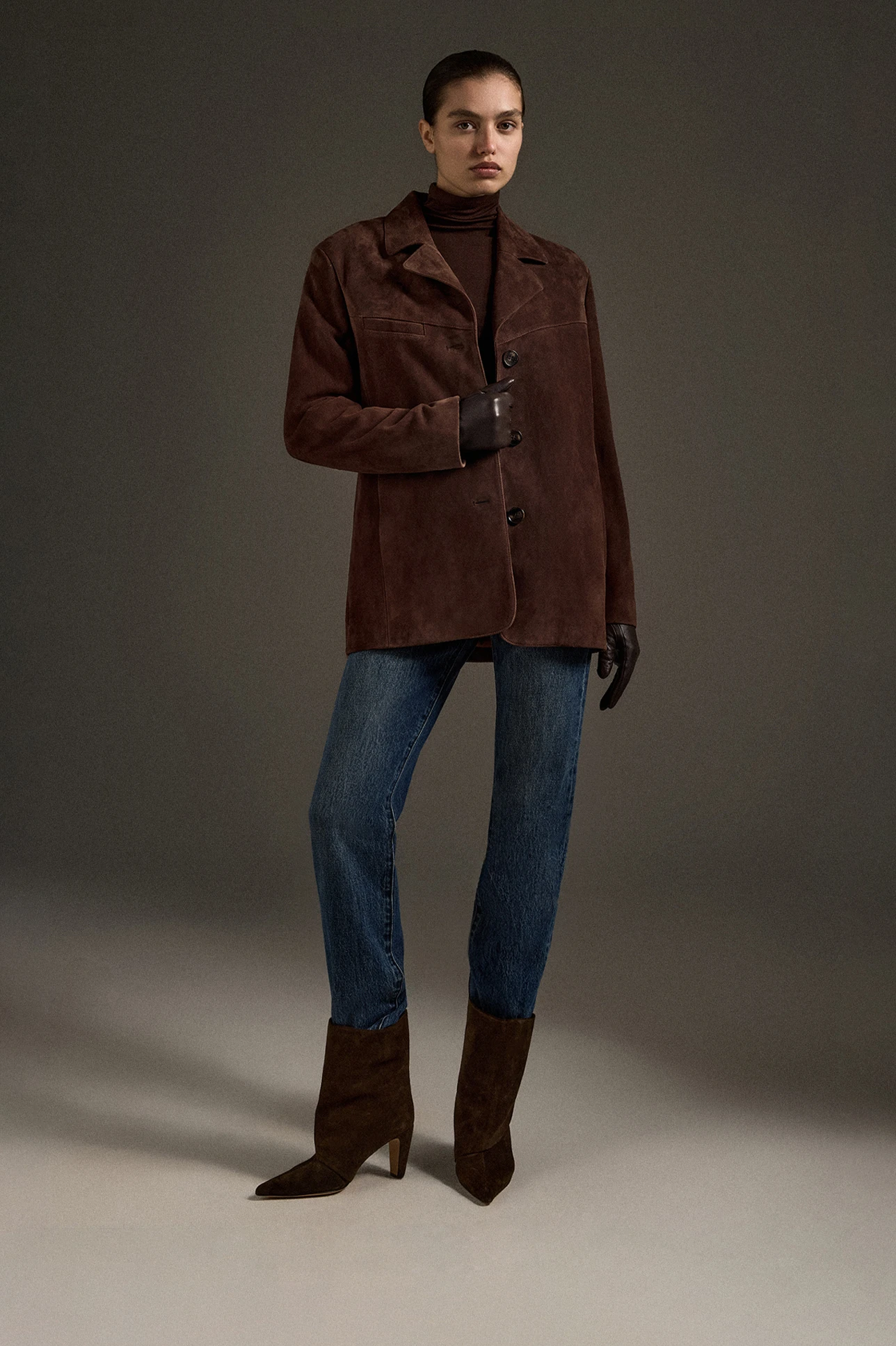 Кожаные перчатки темно-коричневого цвета