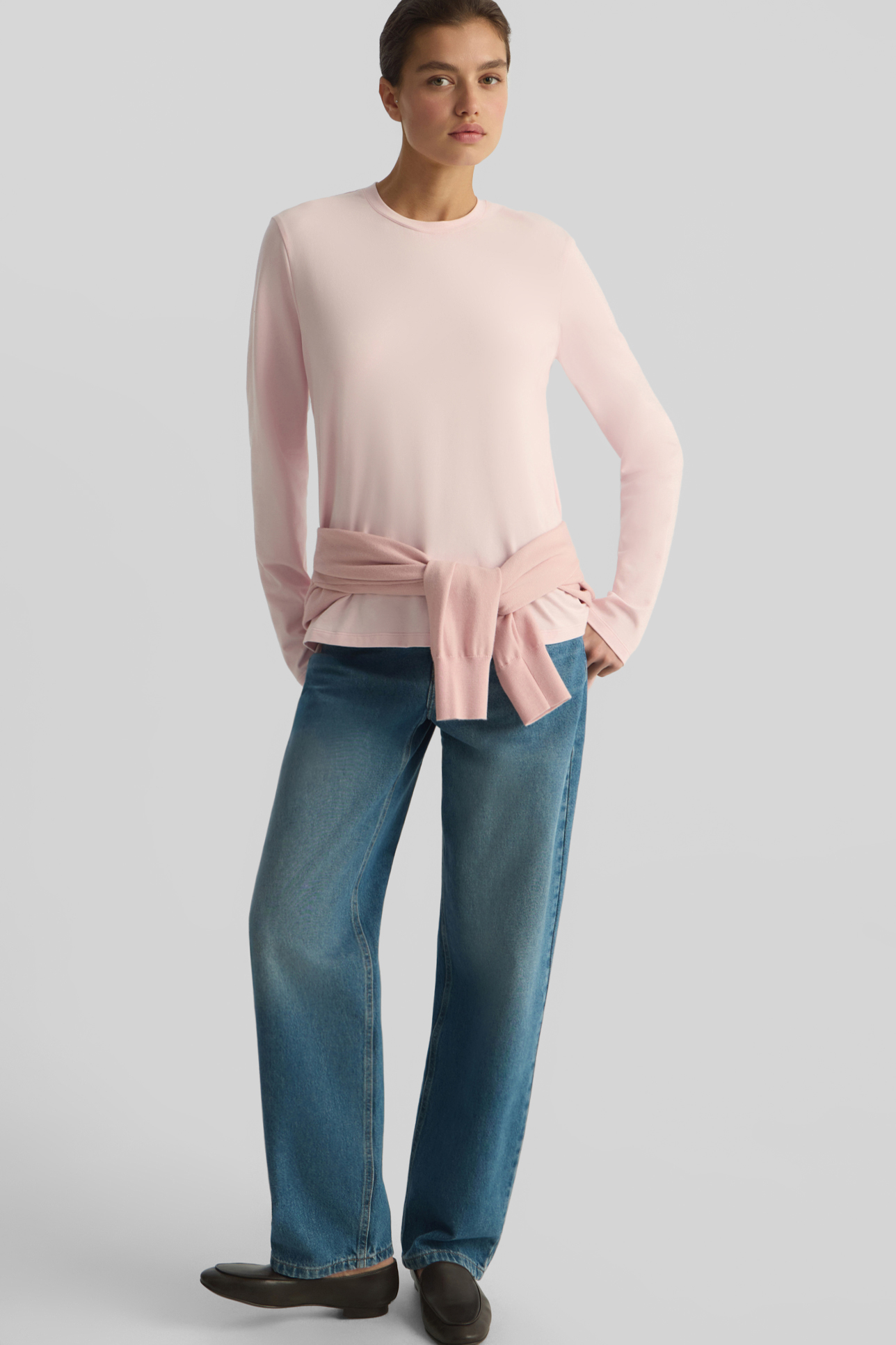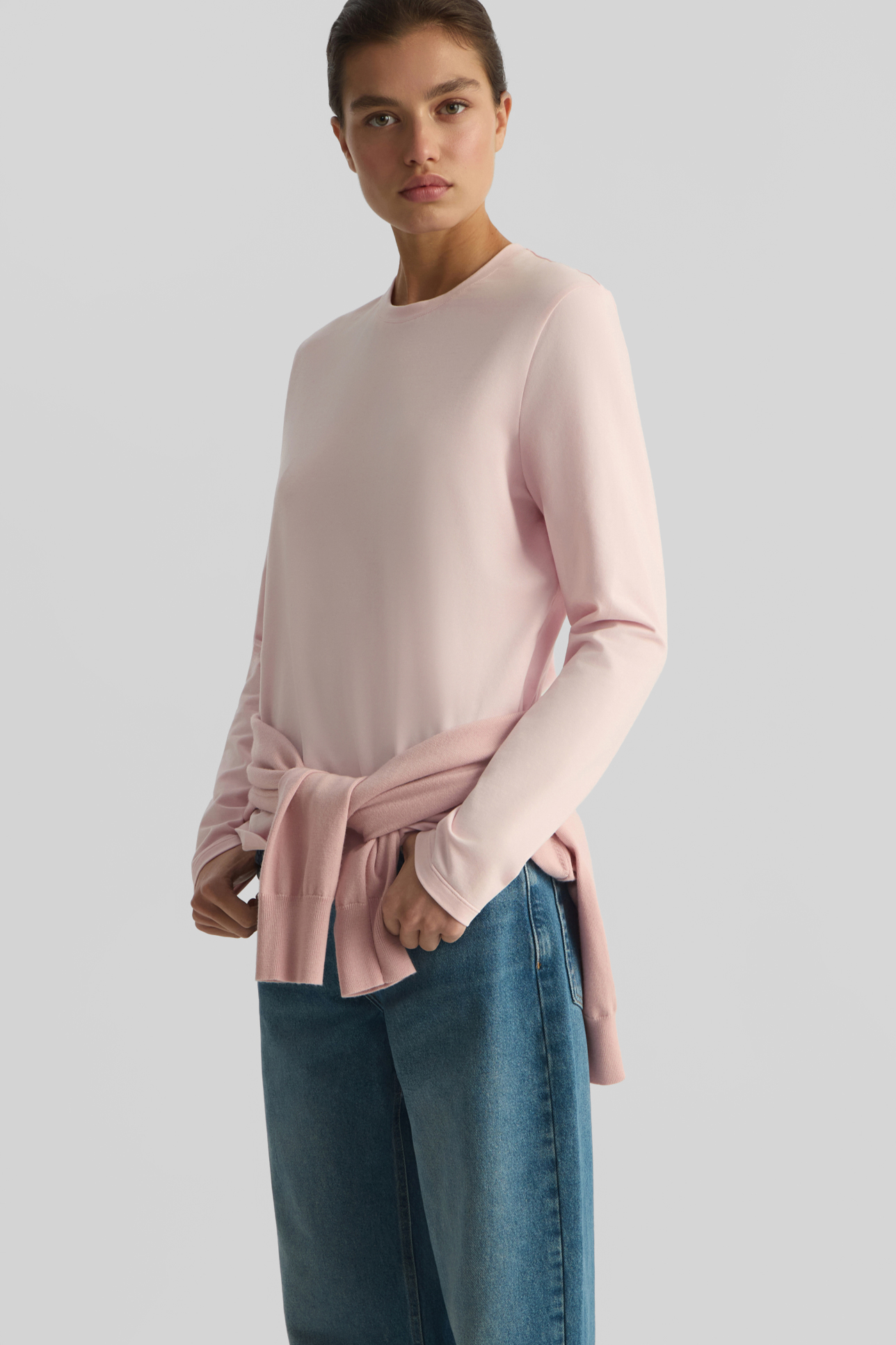 Лонгслив из кулирной глади розового цвета