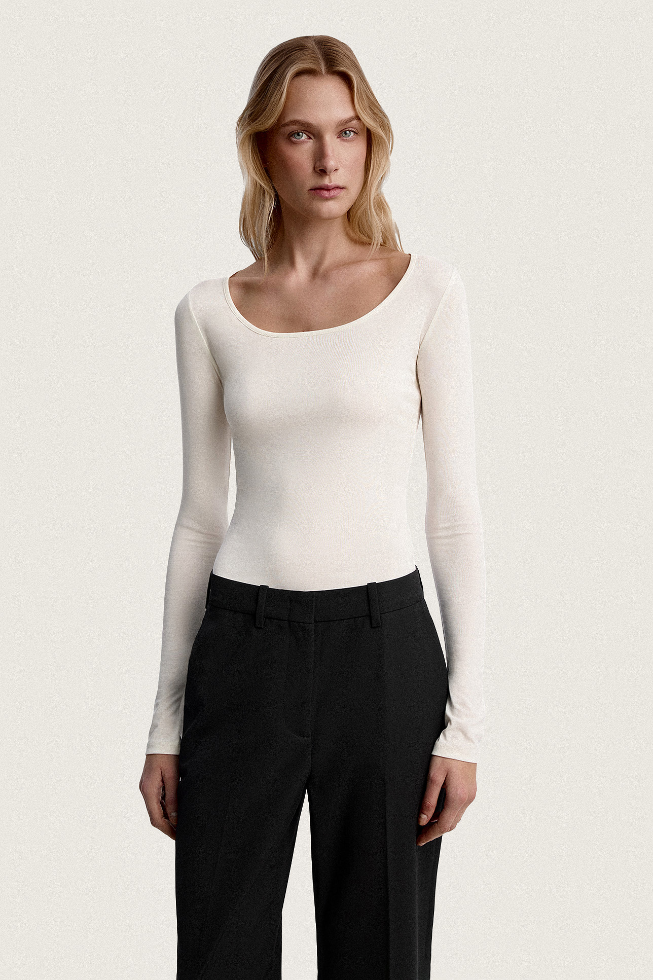 Лонгслив облегающий c вырезом по горловине
