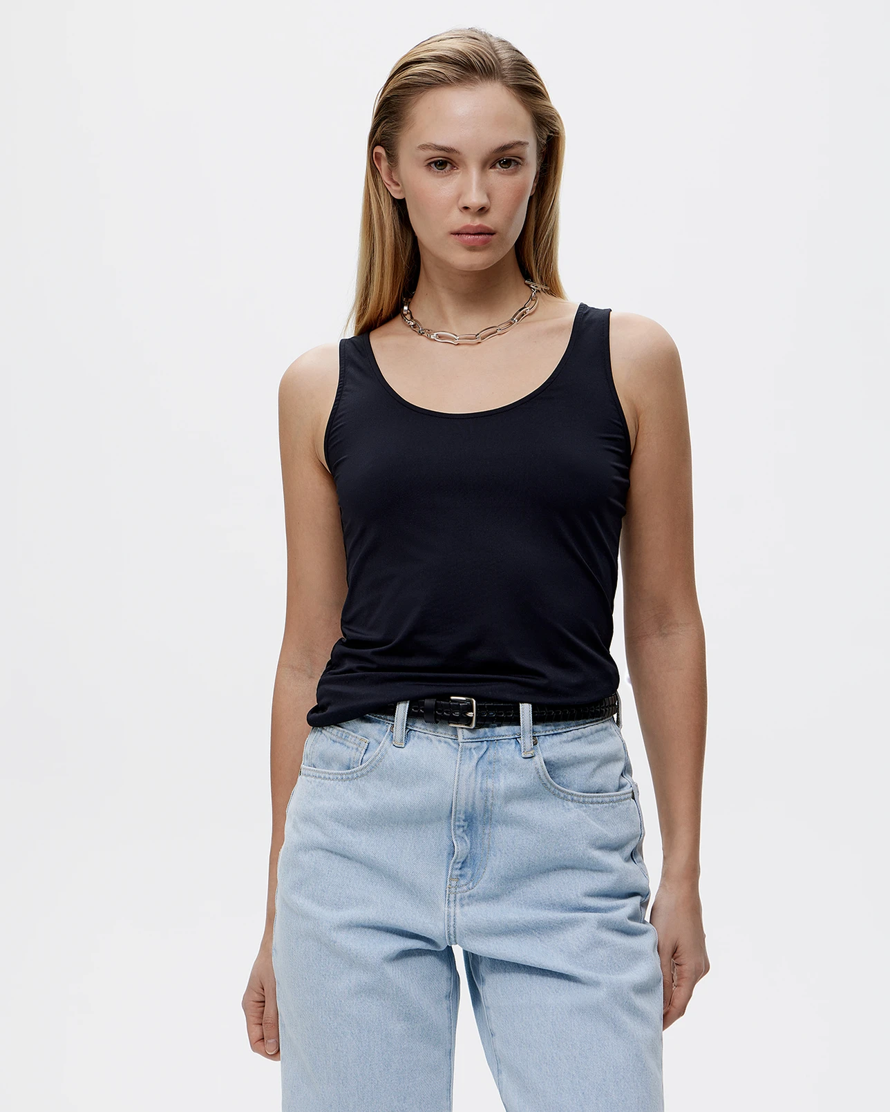 Майка из тонкого трикотажа черного цвета
