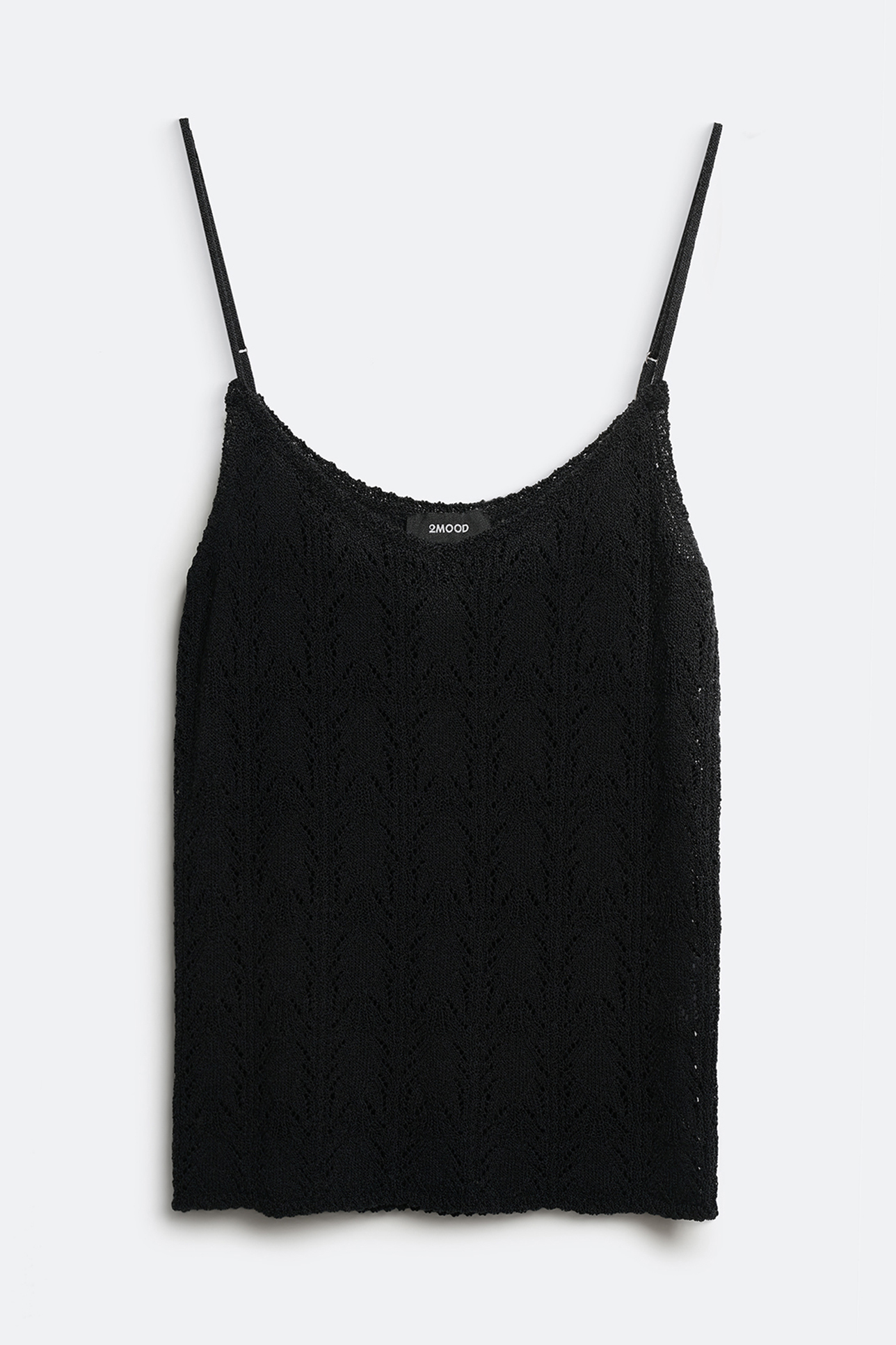 Майка на тонких бретелях ажурная черного цвета