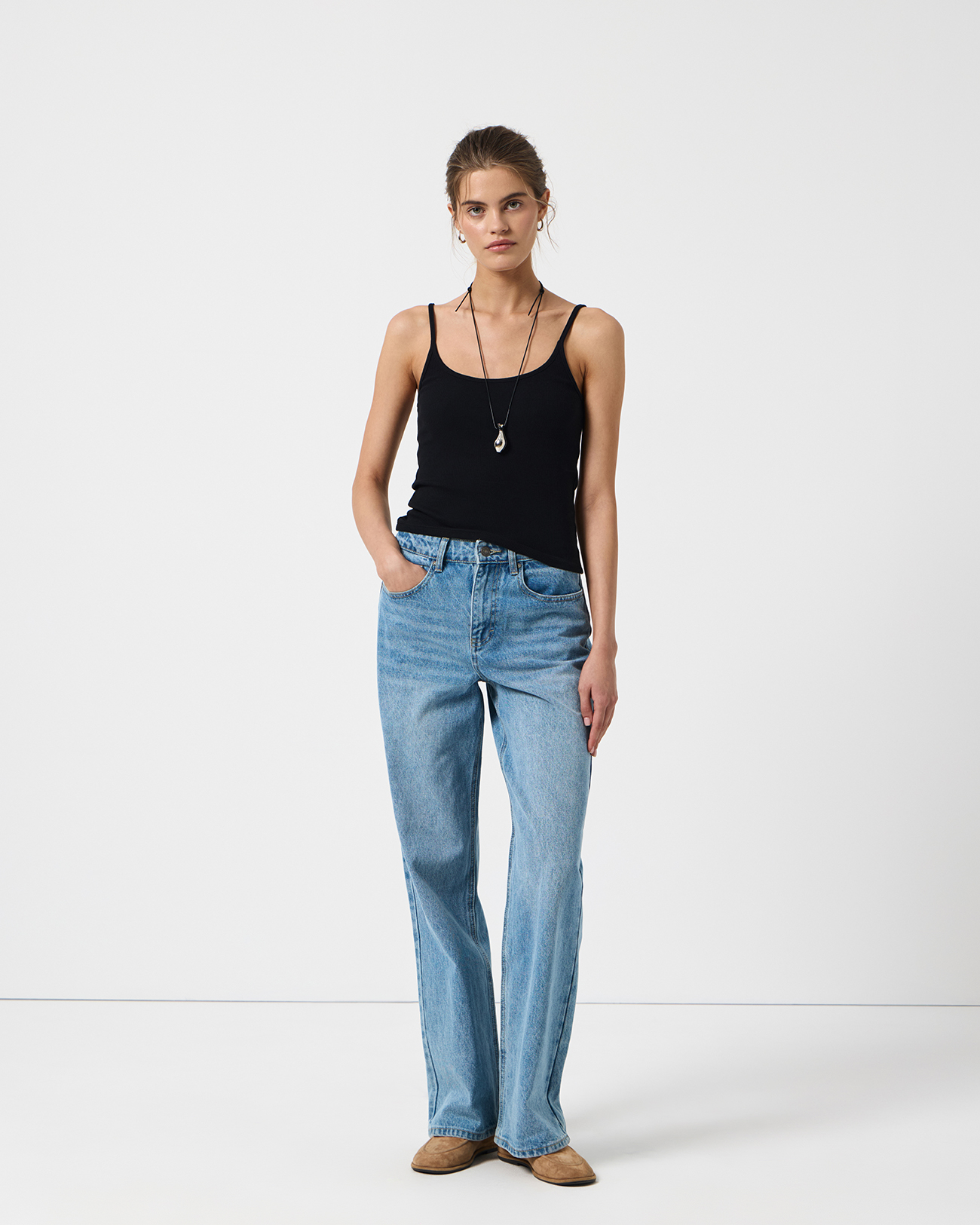 Майка на тонких бретелях черного цвета