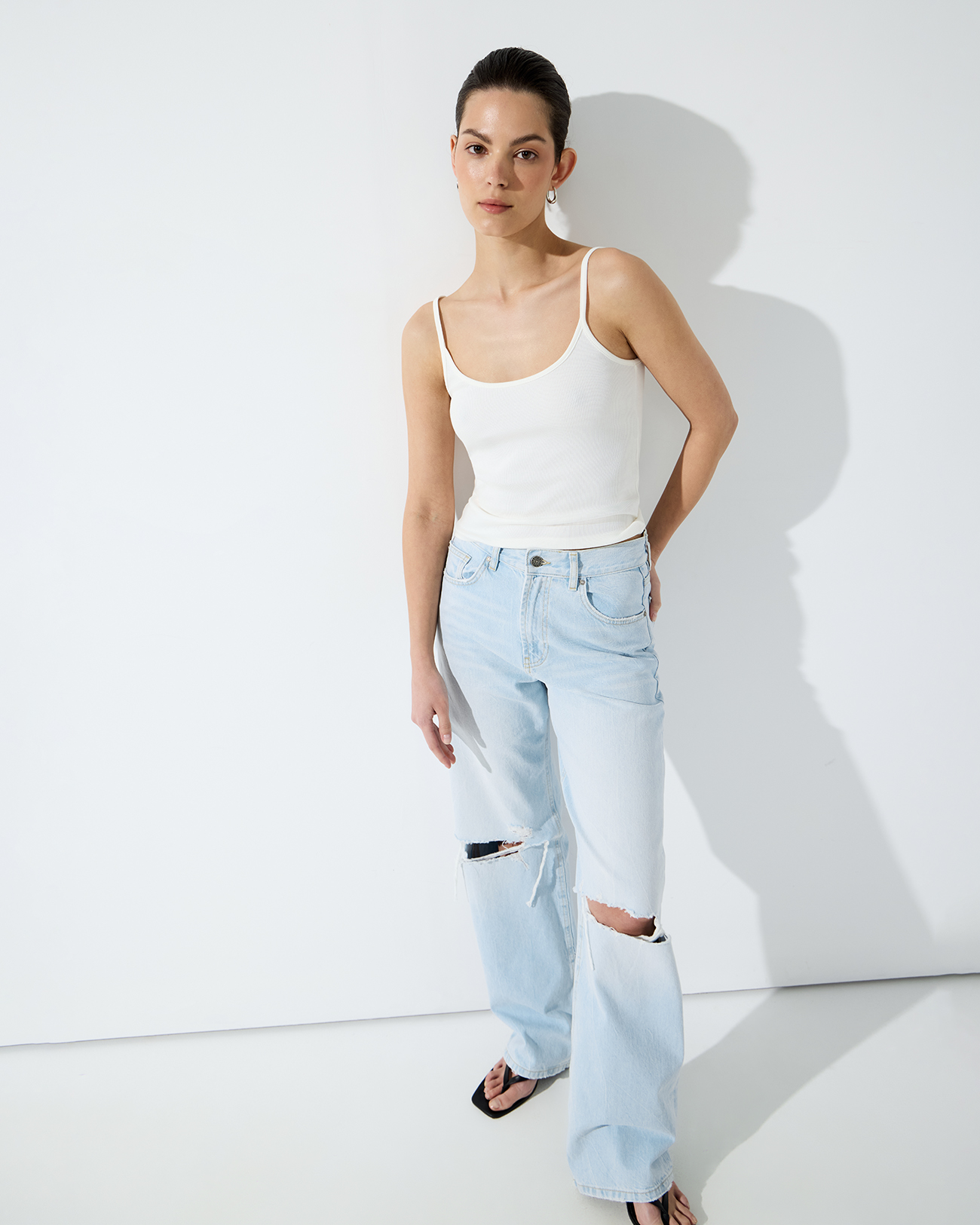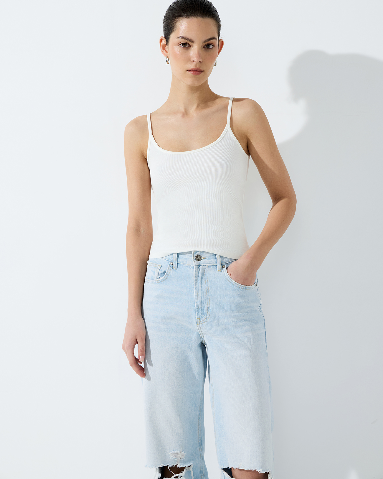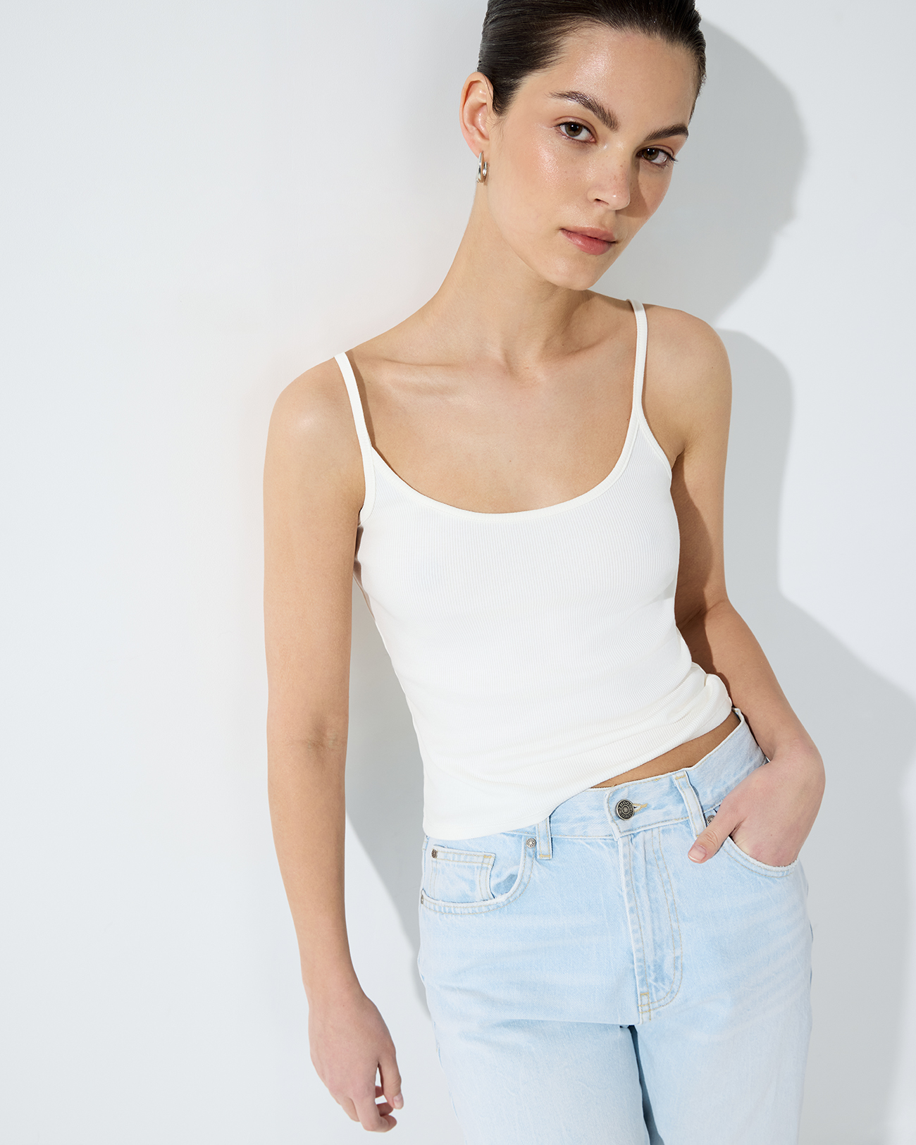 Майка на тонких бретелях молочного цвета