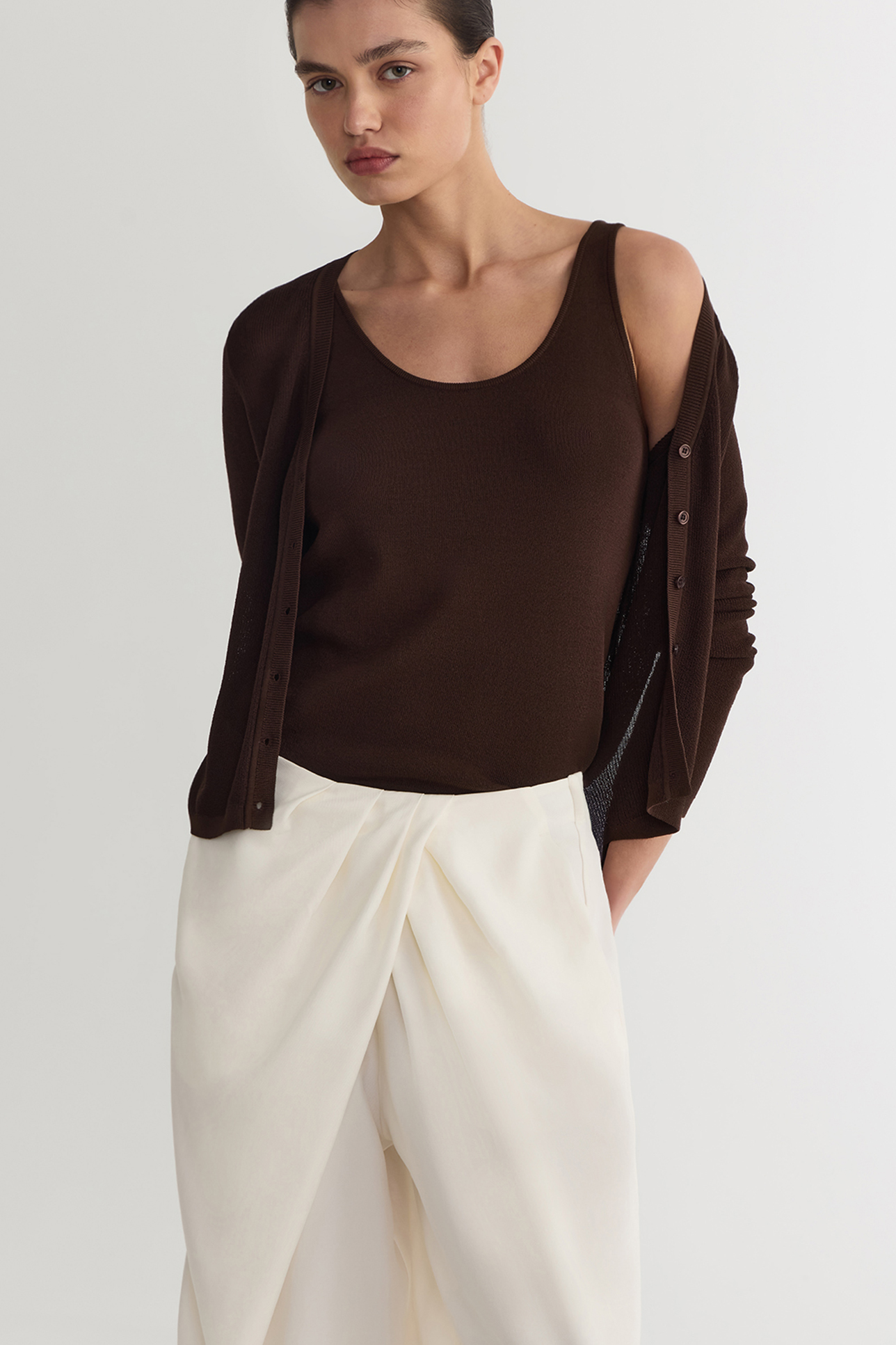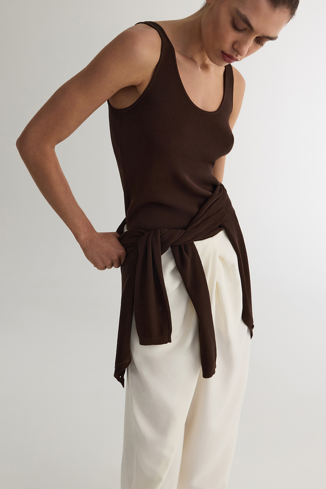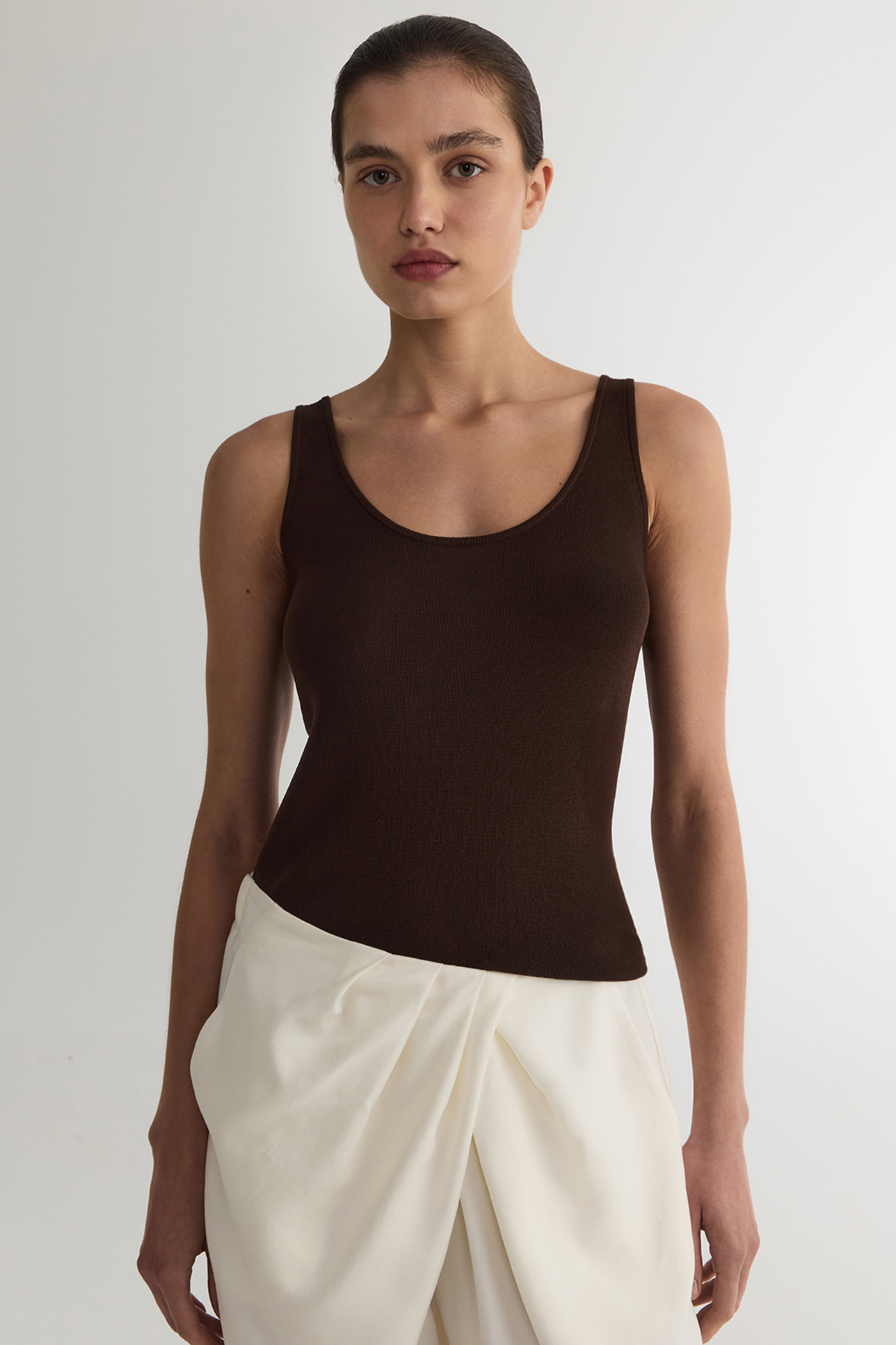 Майка тонкая из вискозы шоколадного цвета