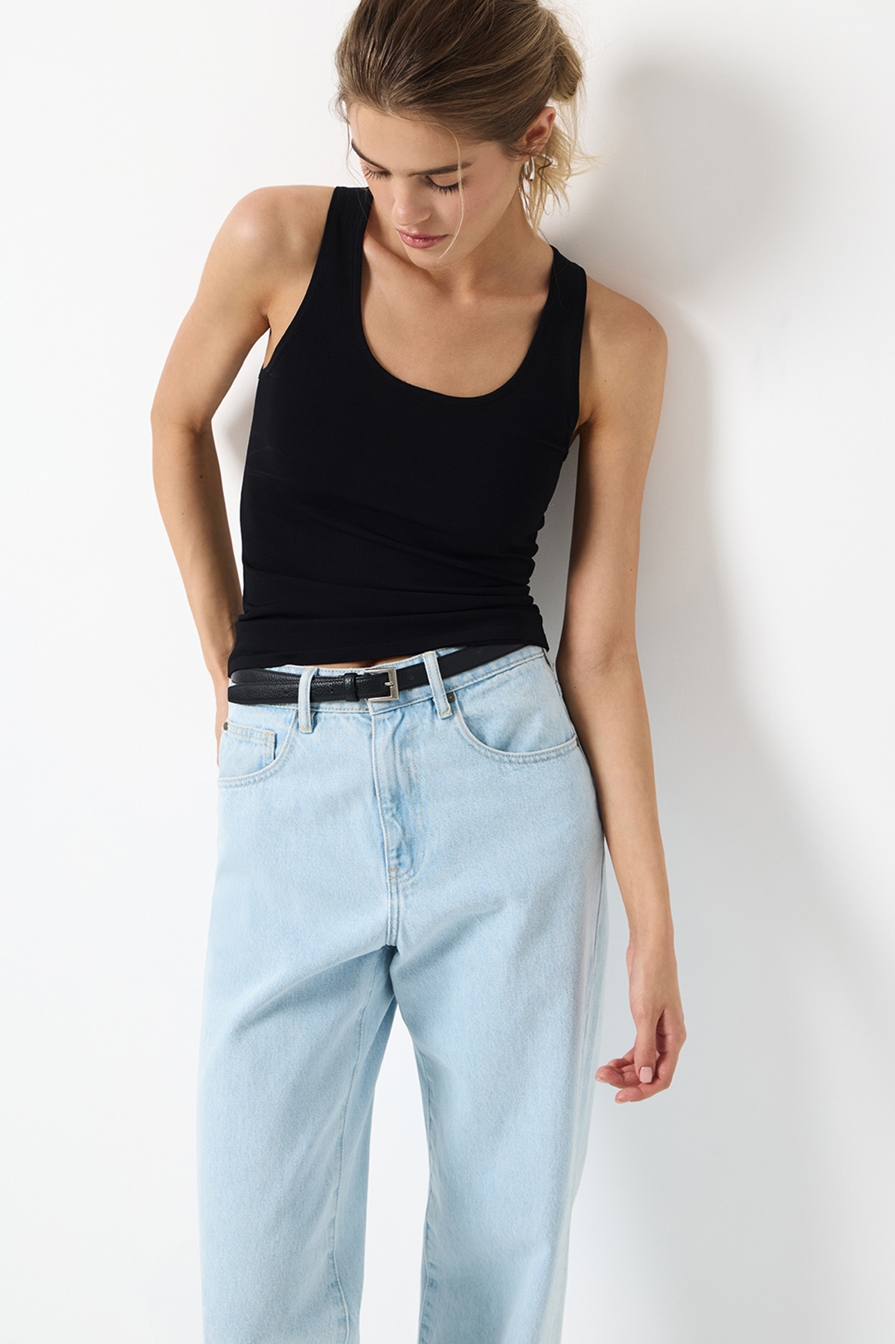 Майка вязаная базовая черного цвета