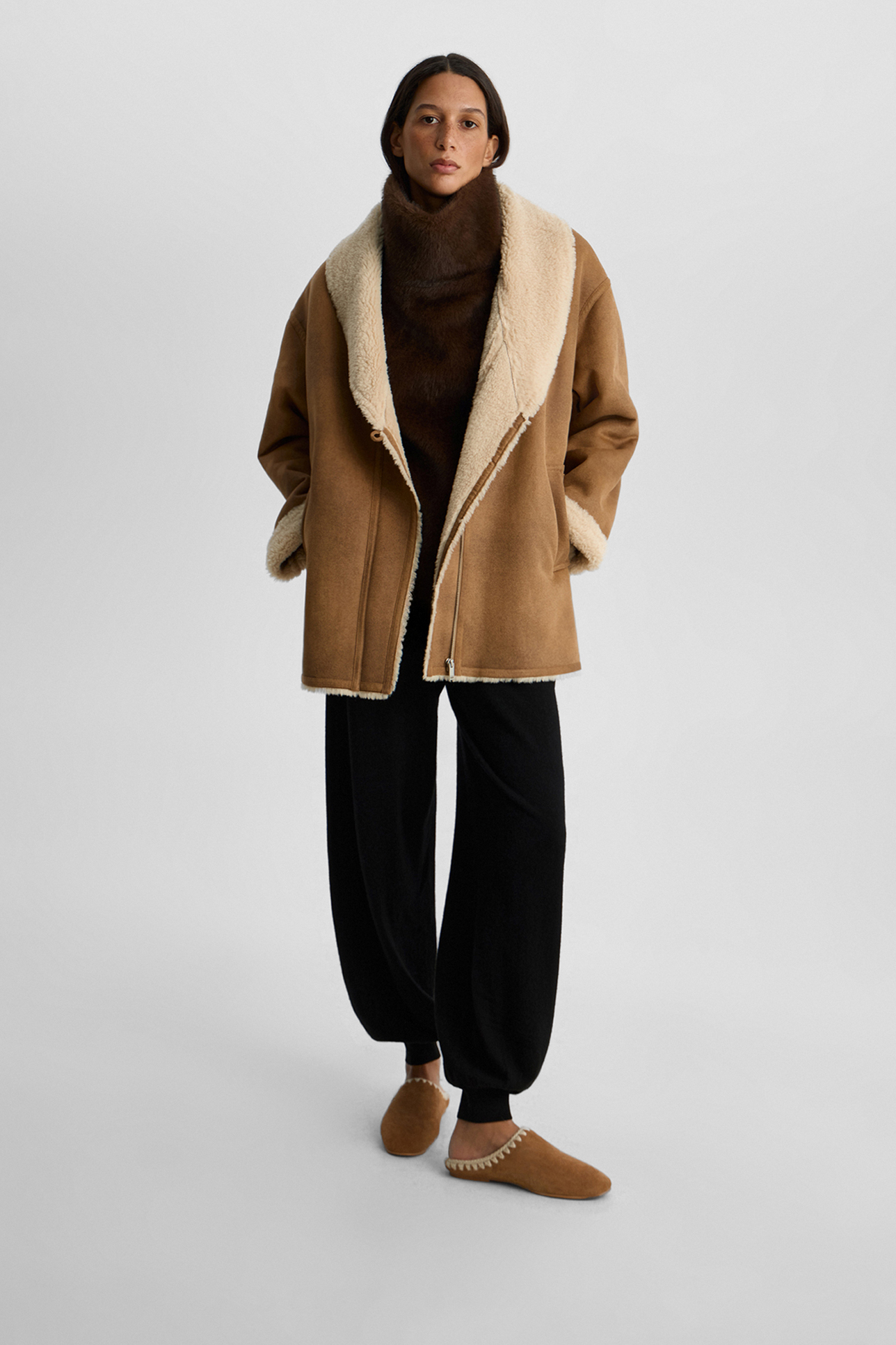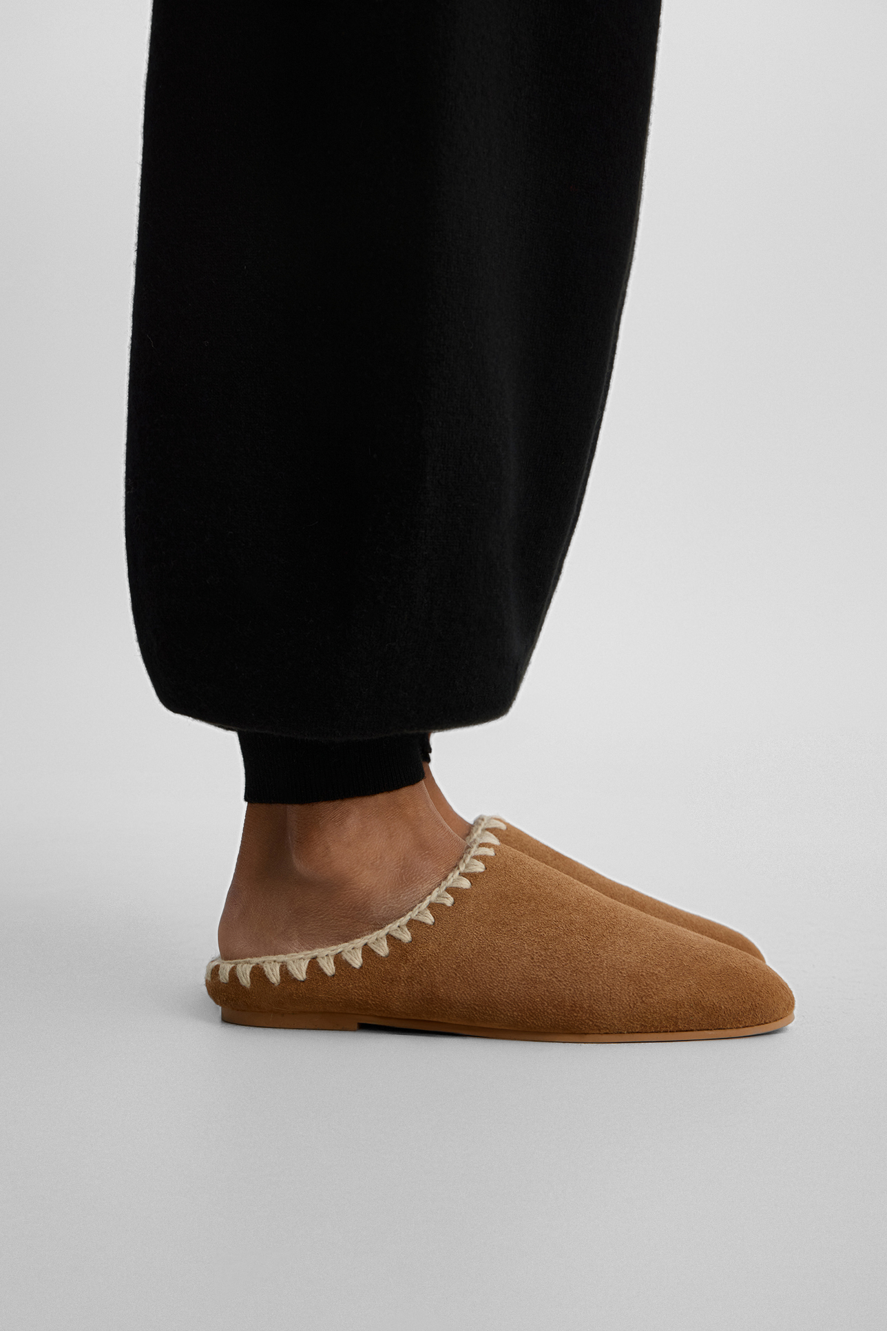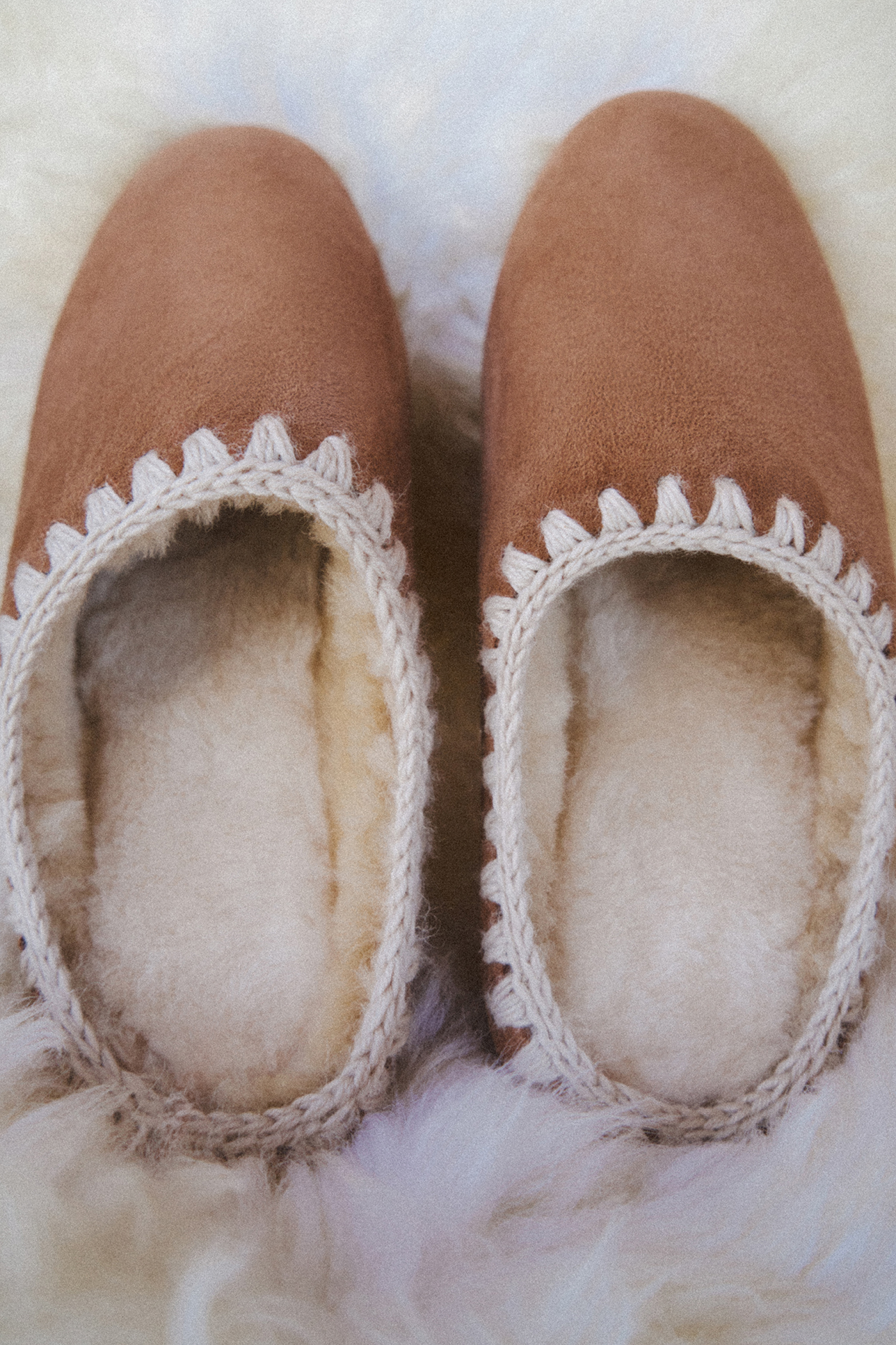 Меховые тапочки бежевого цвета