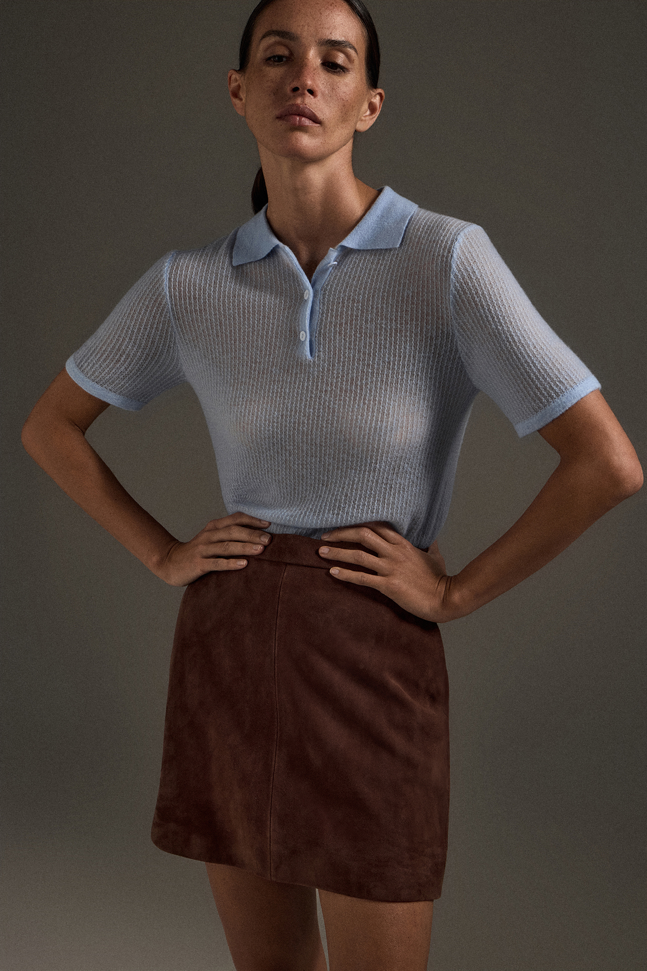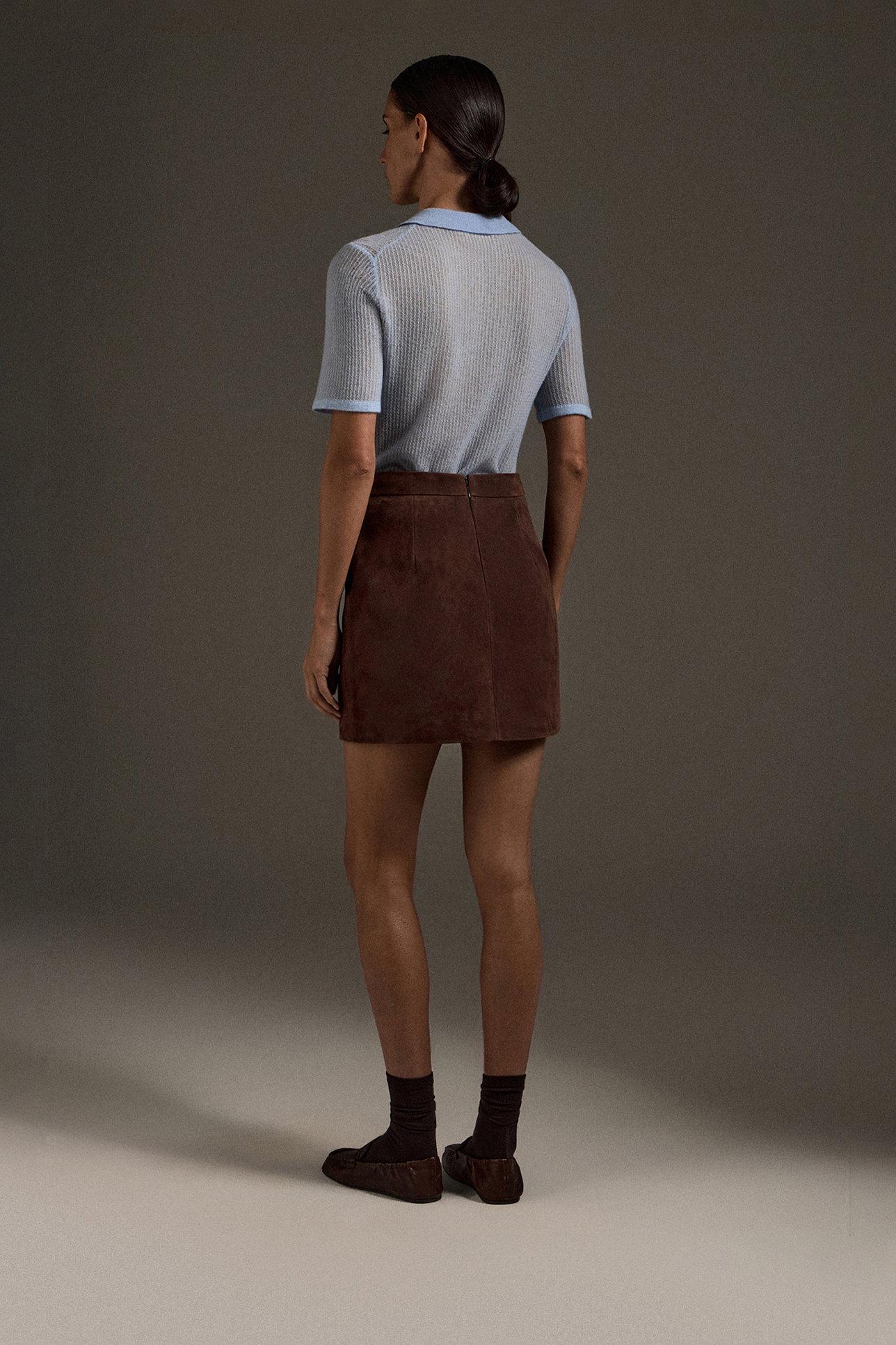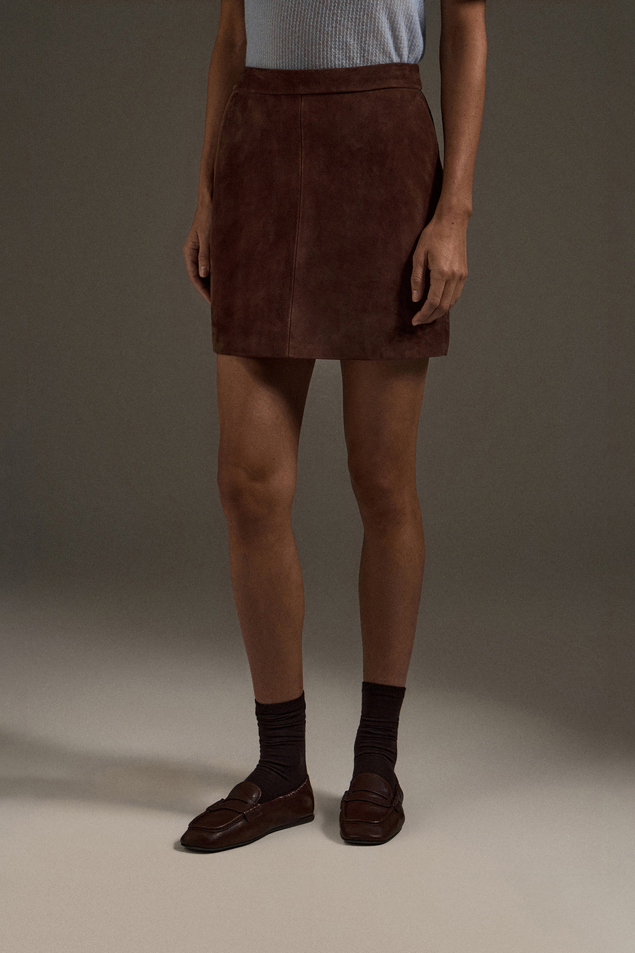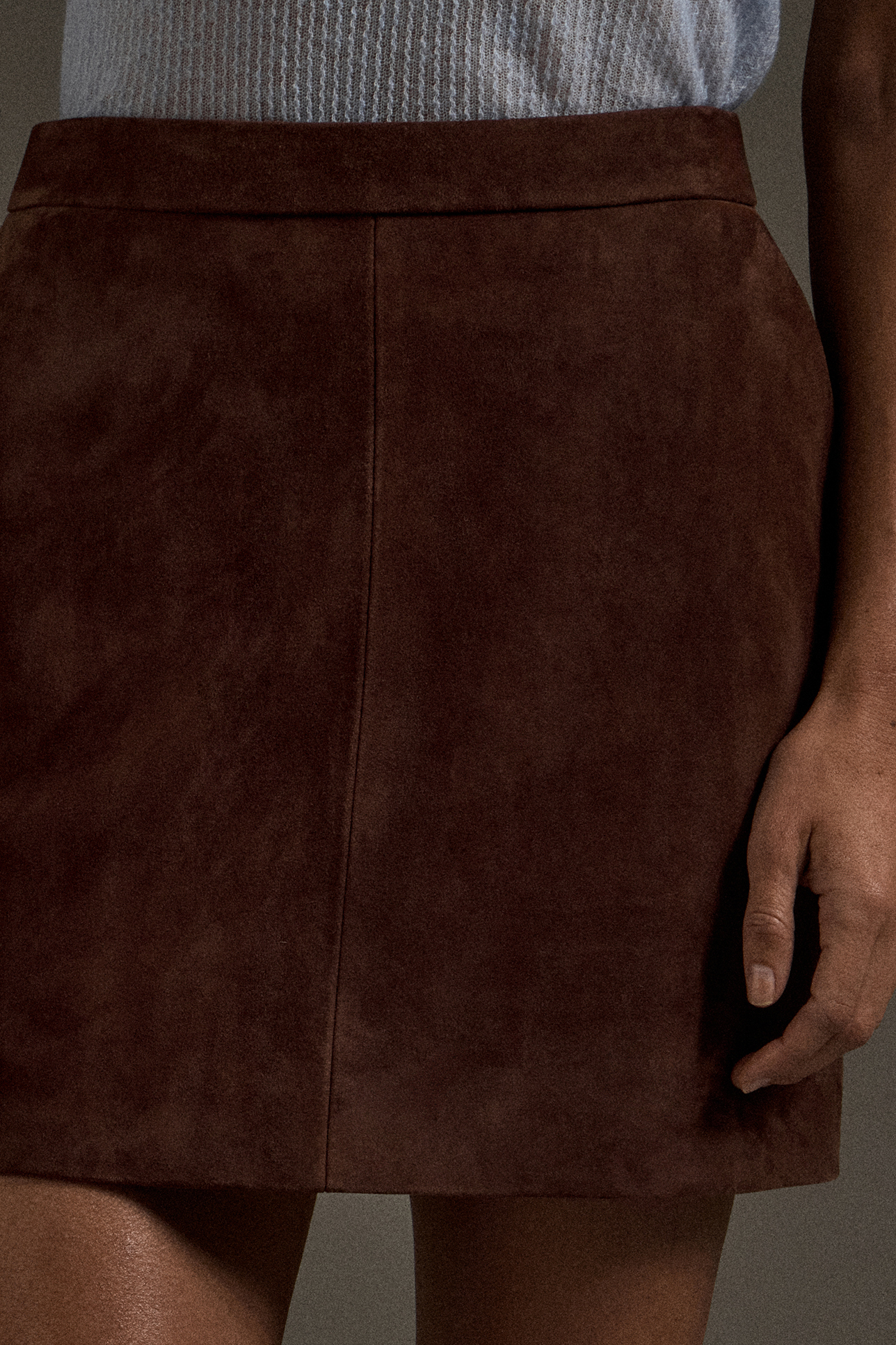 Юбка мини из натуральной замши шоколадного цвета
