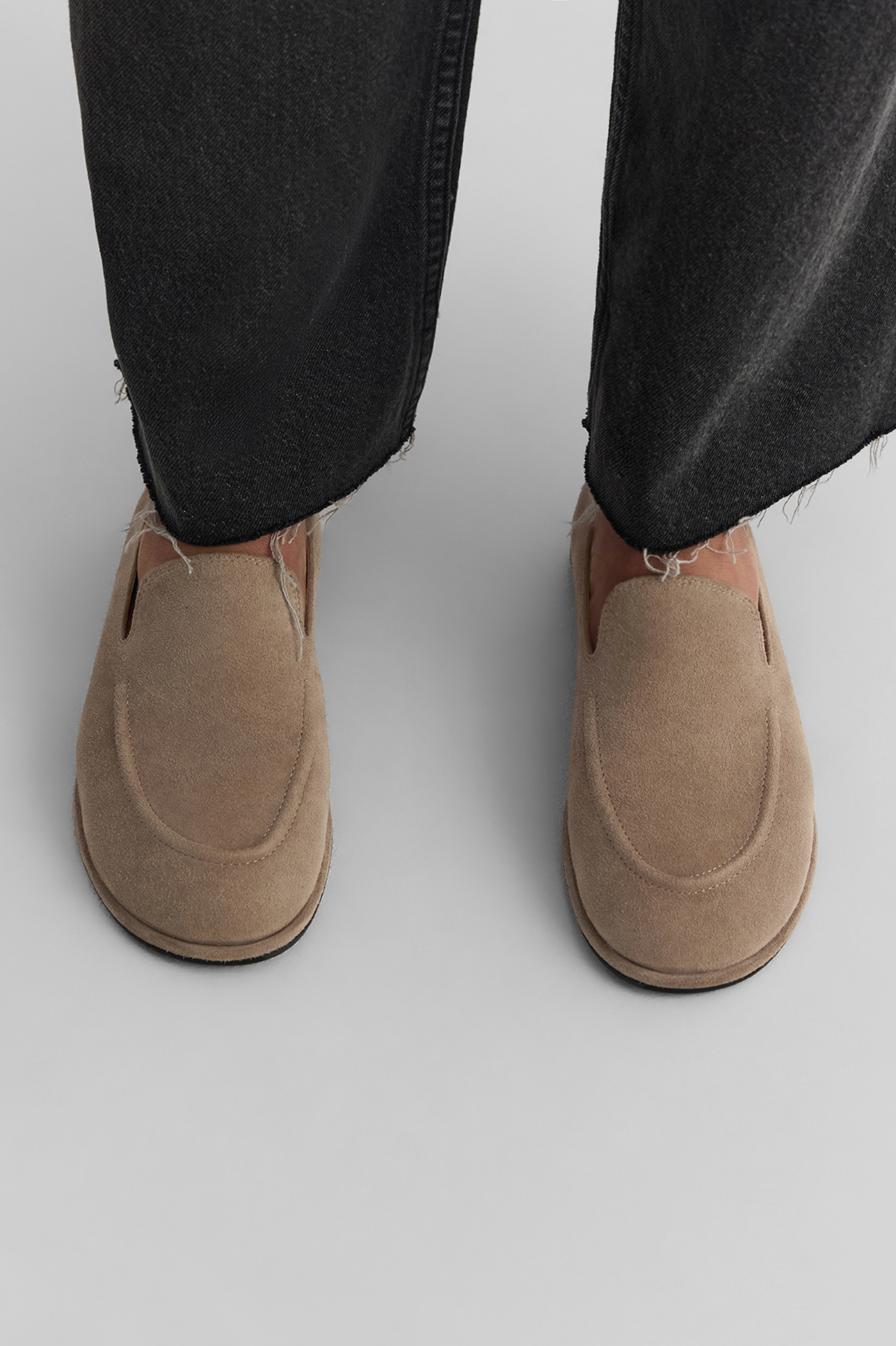 Мягкие лоферы серо-бежевого цвета