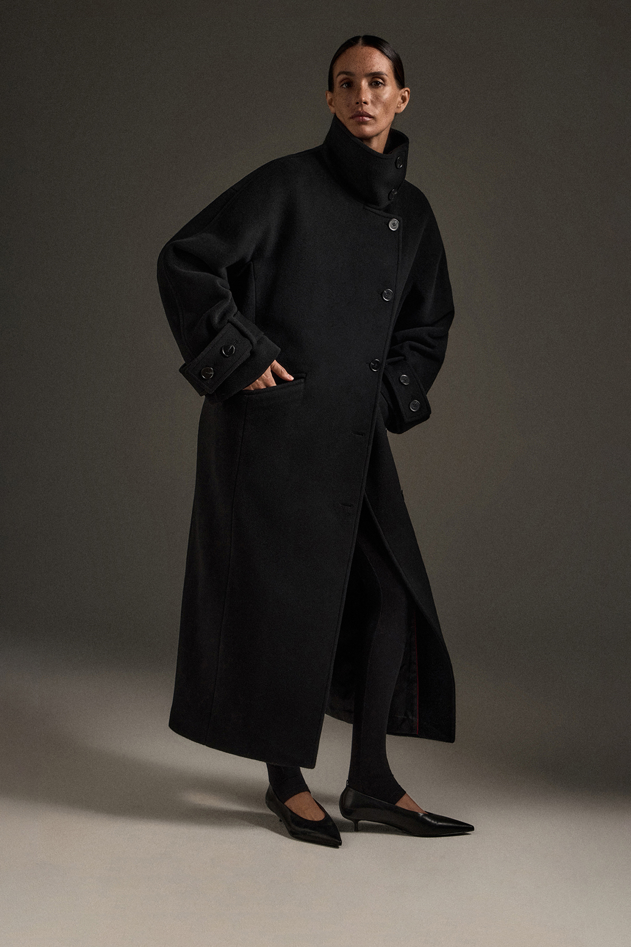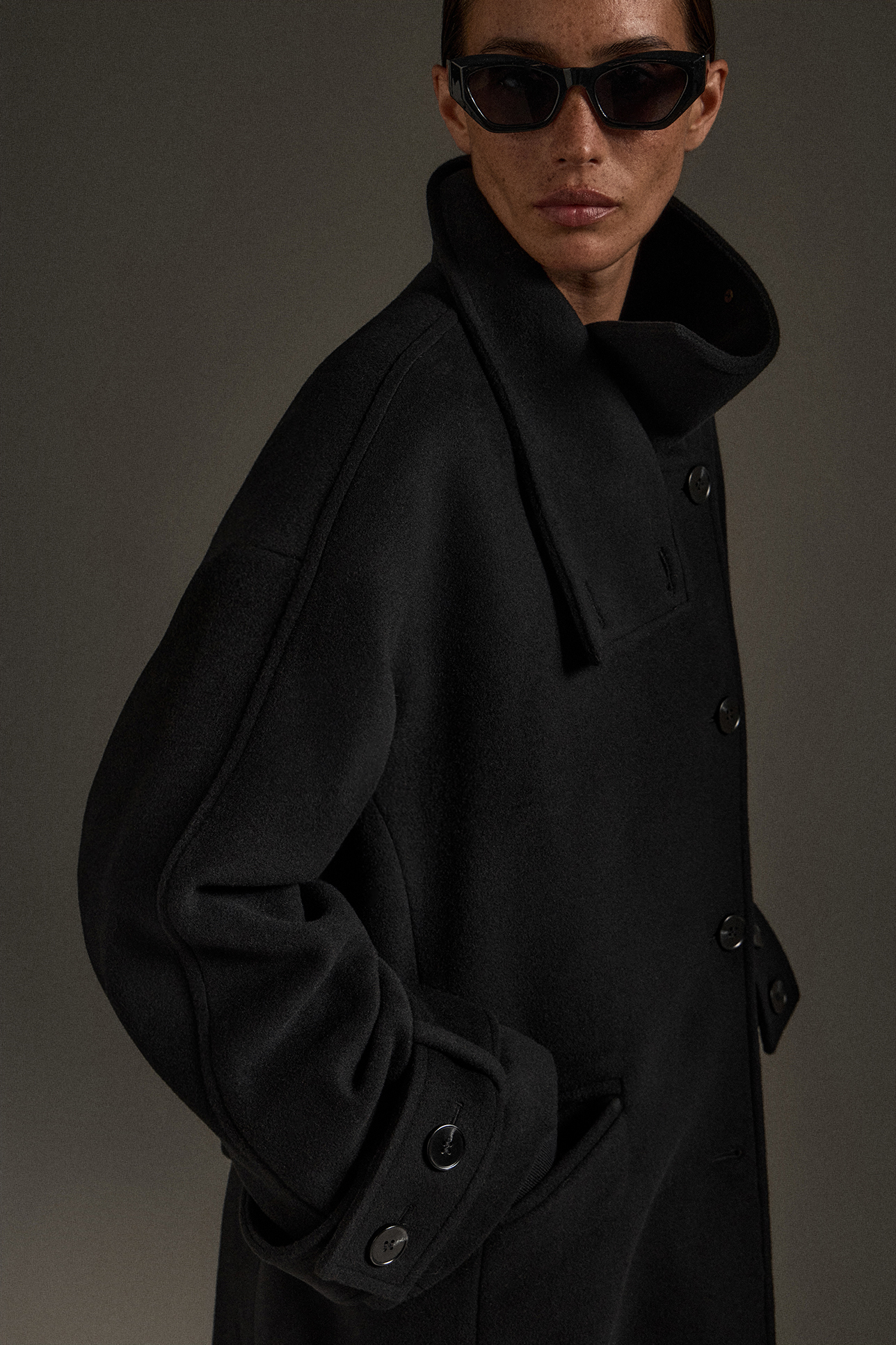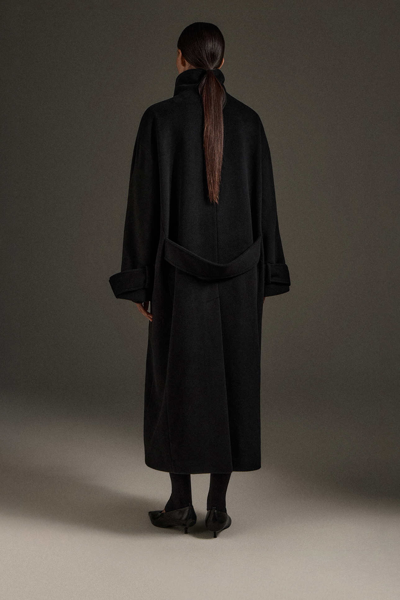 Пальто-кокон из шерсти с добавлением кашемира черного цвета