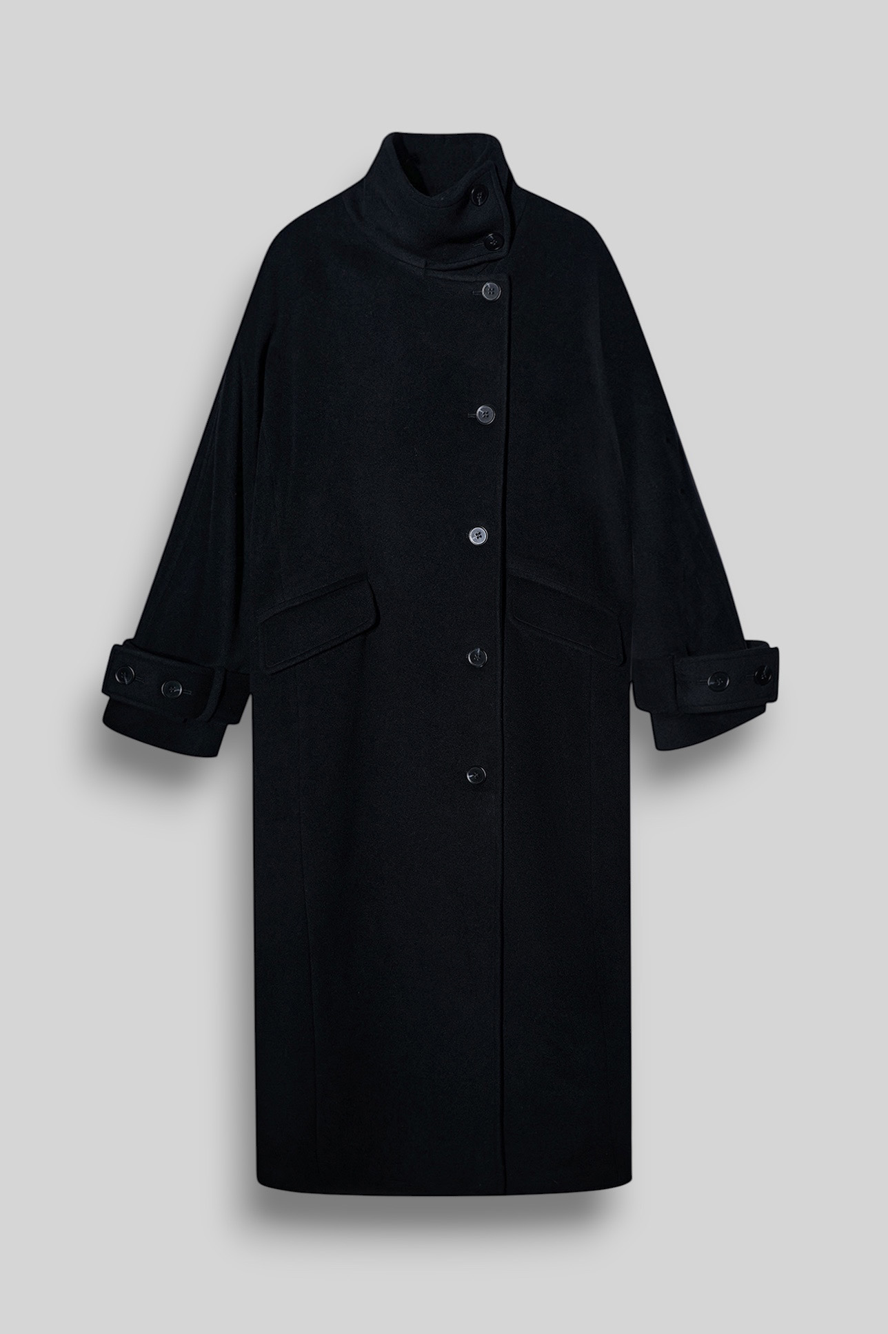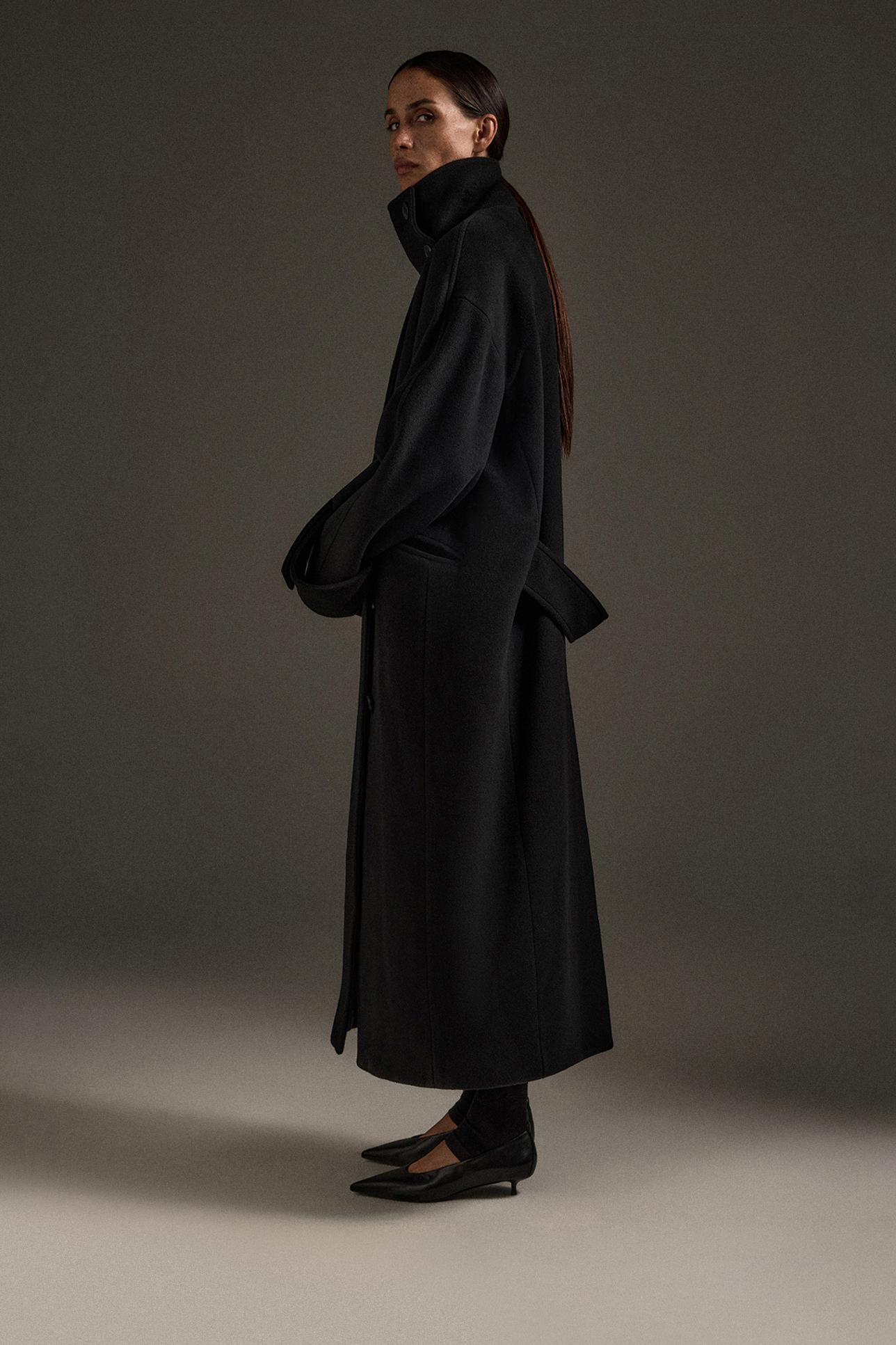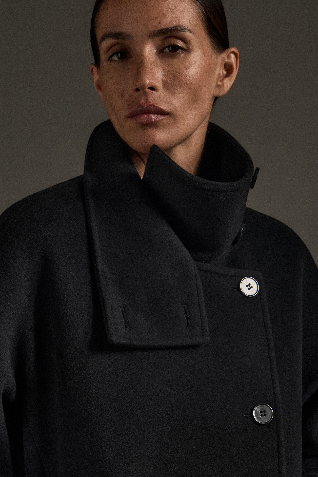 Пальто-кокон из шерсти с добавлением кашемира черного цвета