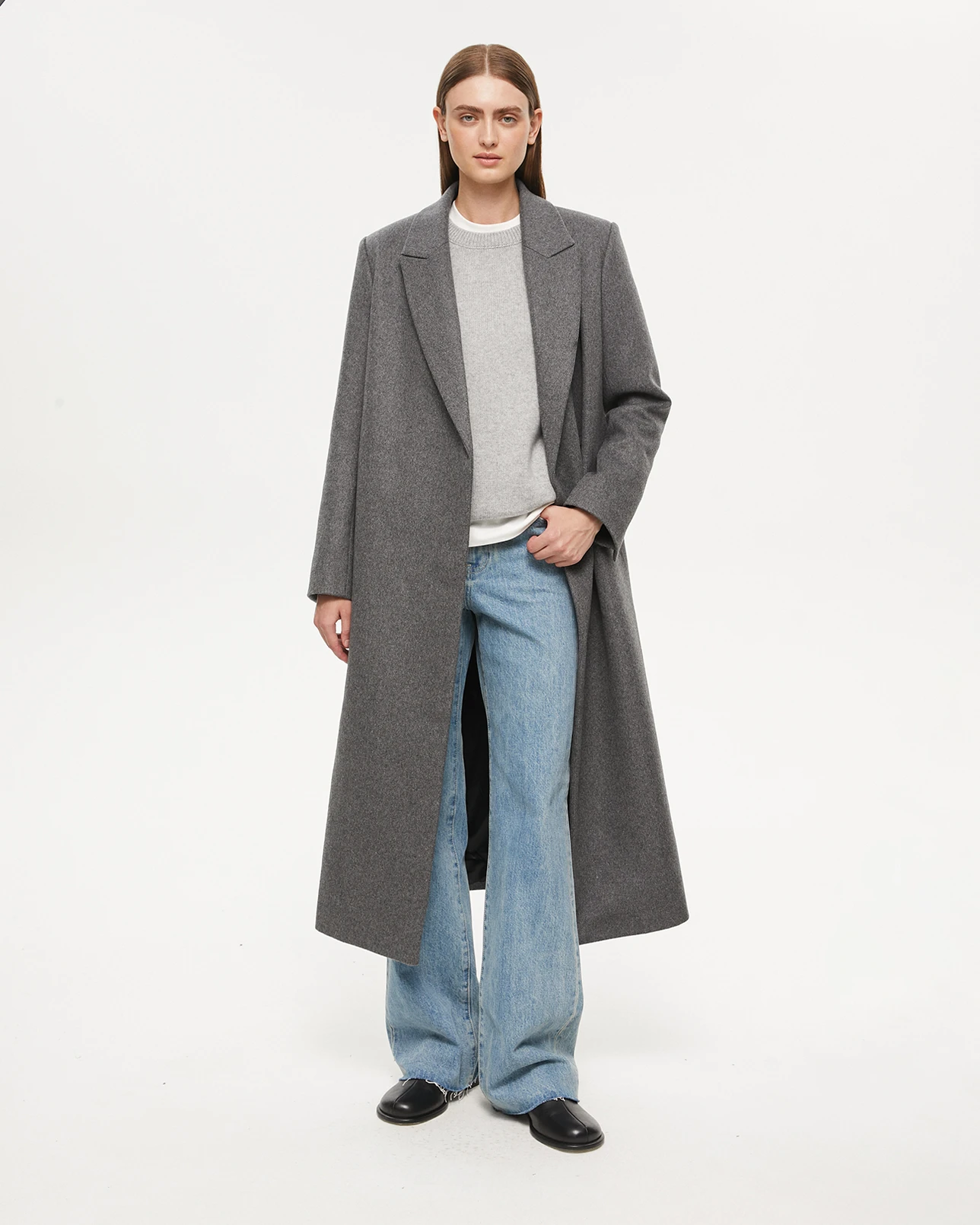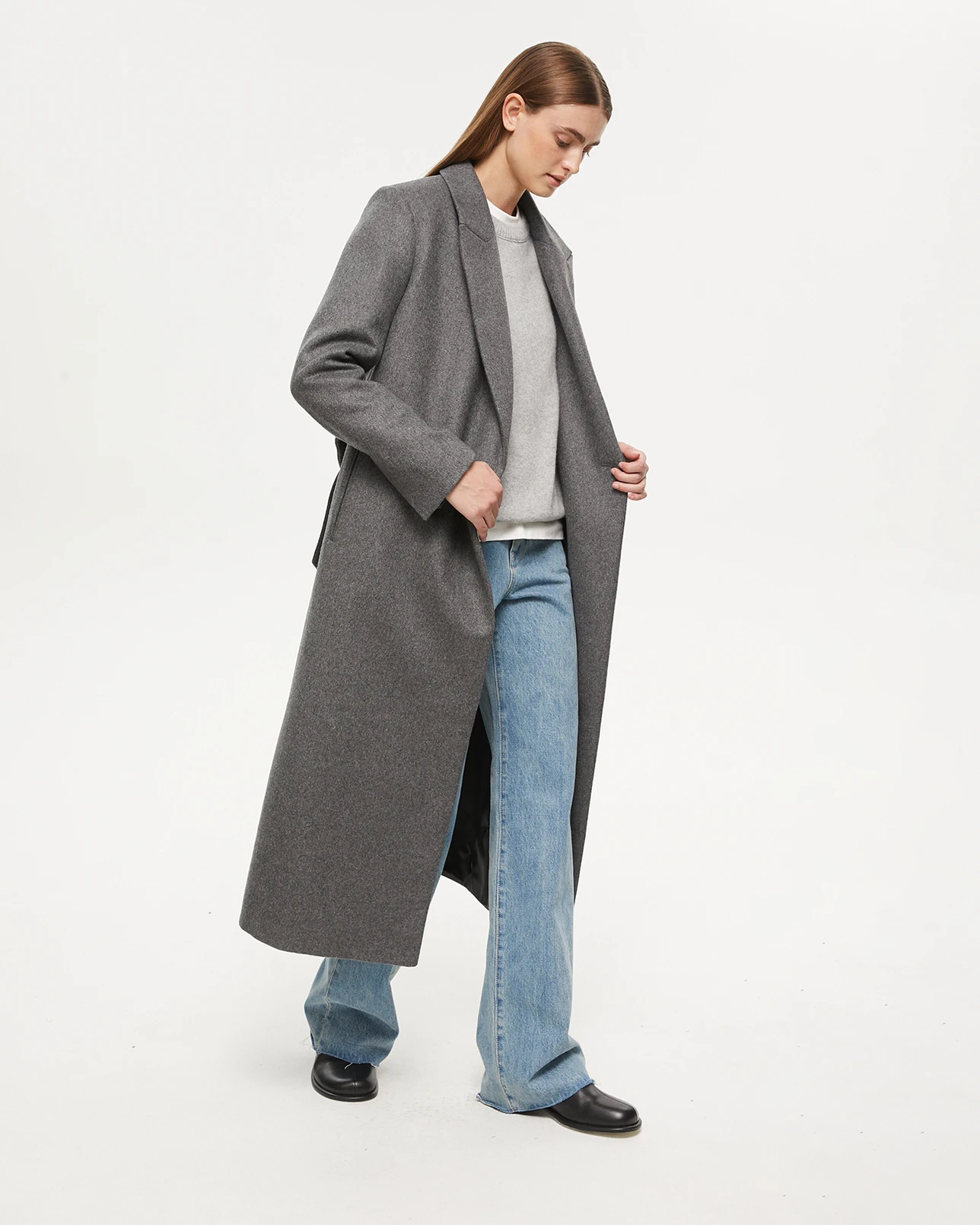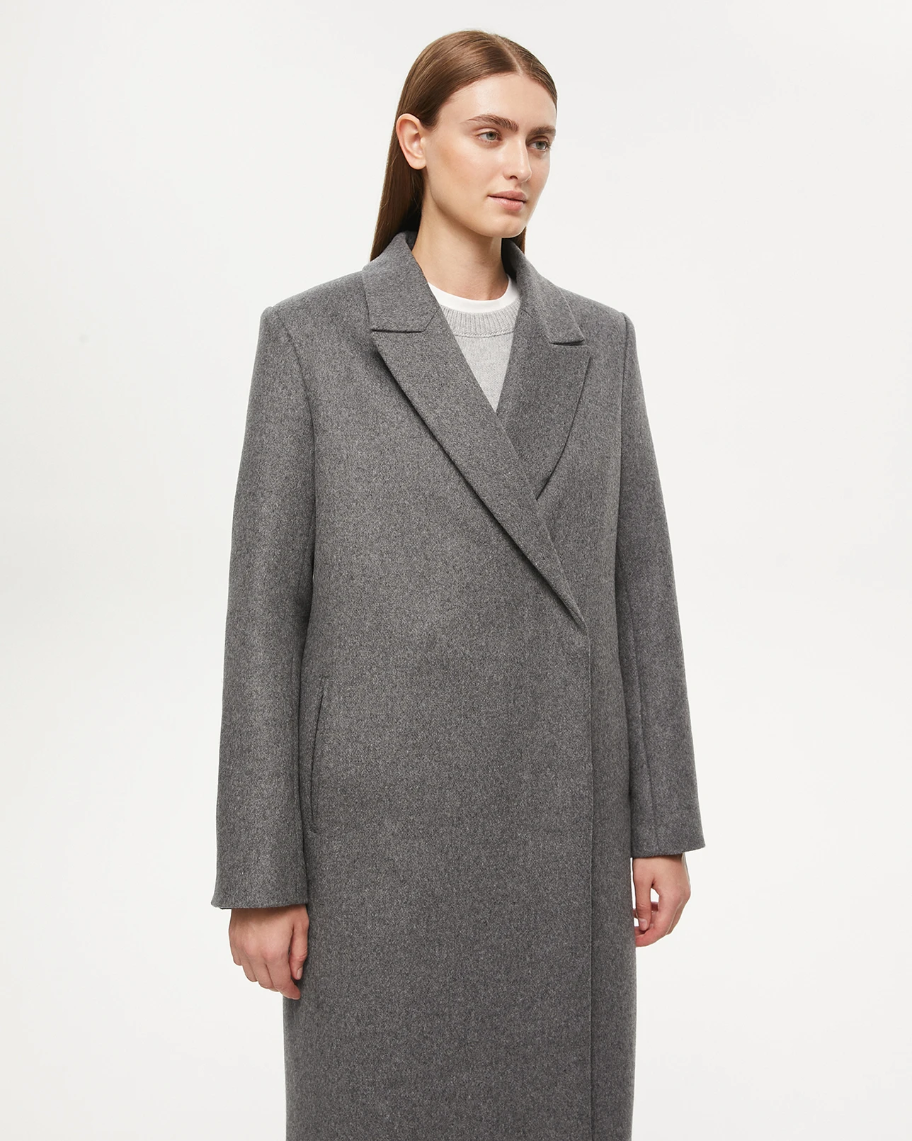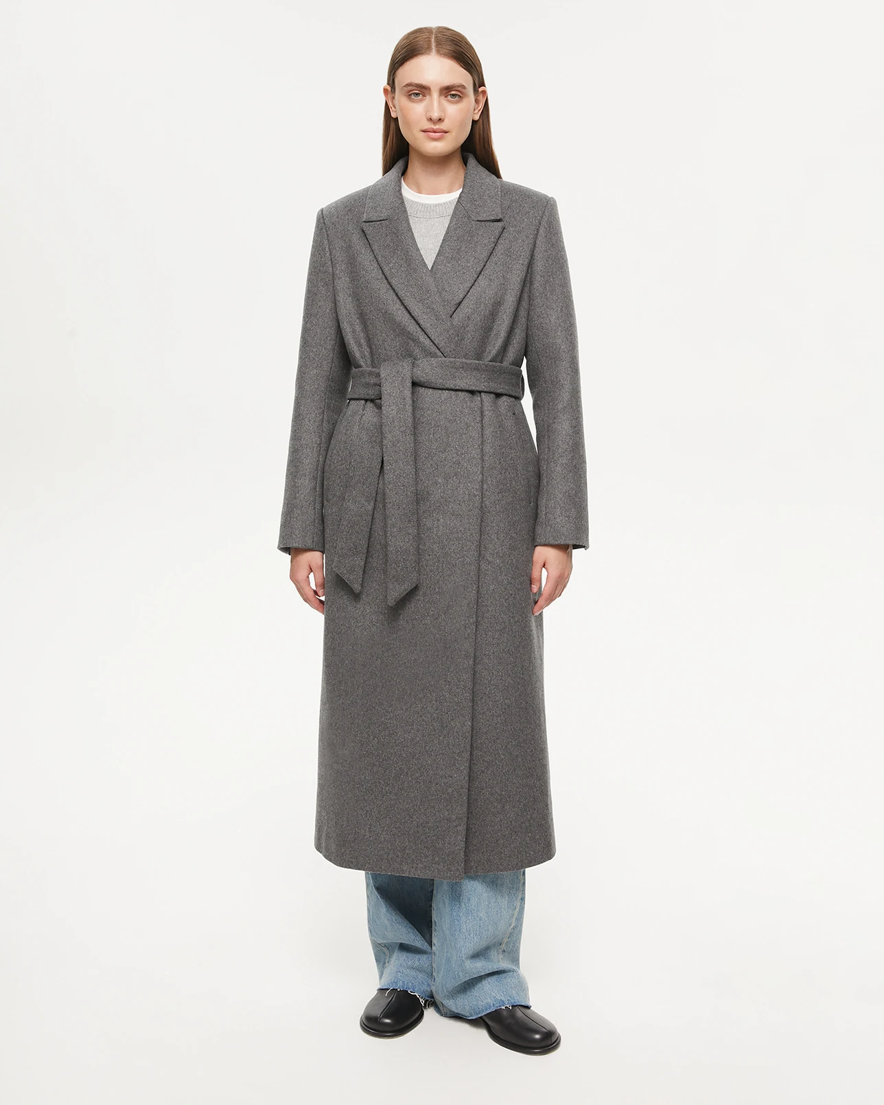 Пальто на запах серого цвета