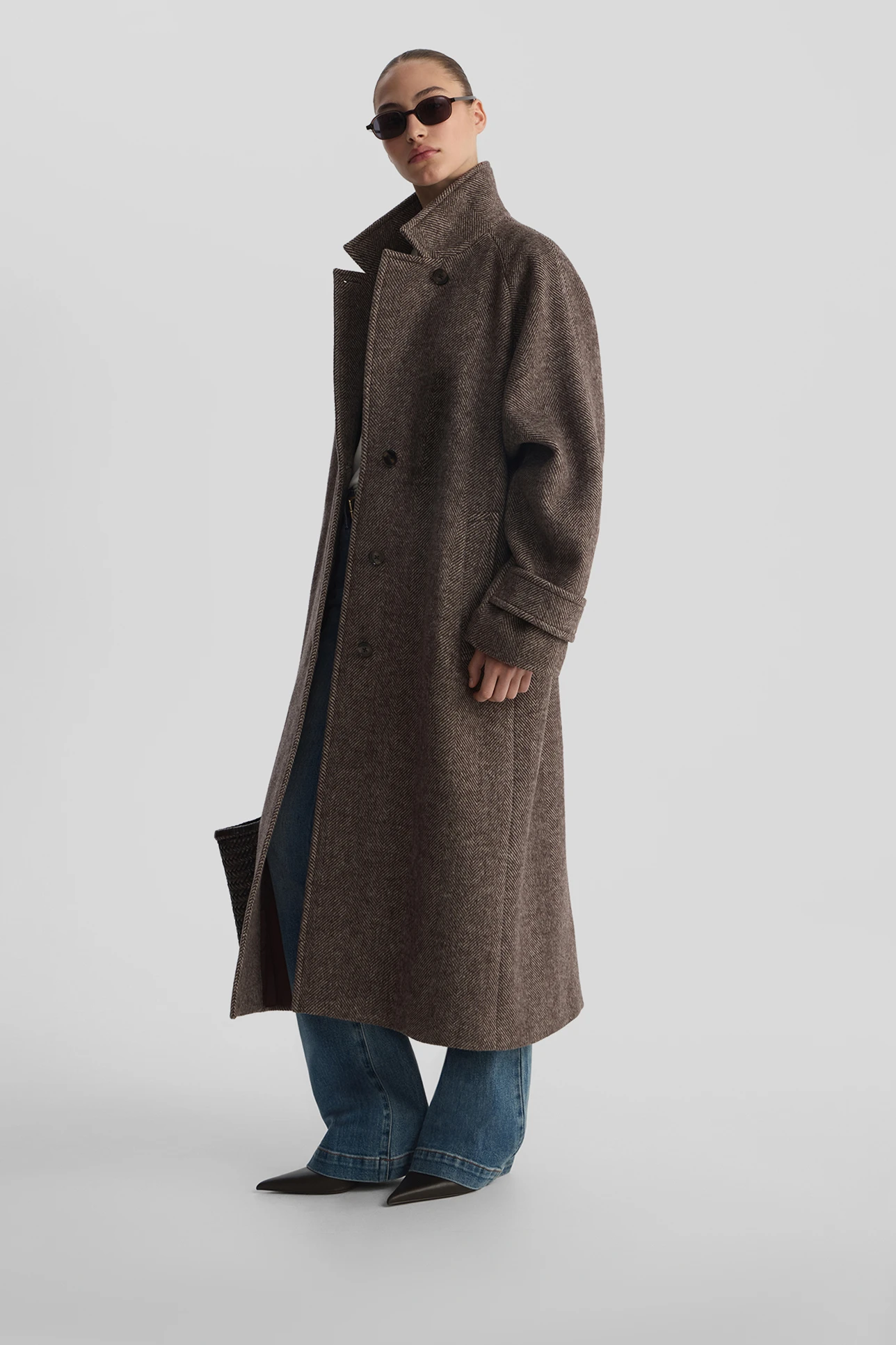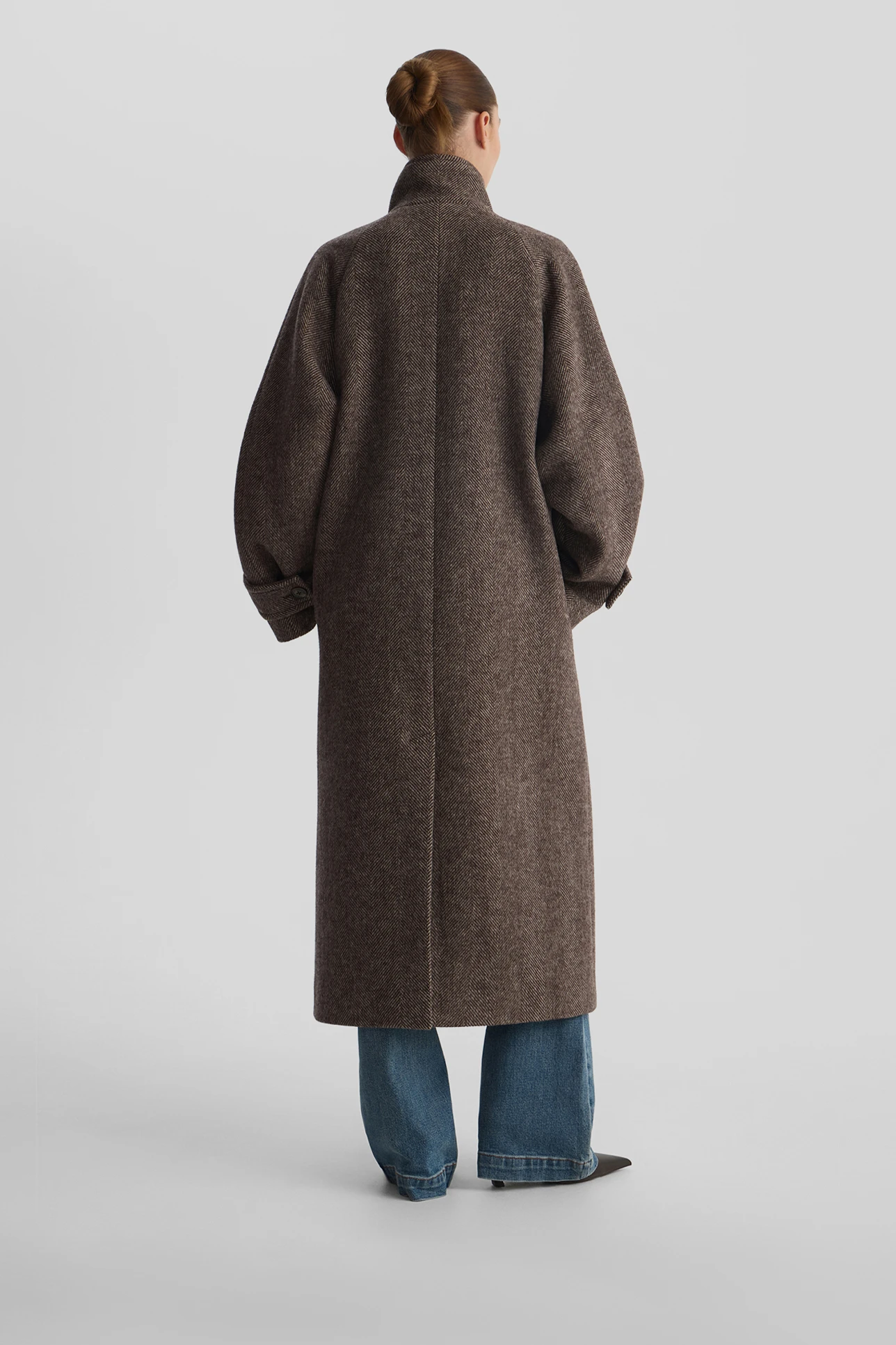 Пальто oversize в елочку шоколадного цвета