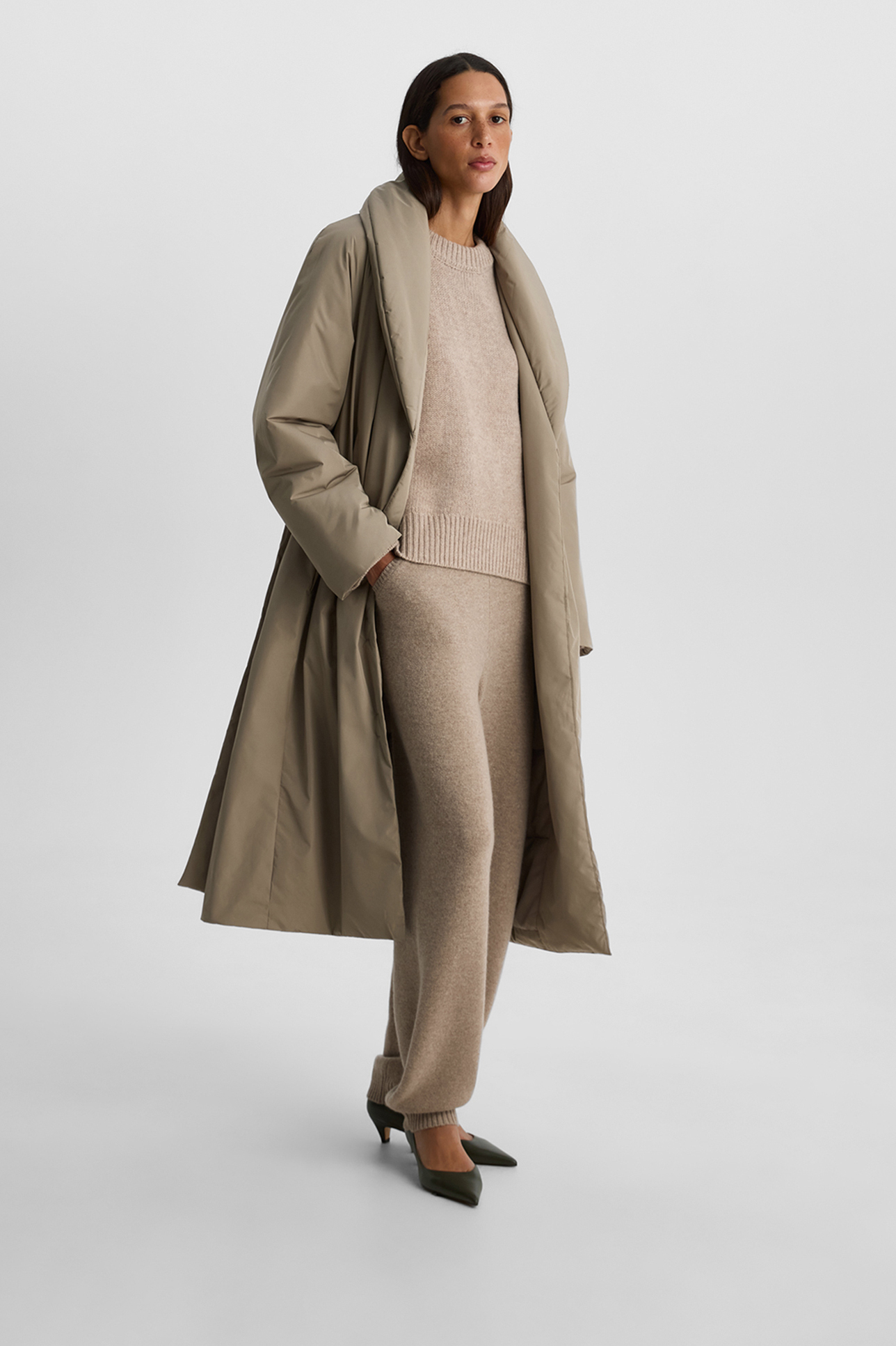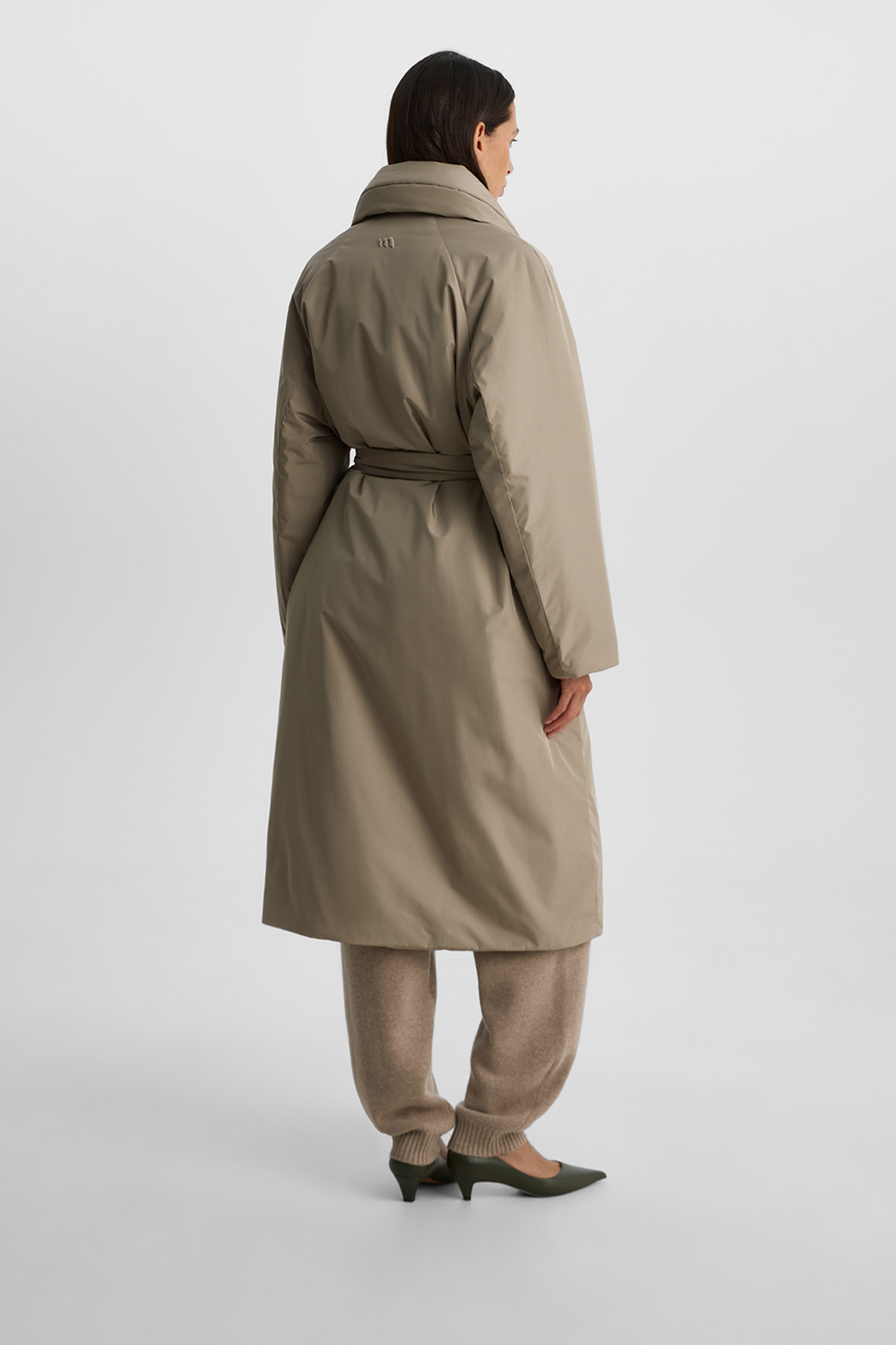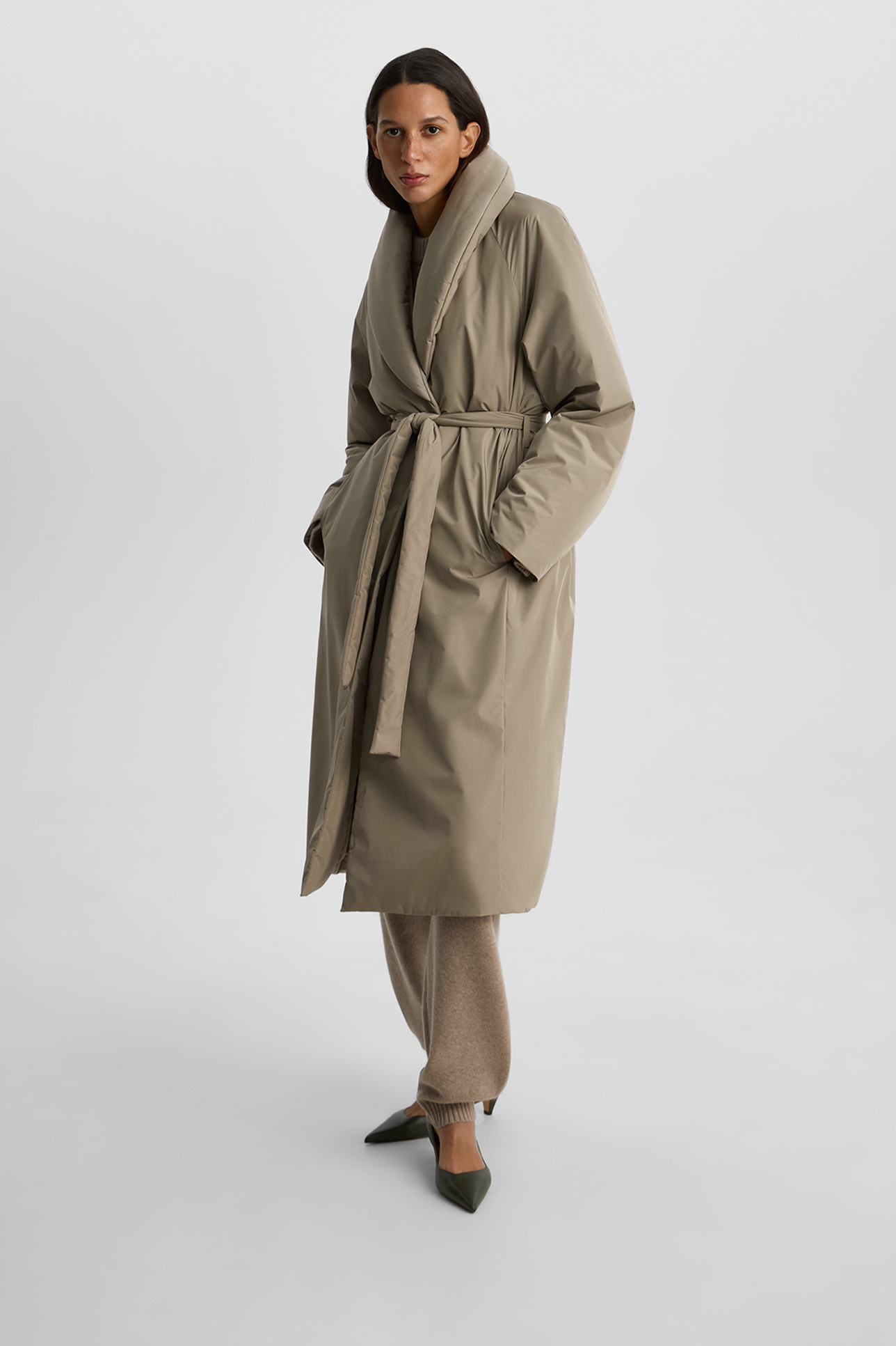 Пальто утепленное серо-бежевого цвета
