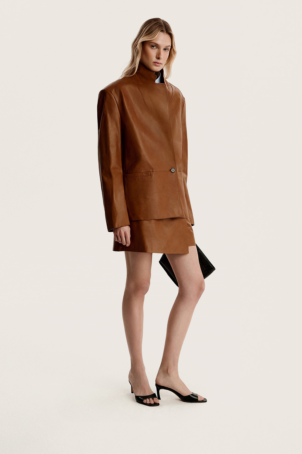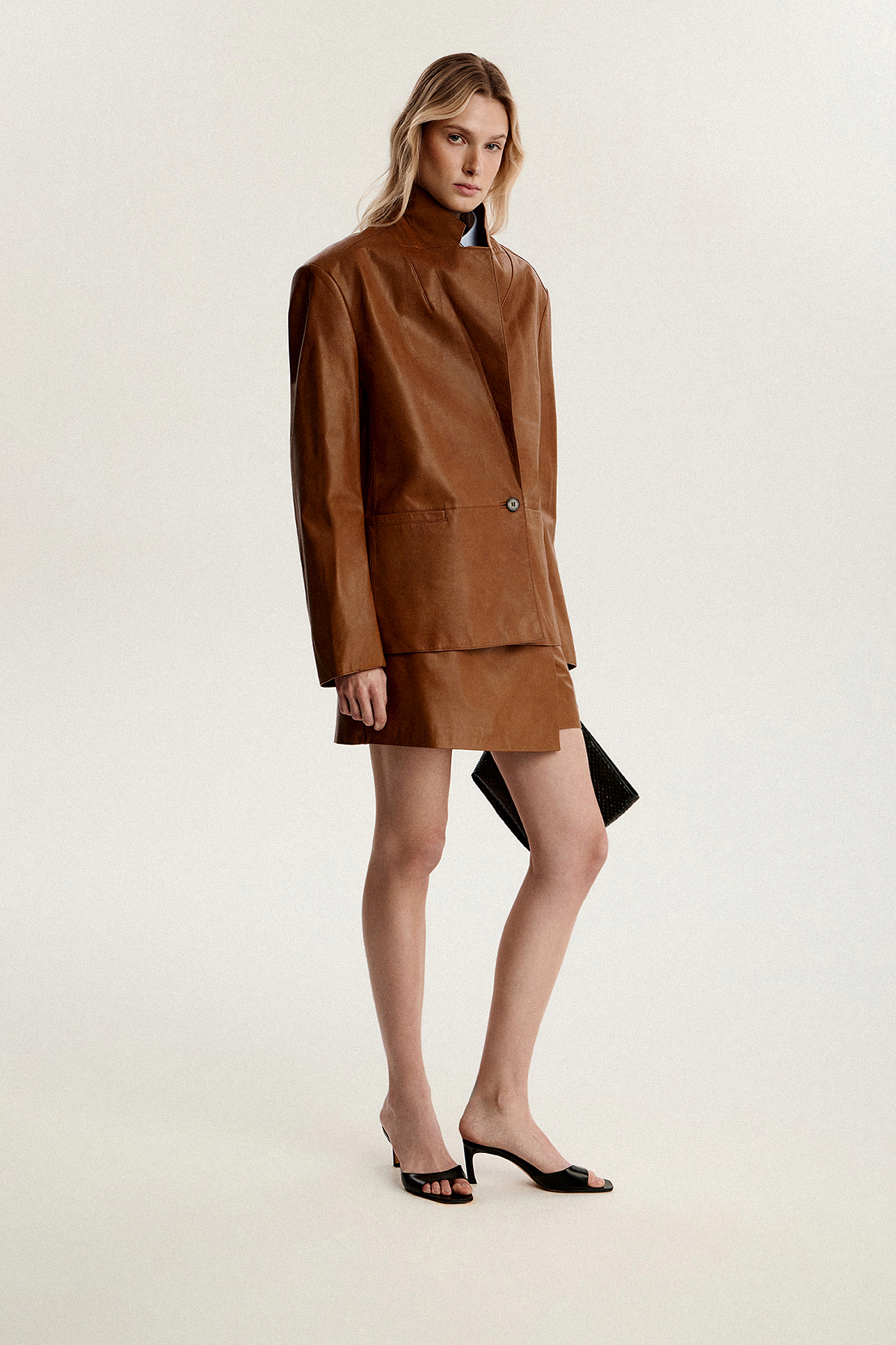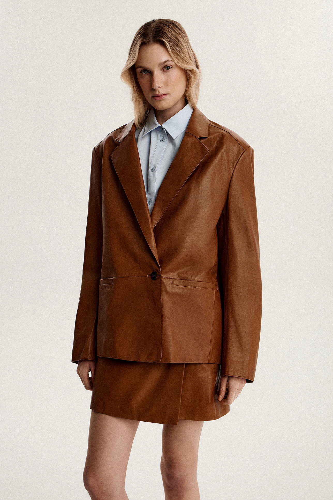 Пиджак прямого кроя из кожи