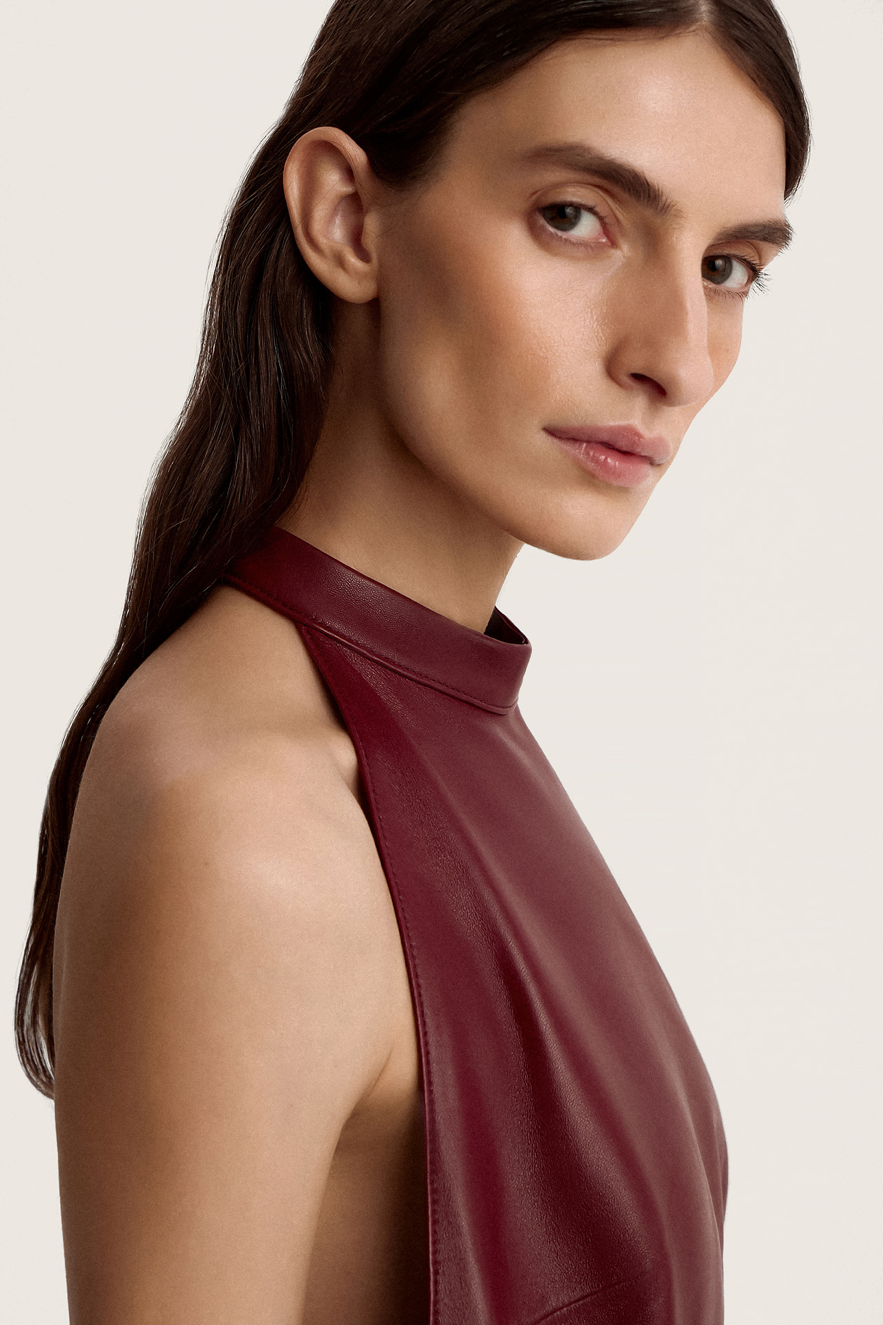 Платье с открытой спиной из кожи