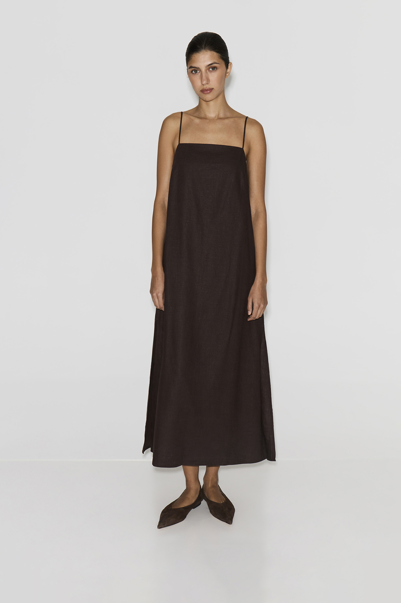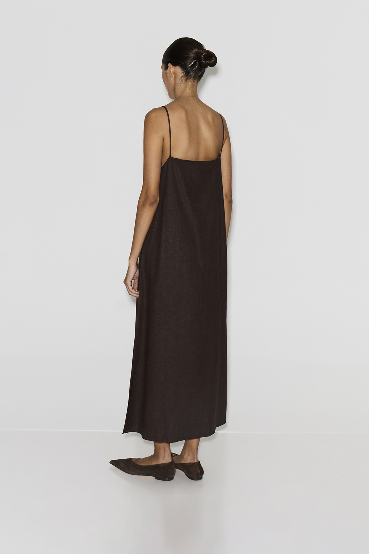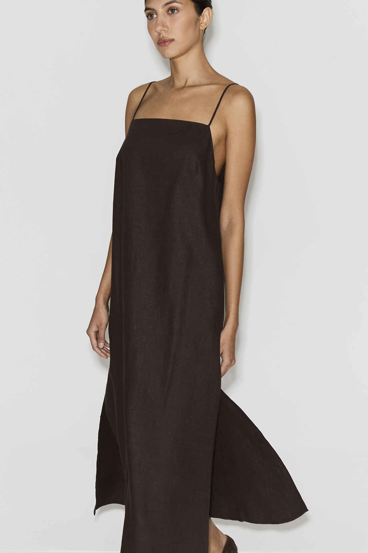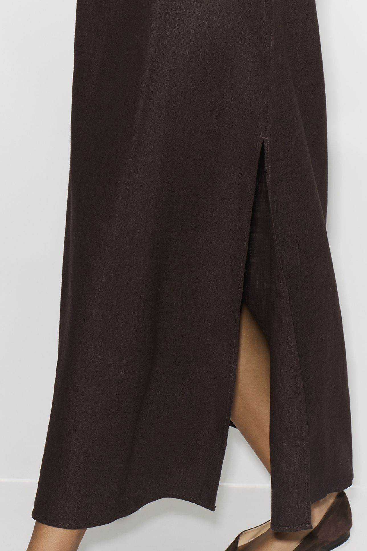 Платье-комбинация макси изо льна шоколадного цвета