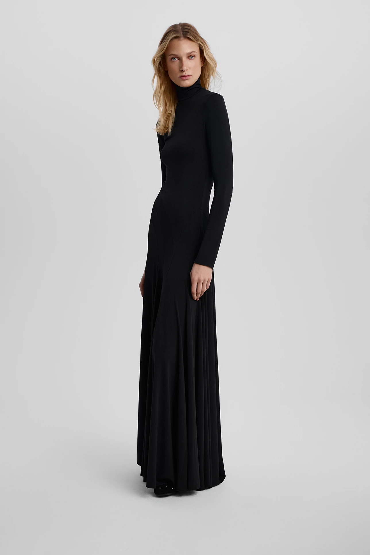 Платье макси с фигурными линиями на юбке черного цвета
