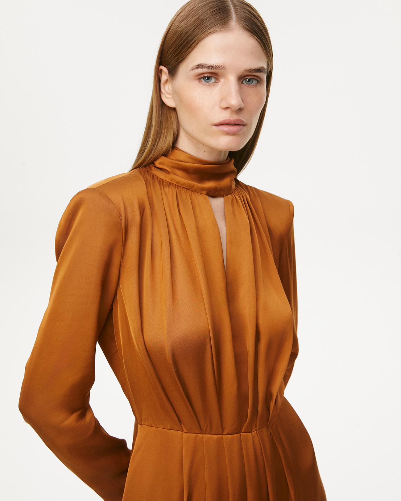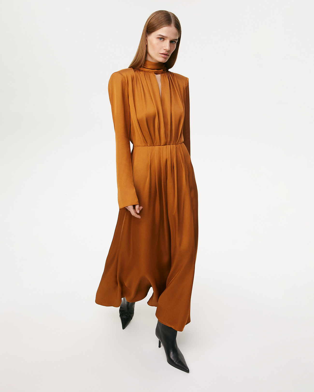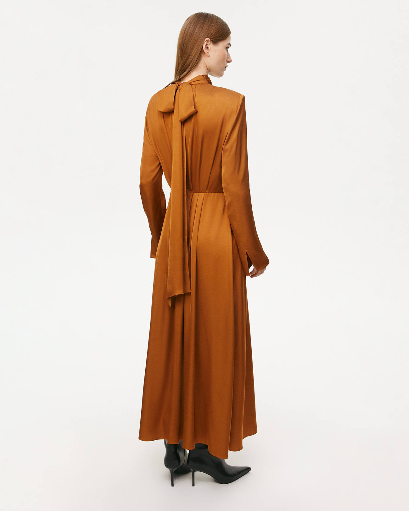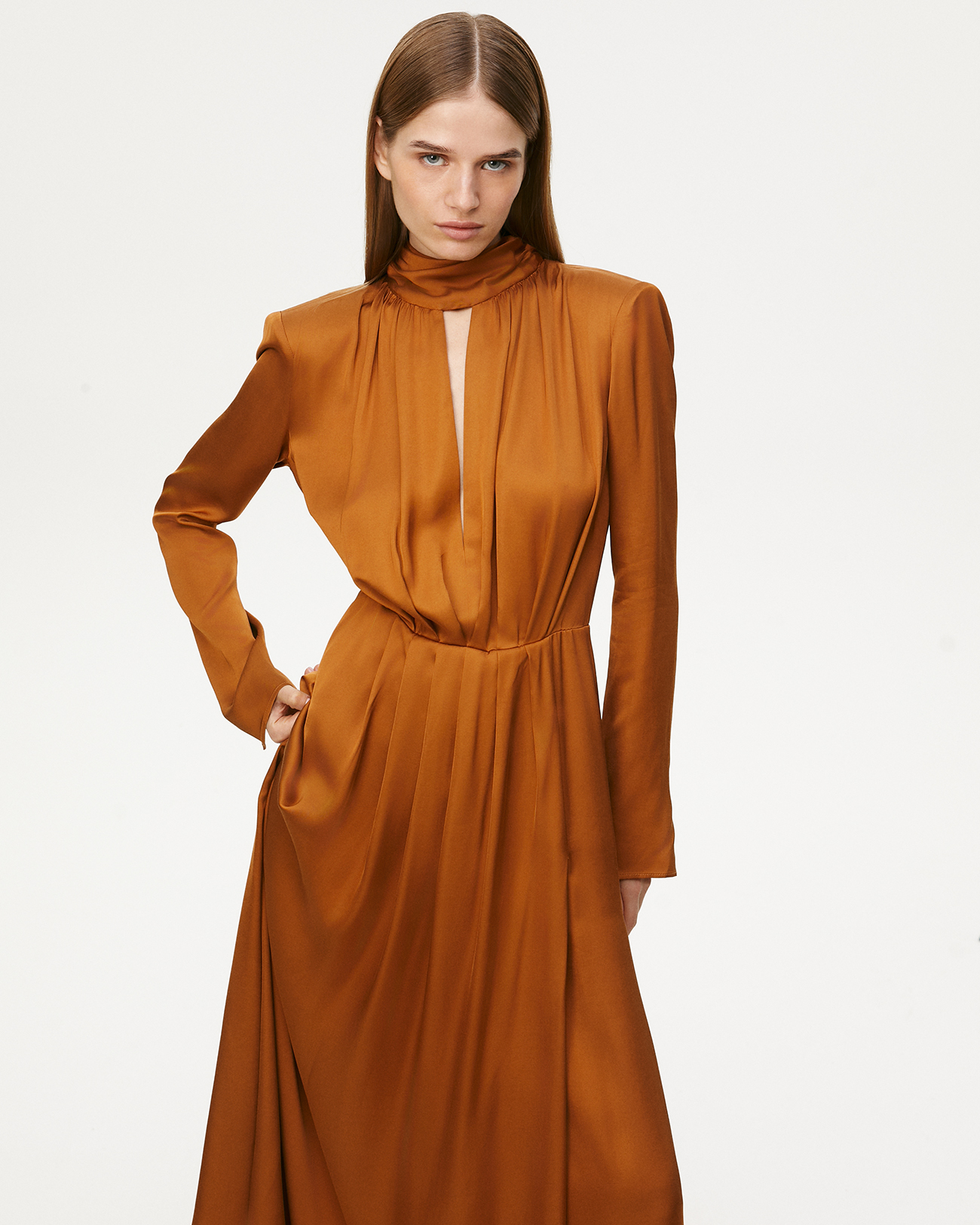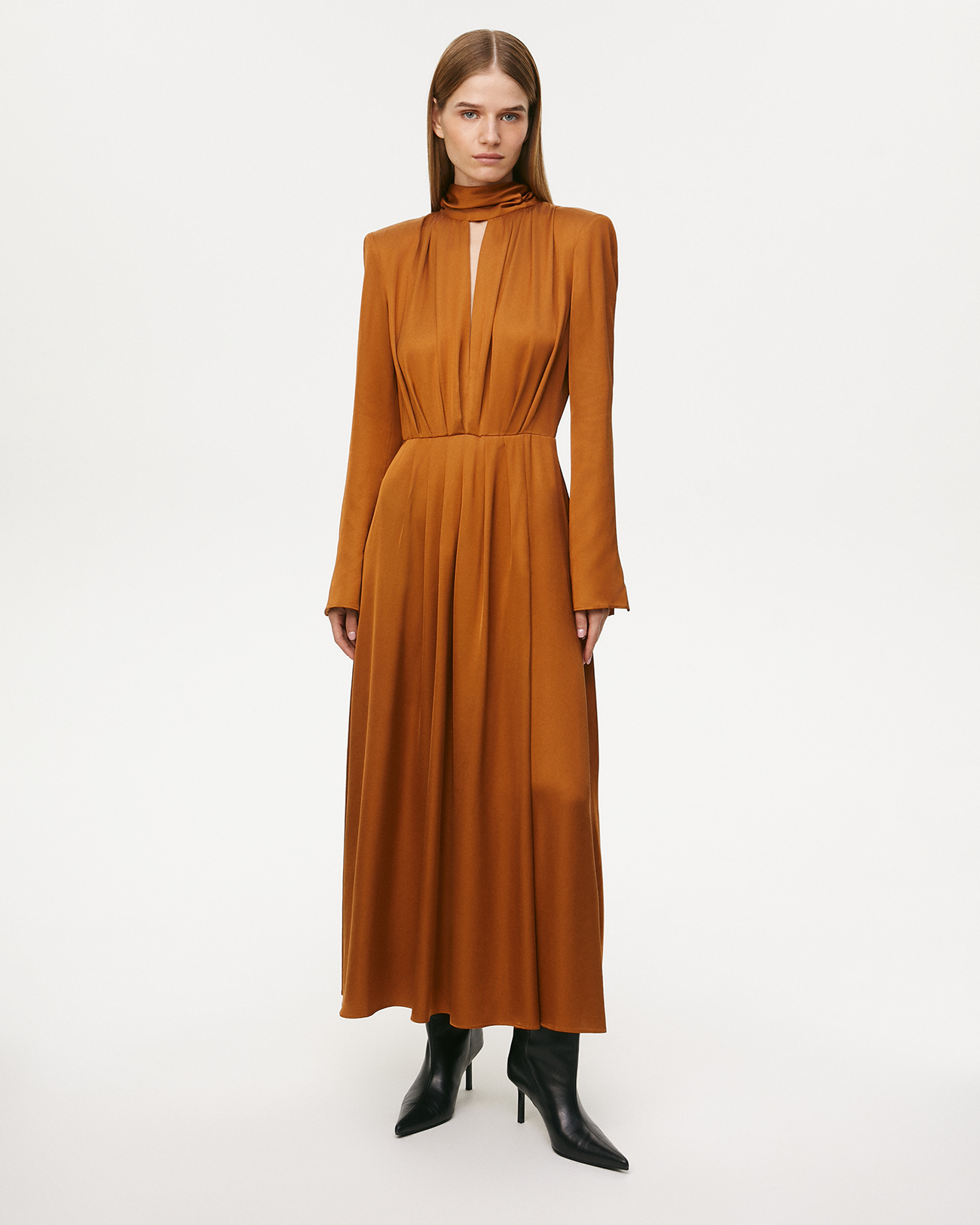 Платье макси с шарфом коричневого цвета