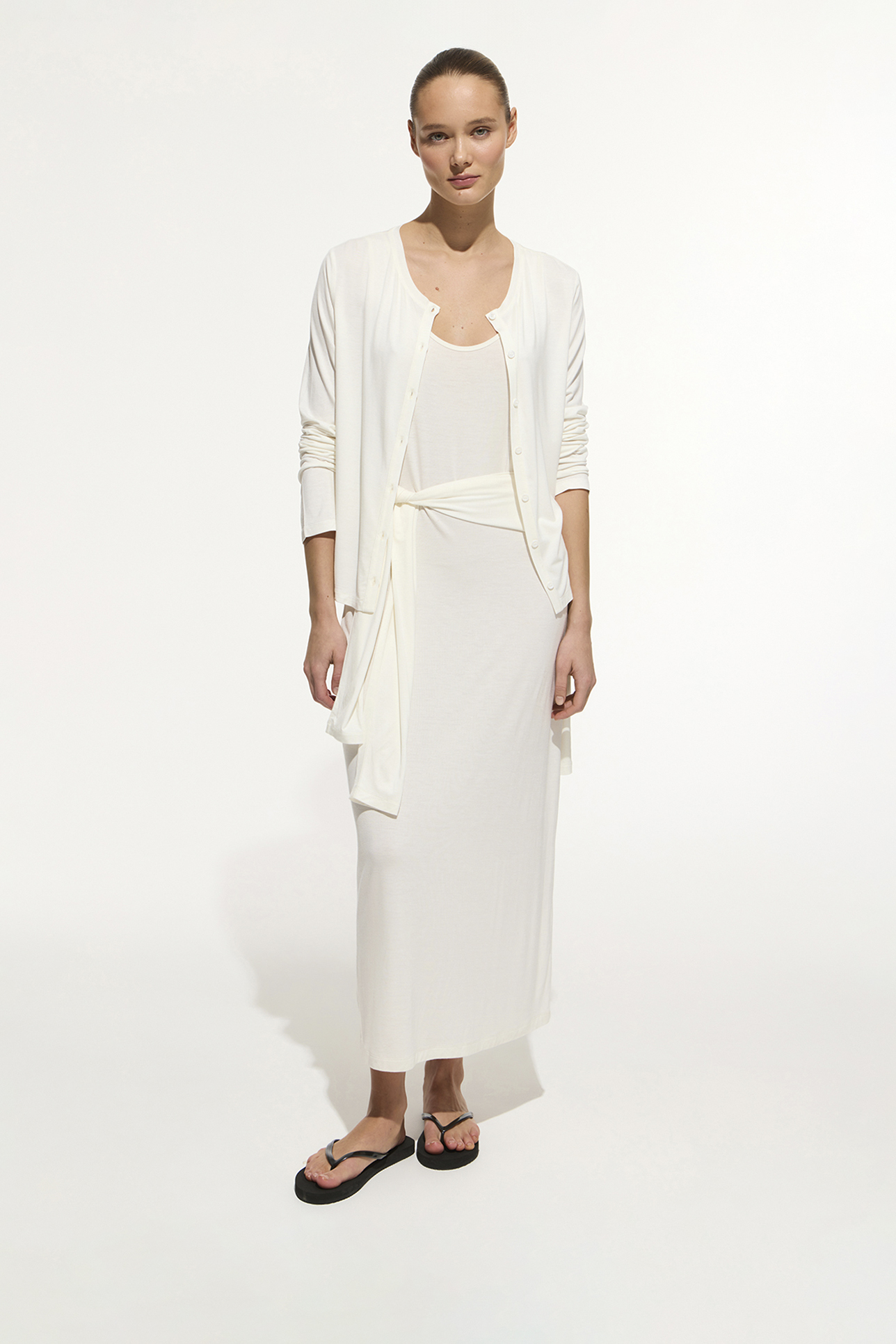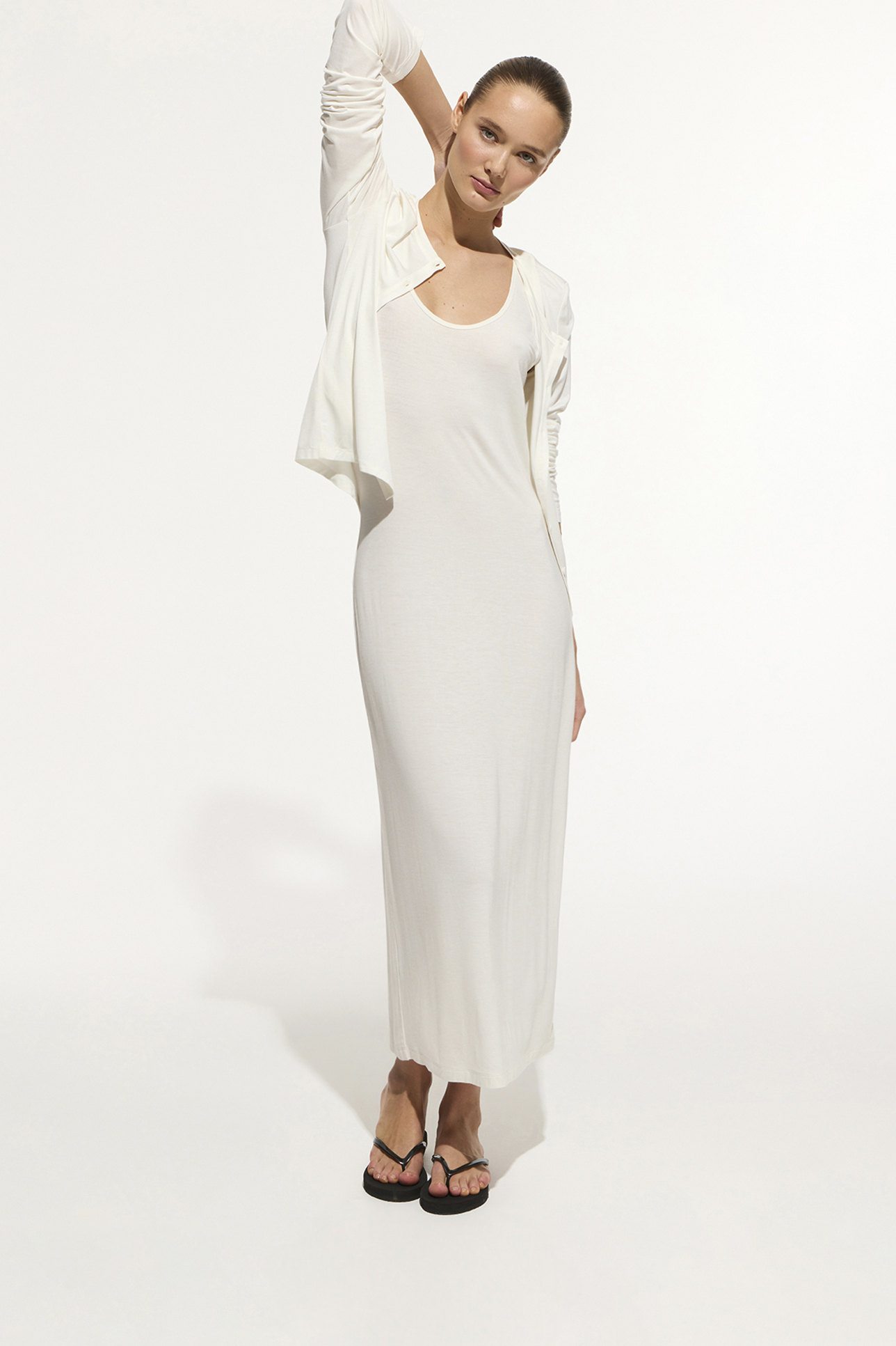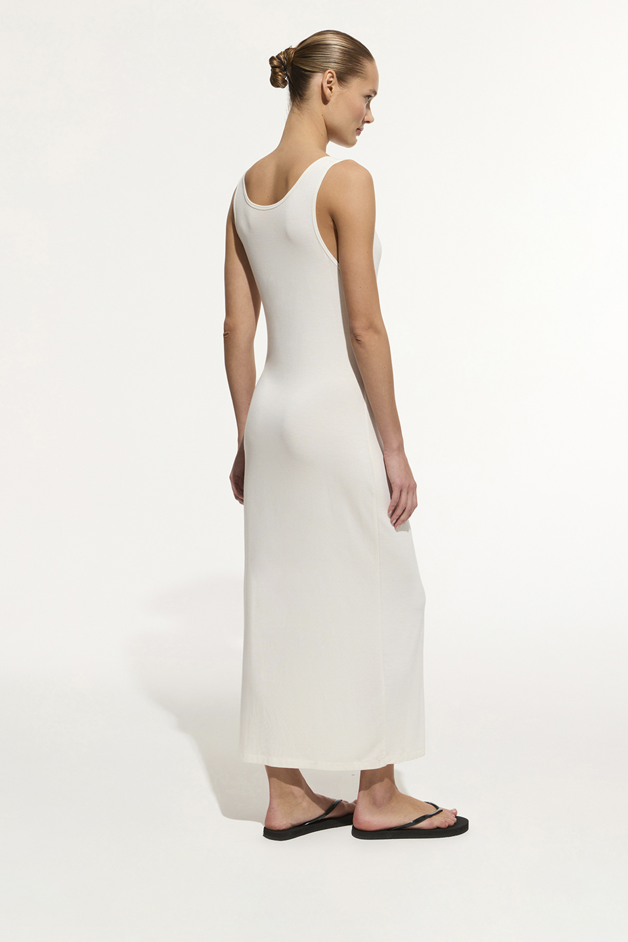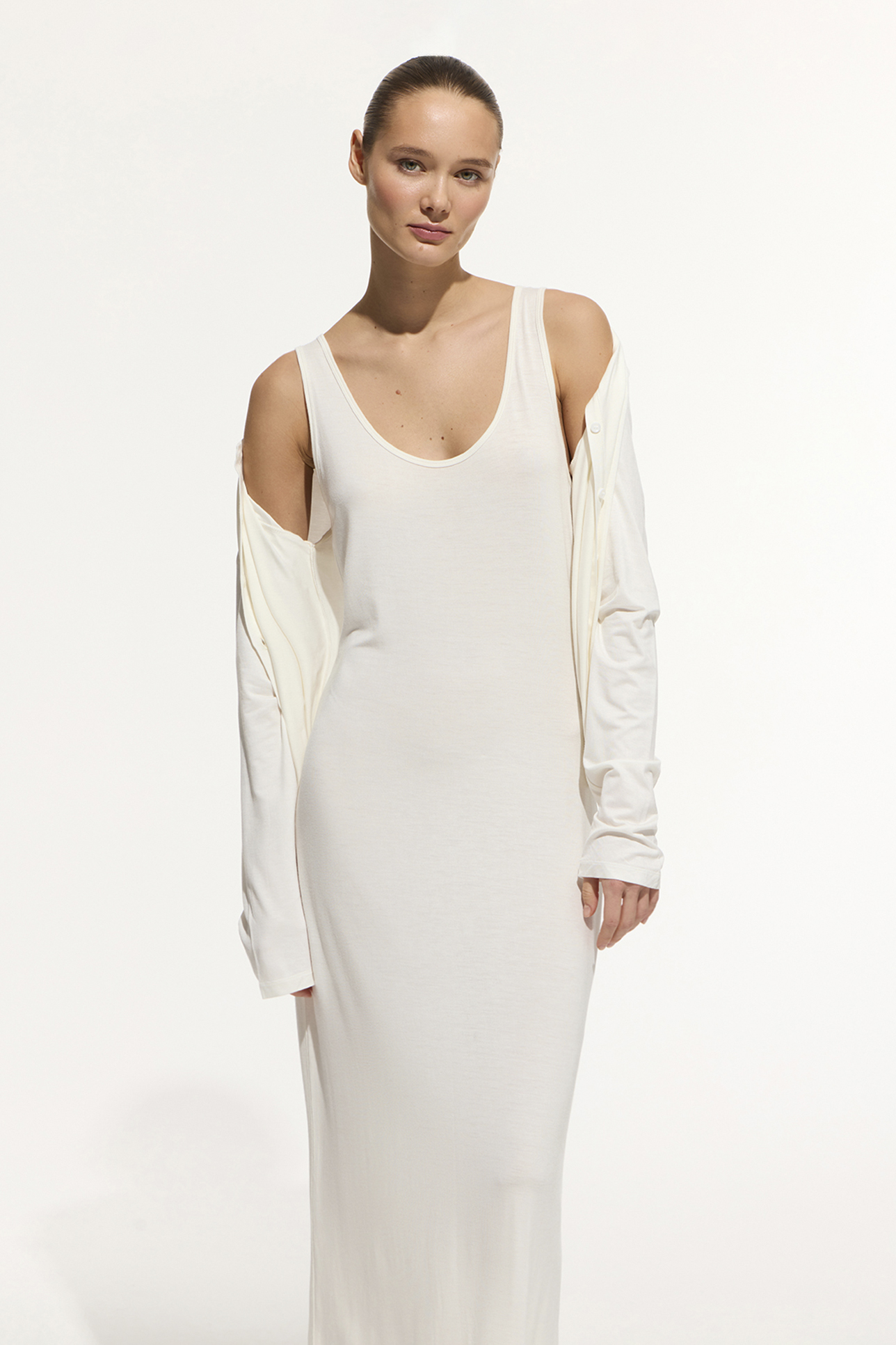 Платье-майка из тонкого трикотажа молочного цвета