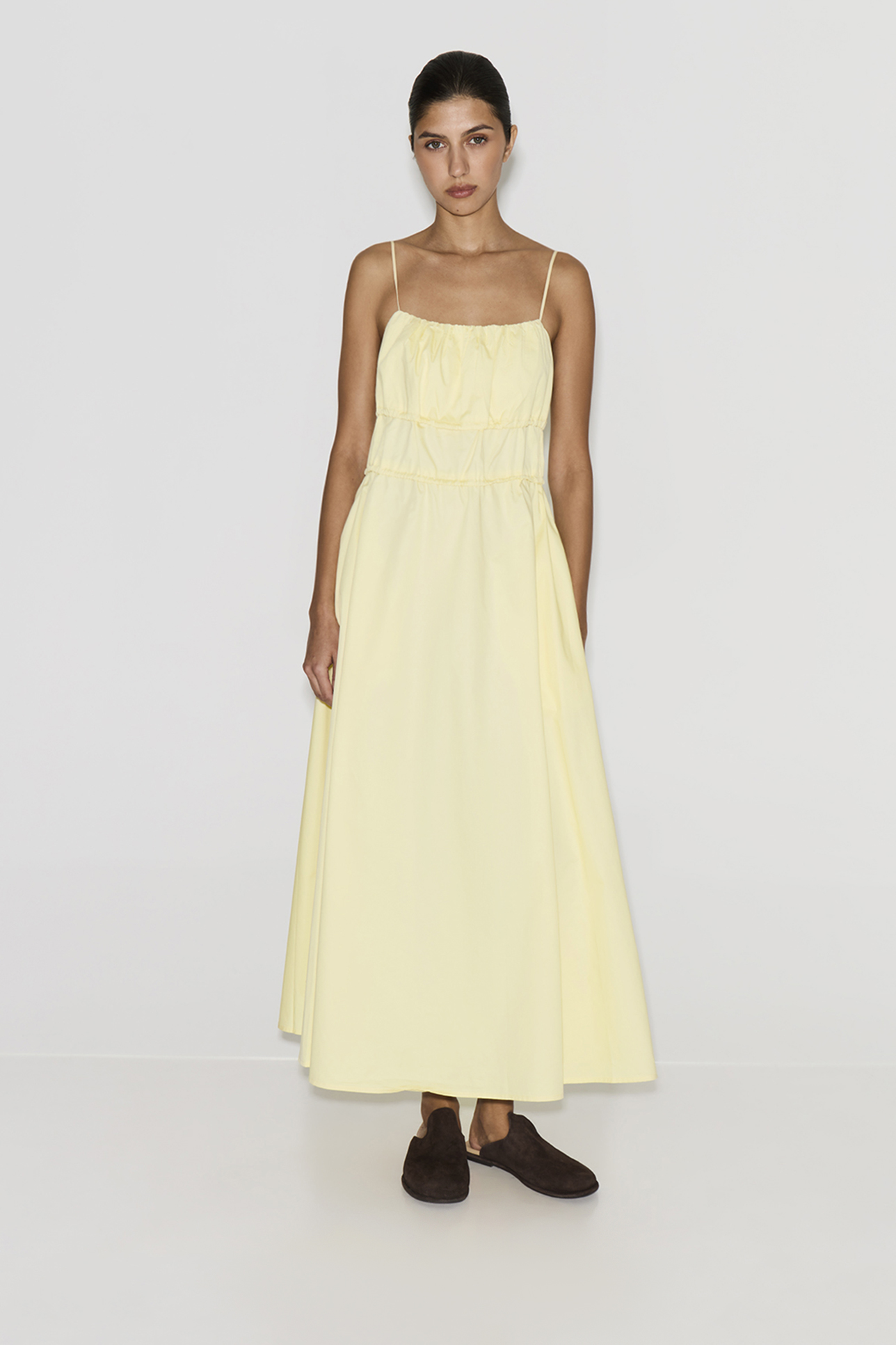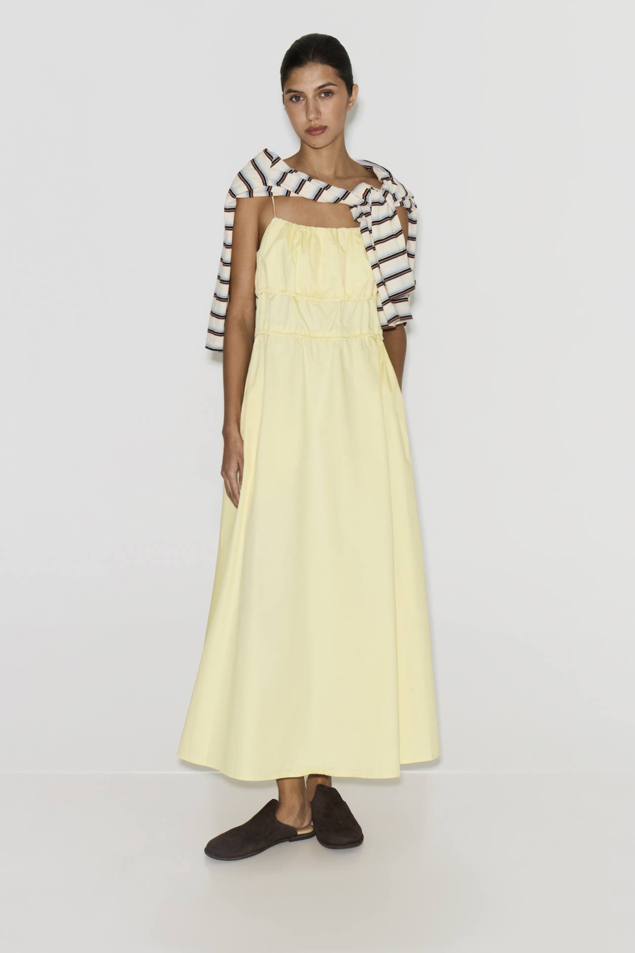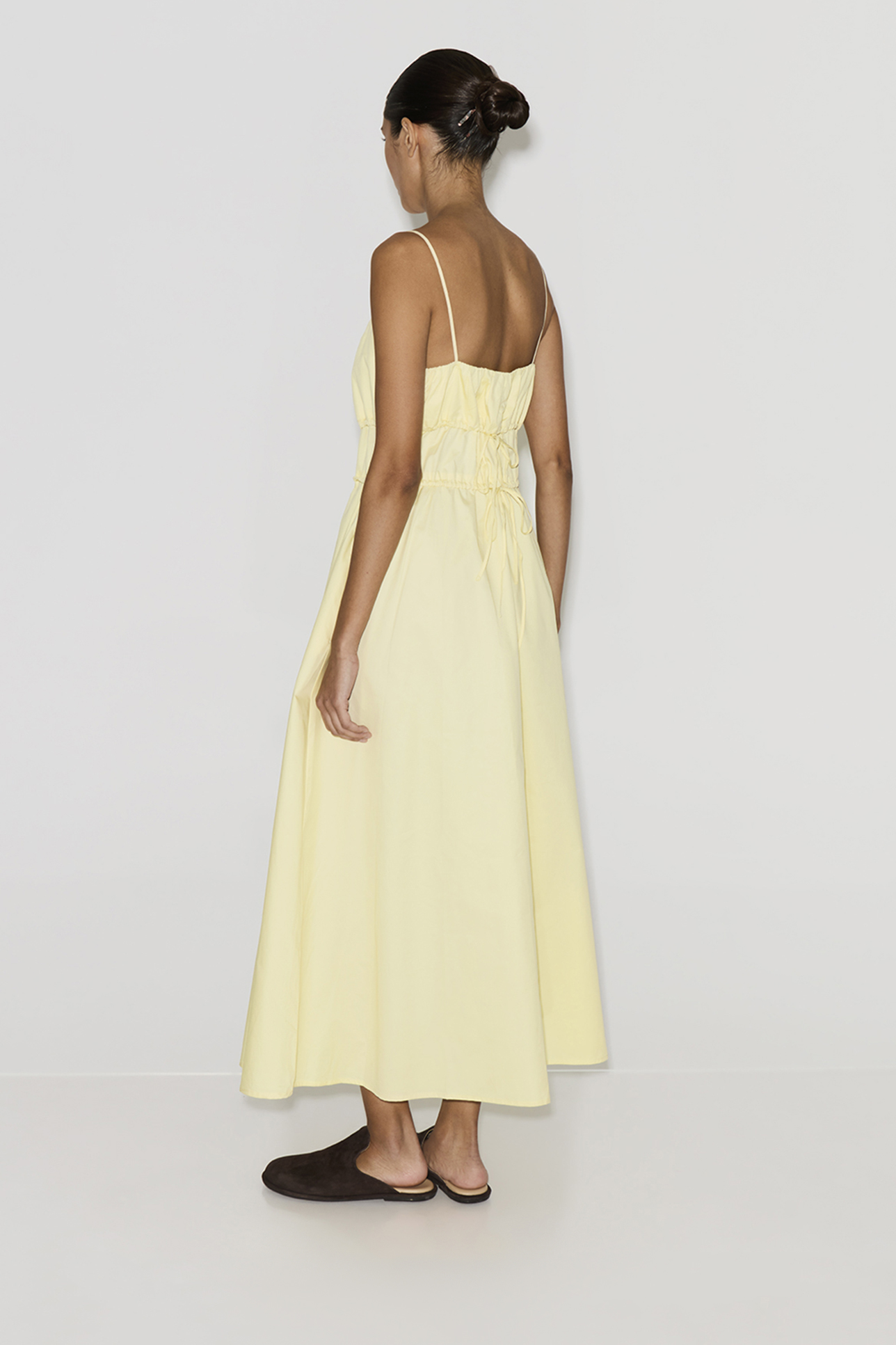 Платье миди из хлопка желтого цвета