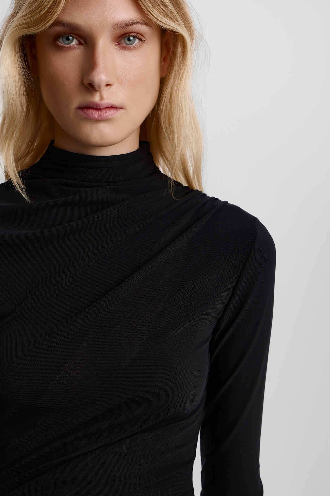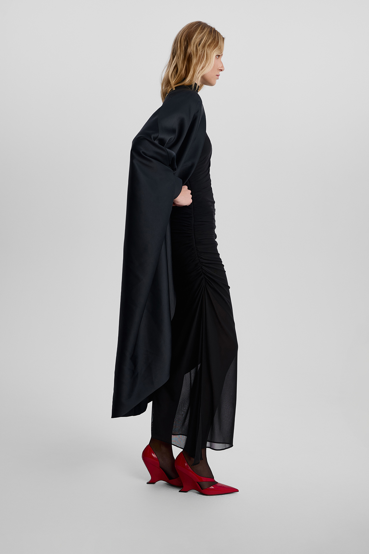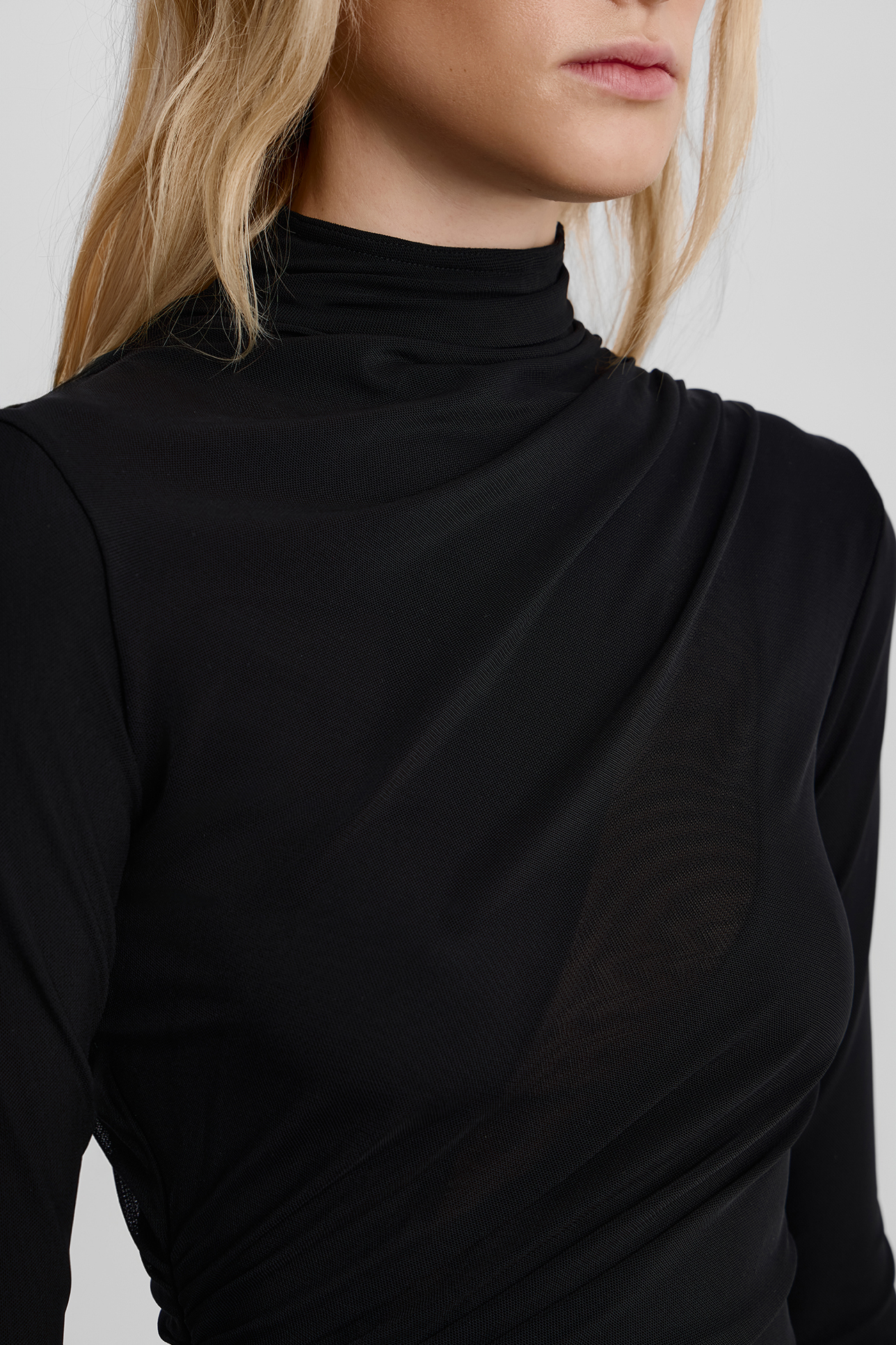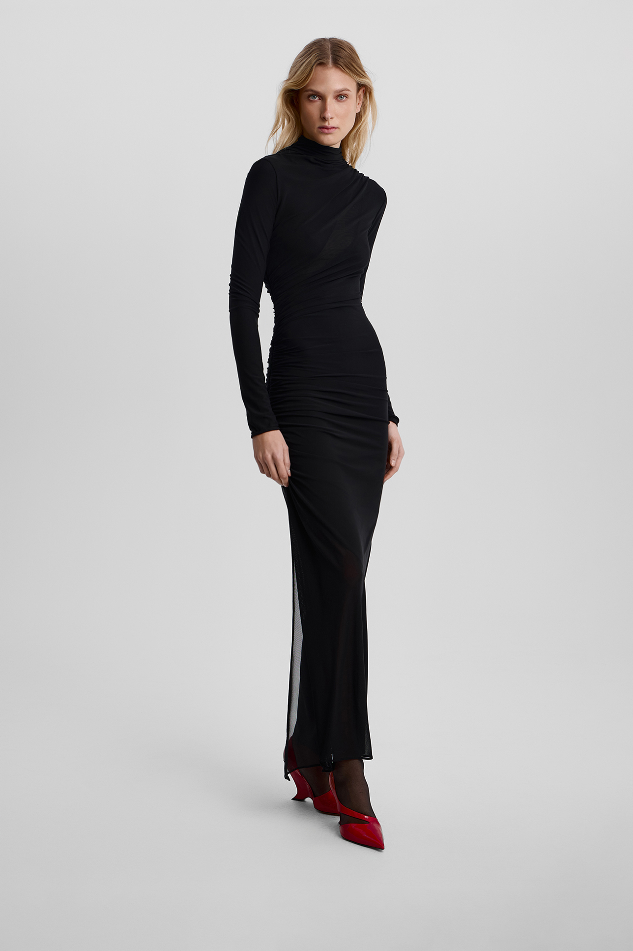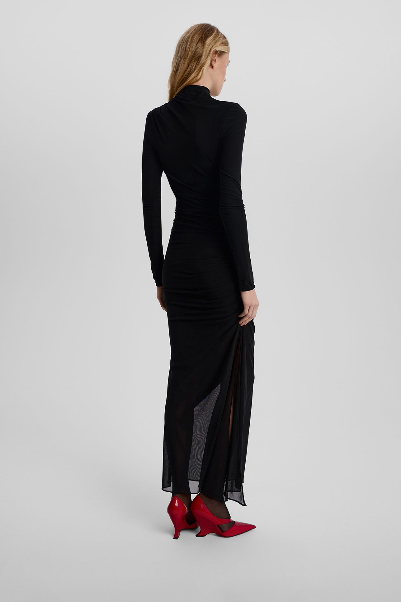 Платье миди из сетки с драпировкой черного цвета