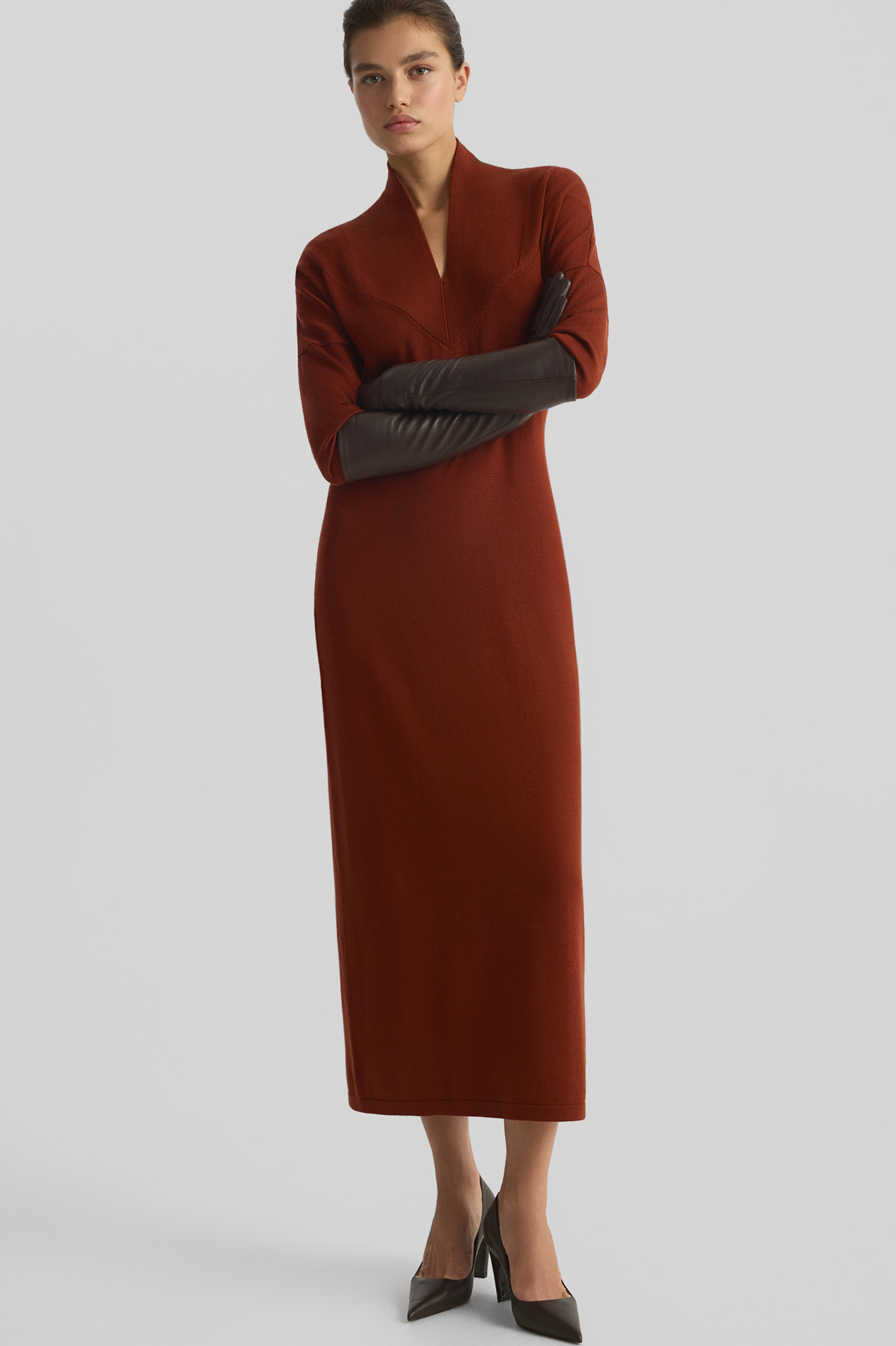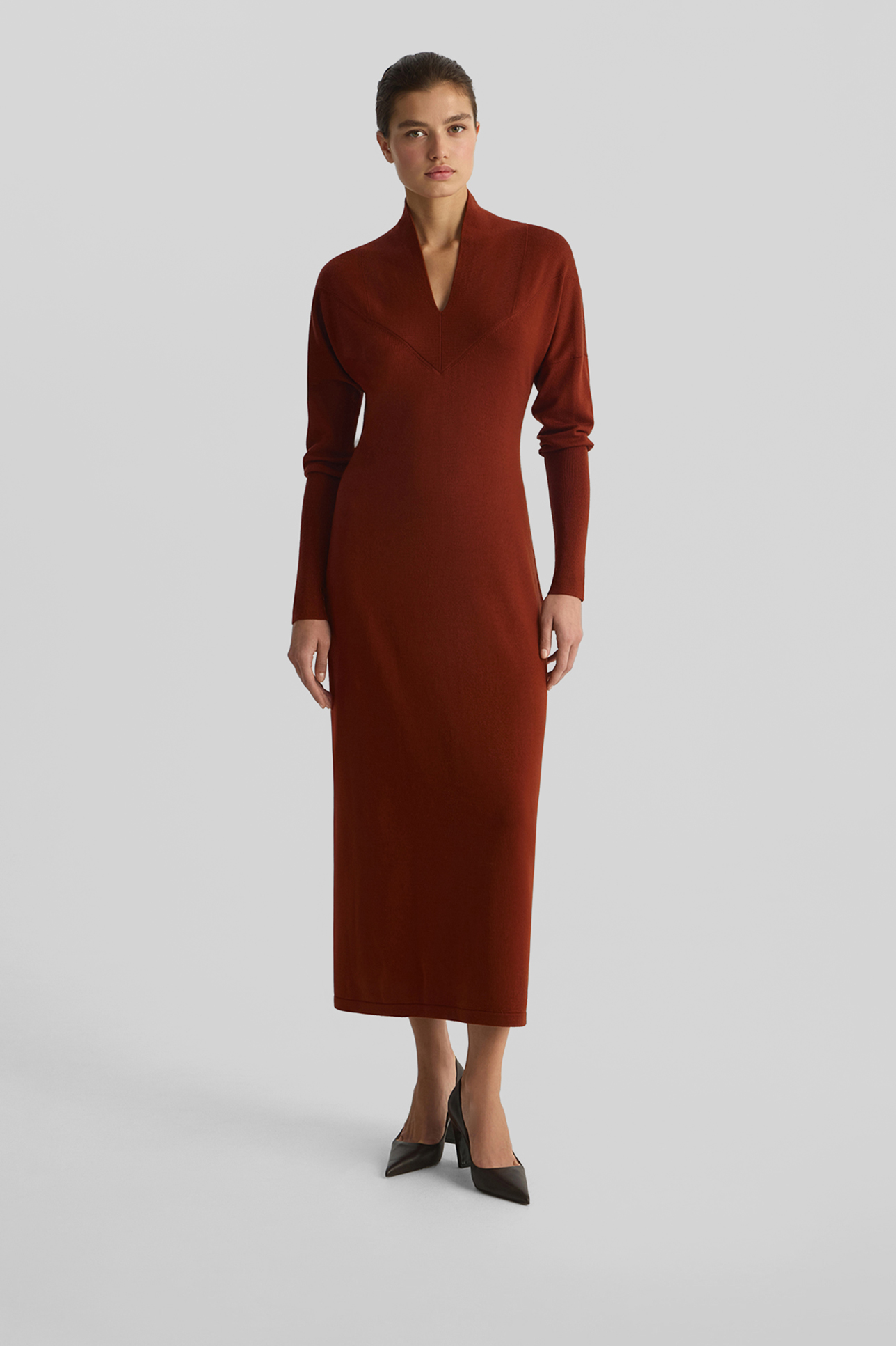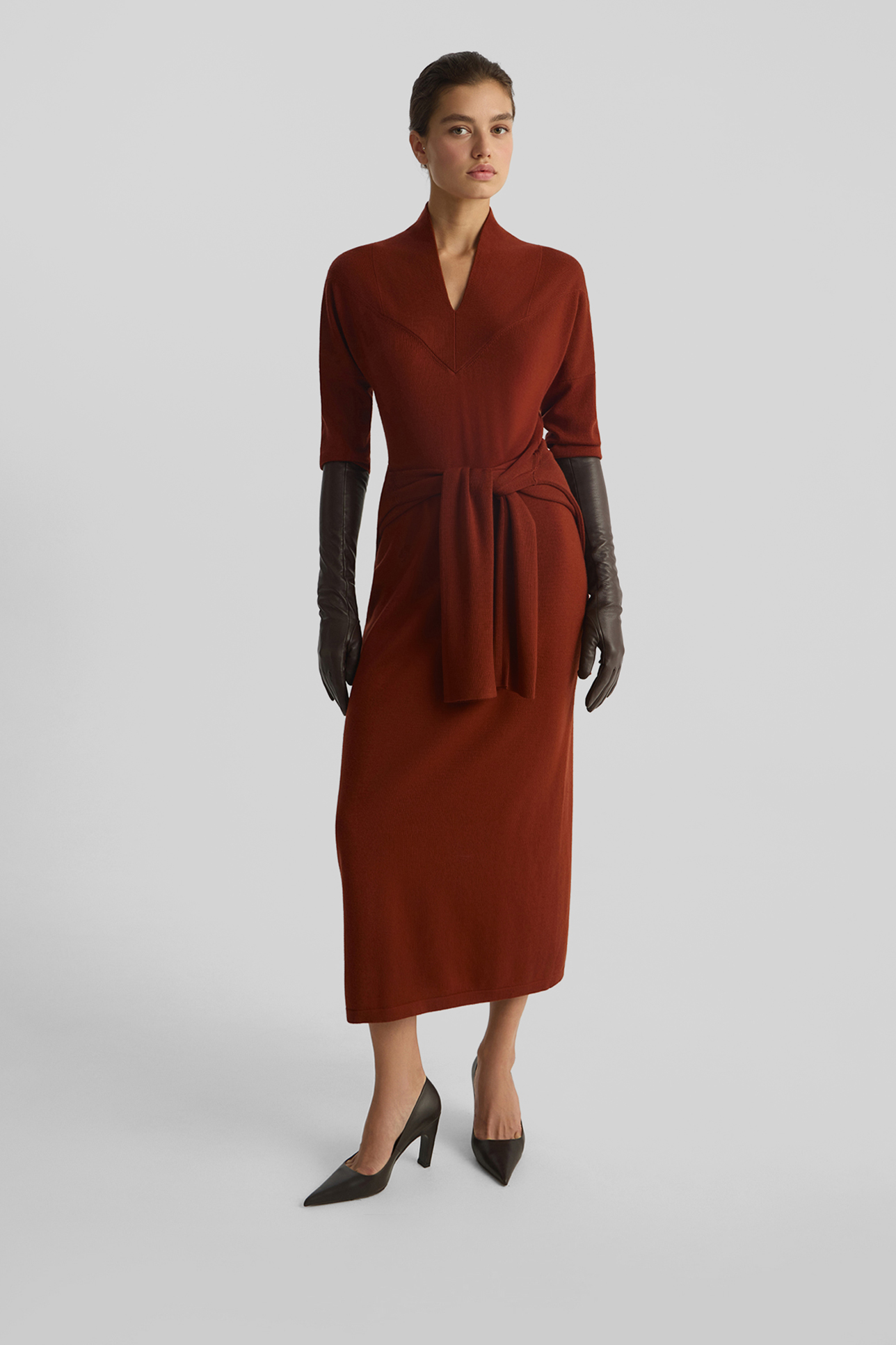 Платье из шерсти мериноса терракотового цвета