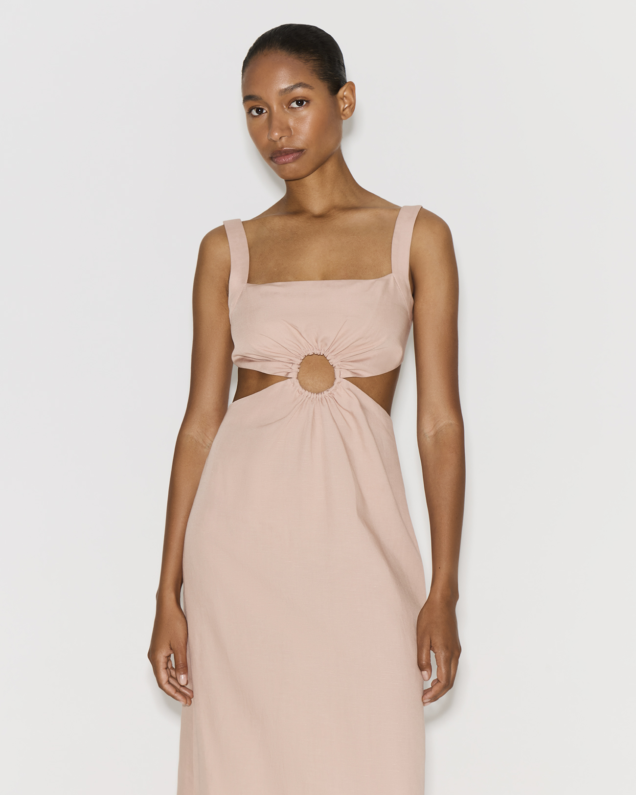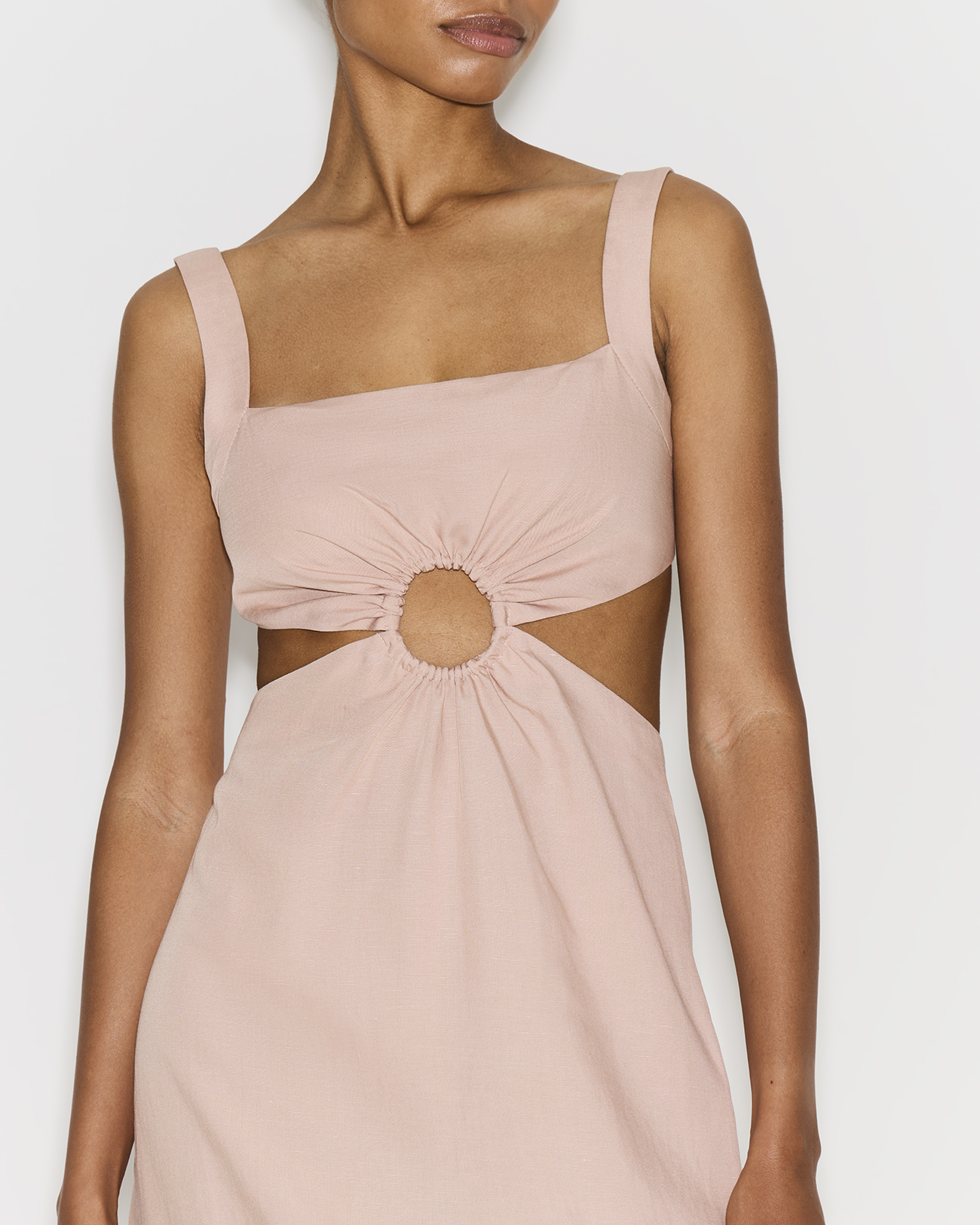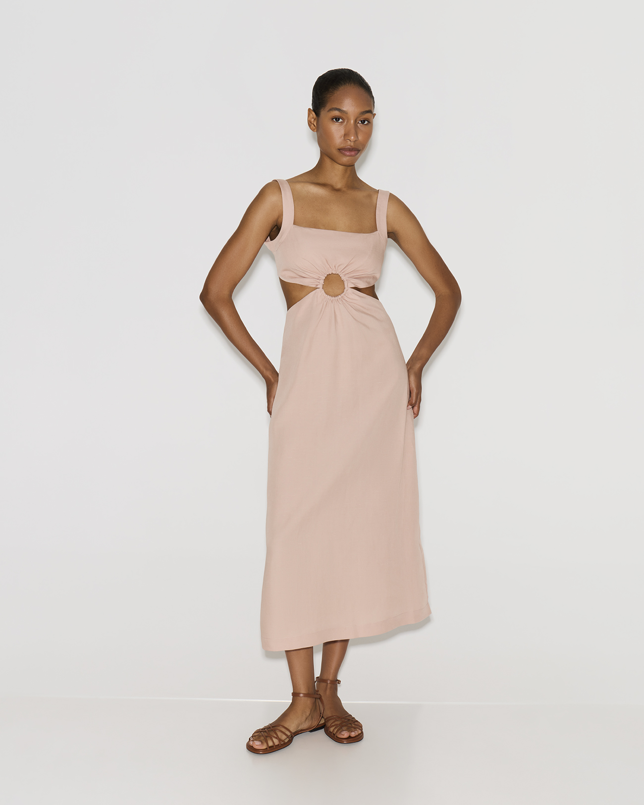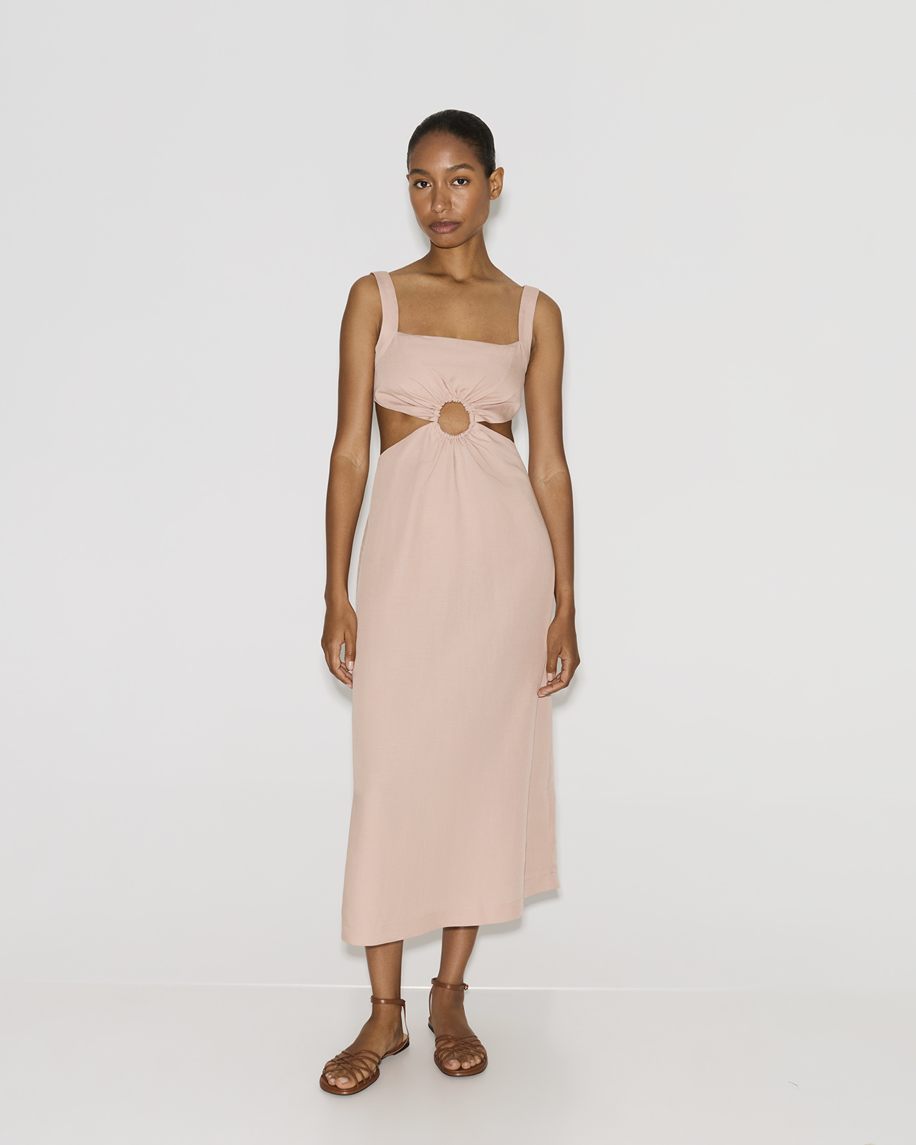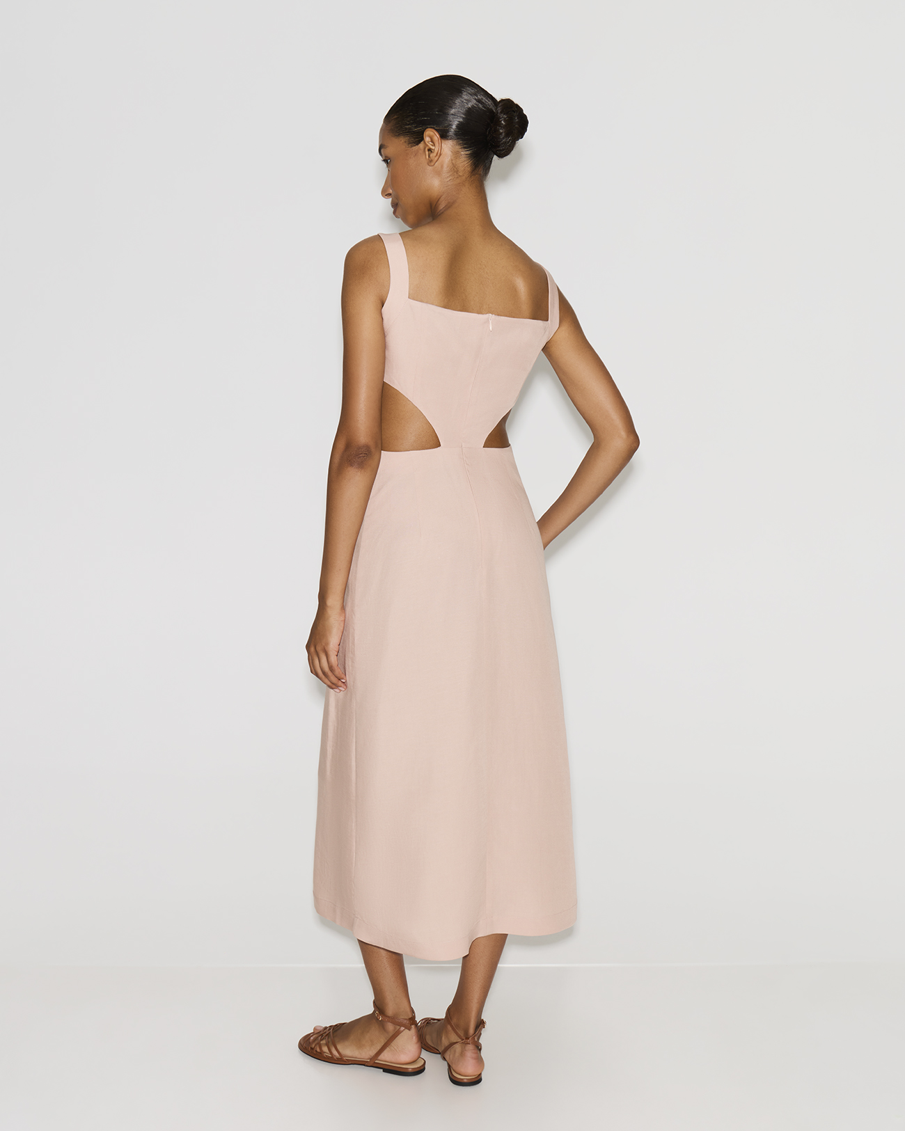 Платье миди со льном розового цвета
