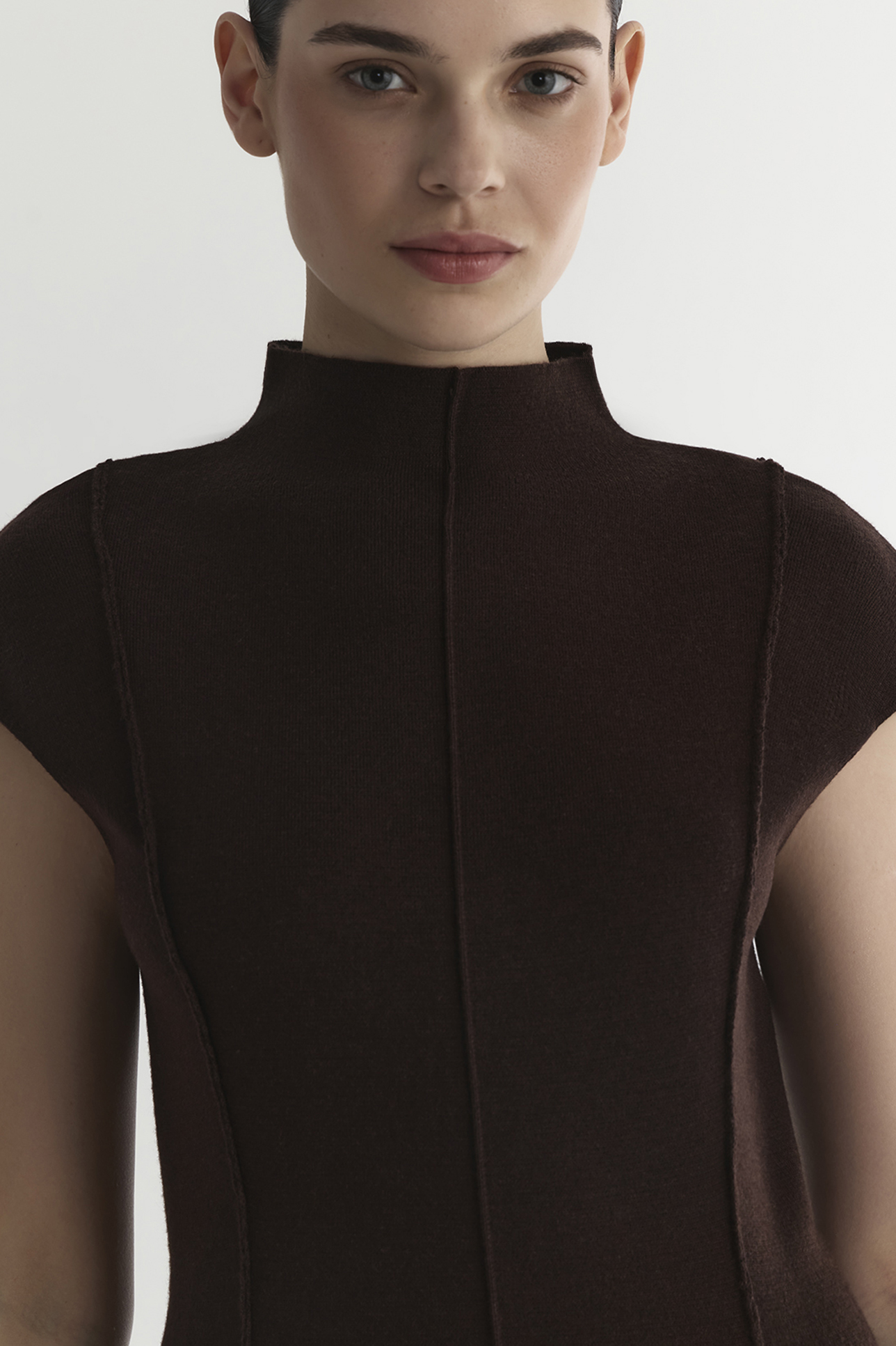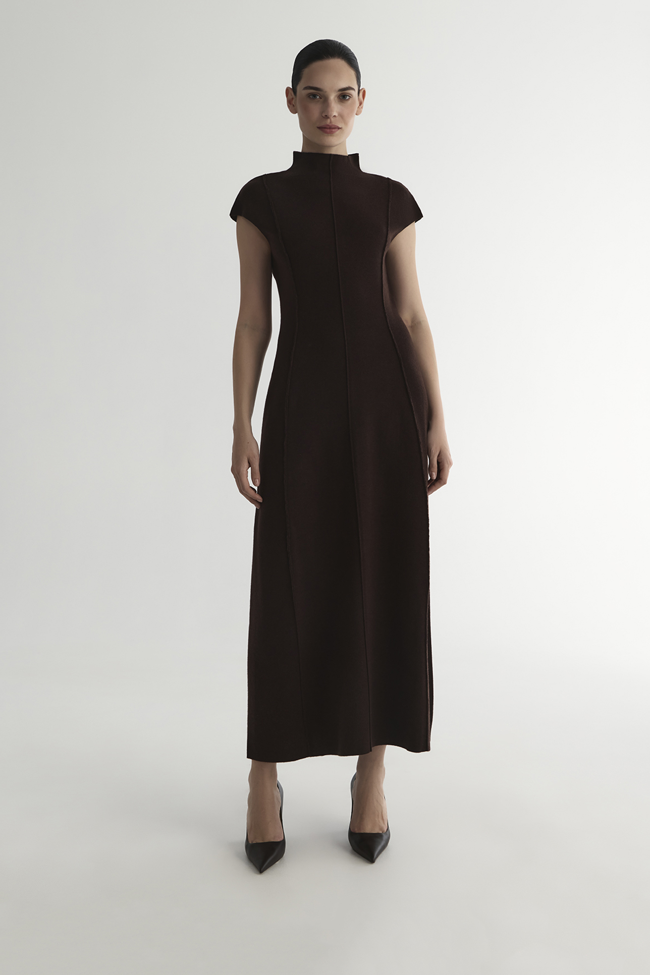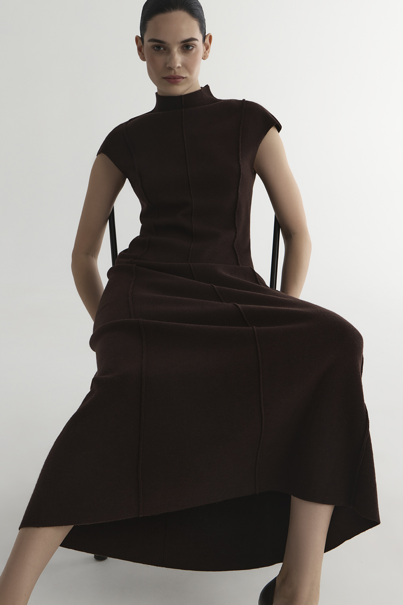 Платье с рельефными швами шоколадного цвета