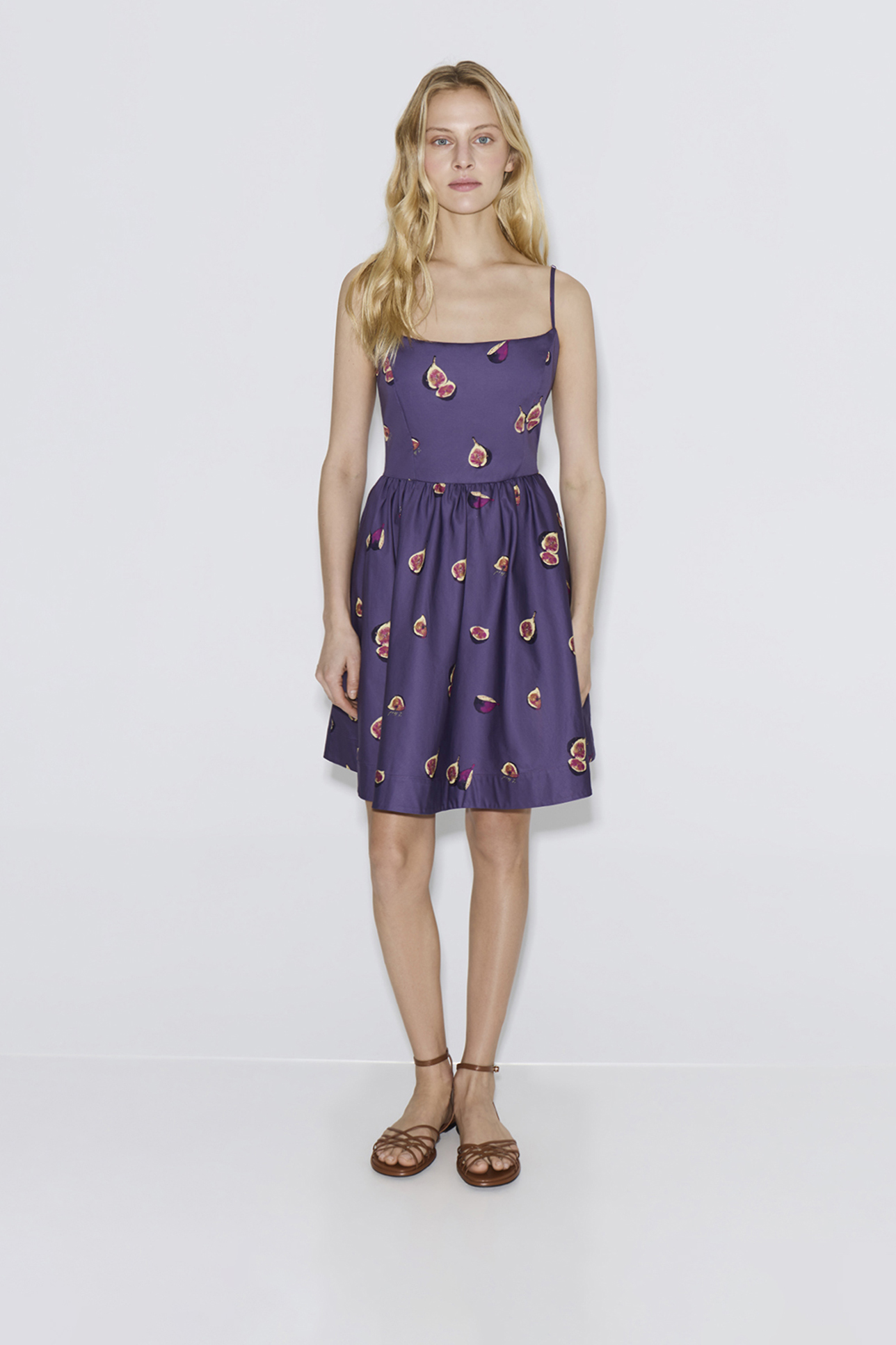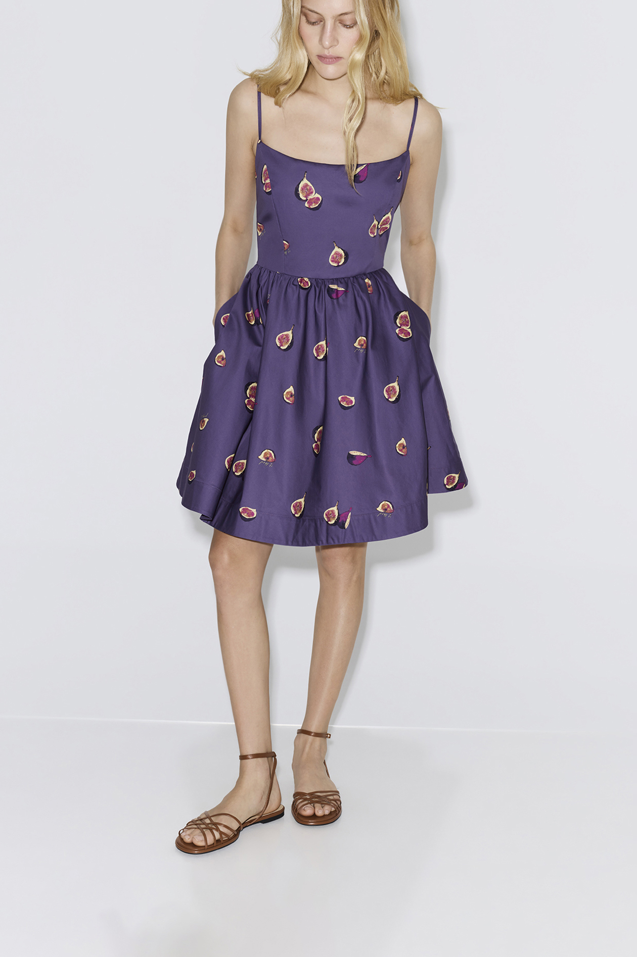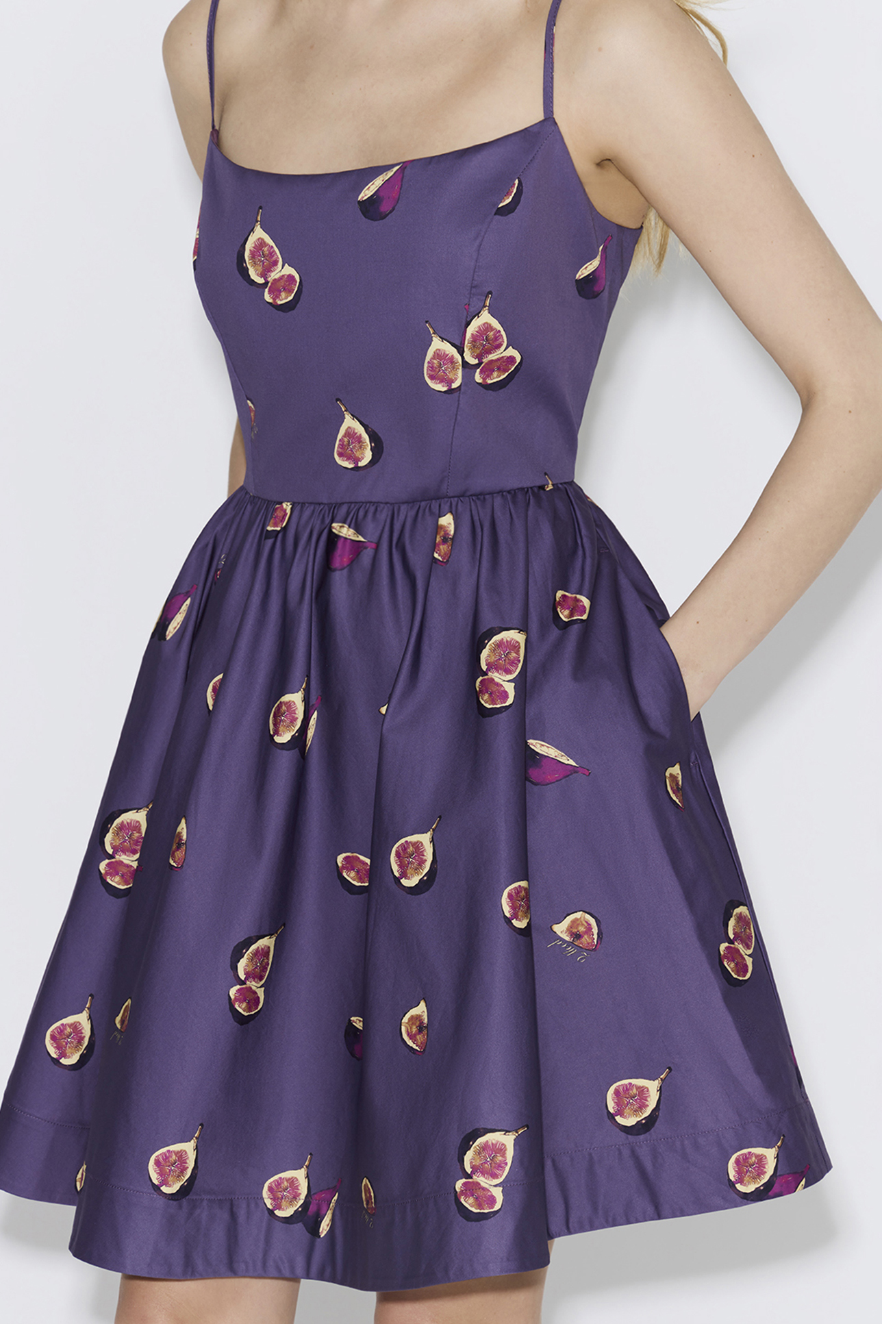 Платье мини из хлопка с принтом фиолетового цвета