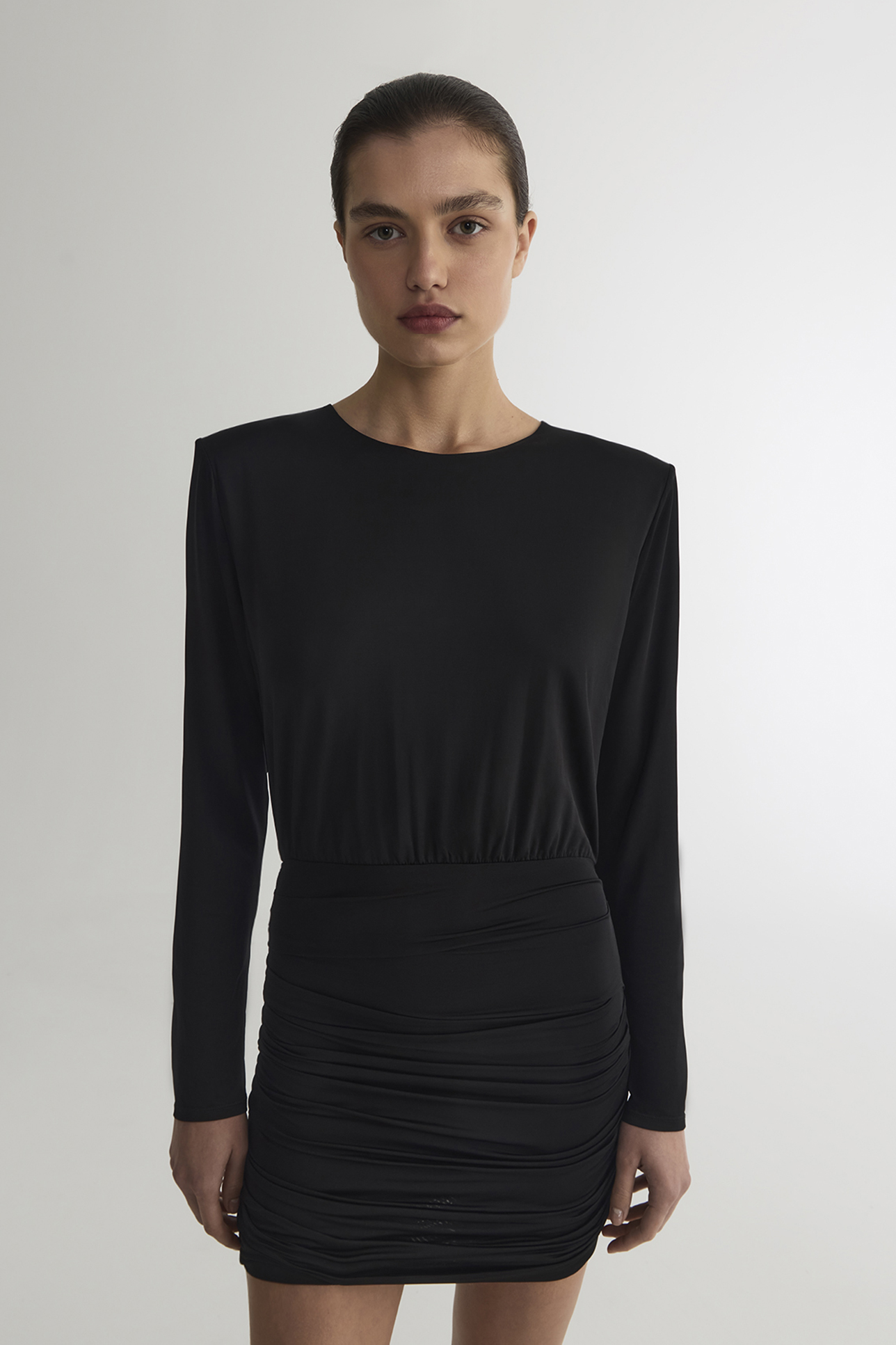 Платье мини с длинным рукавом черного цвета