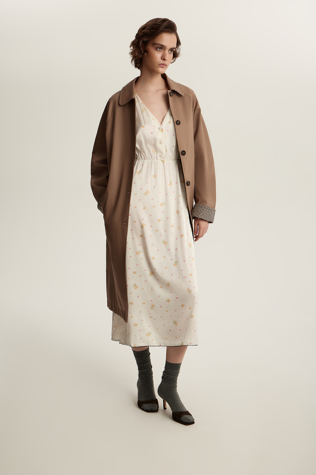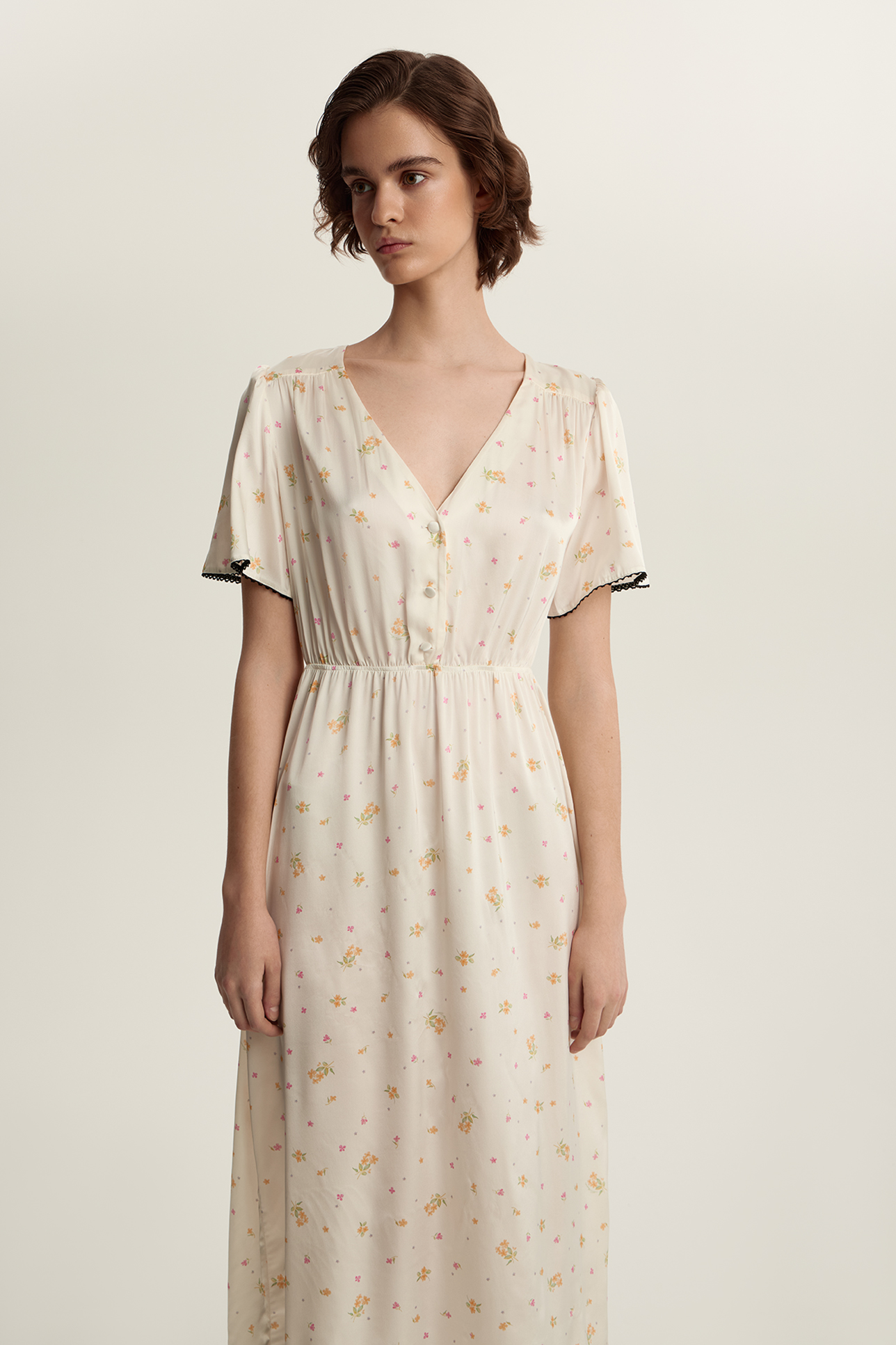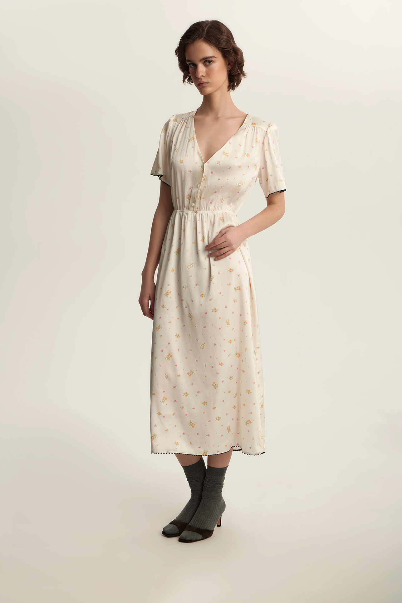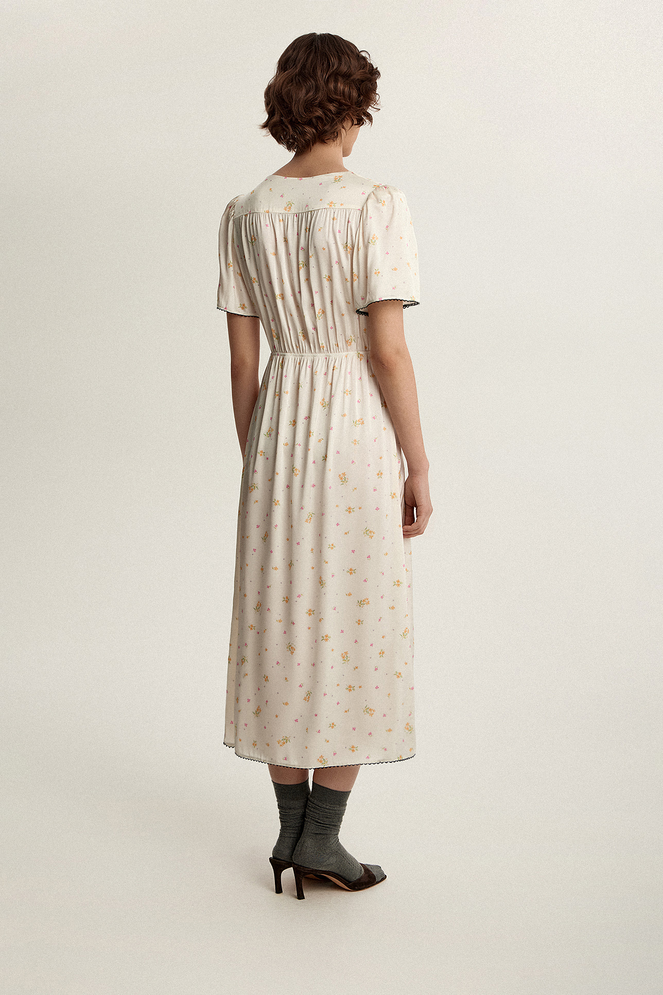Платье миди с цветочным принтом и кружевом