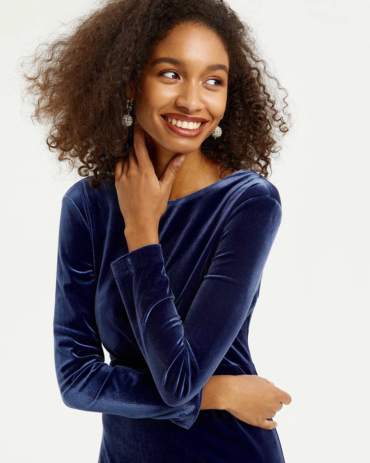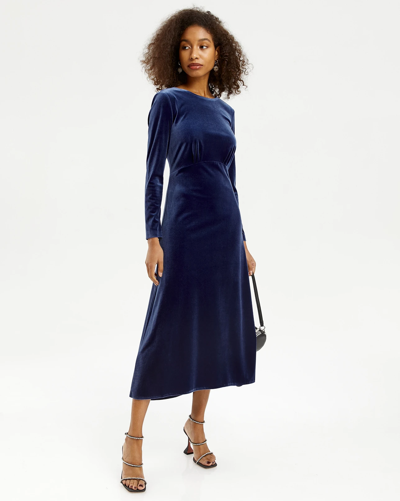 Платье миди из бархата с вырезом на спине Индиго