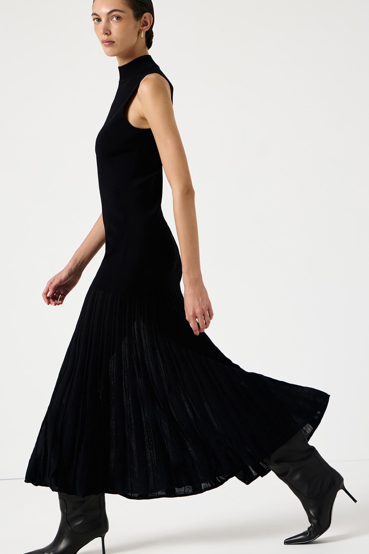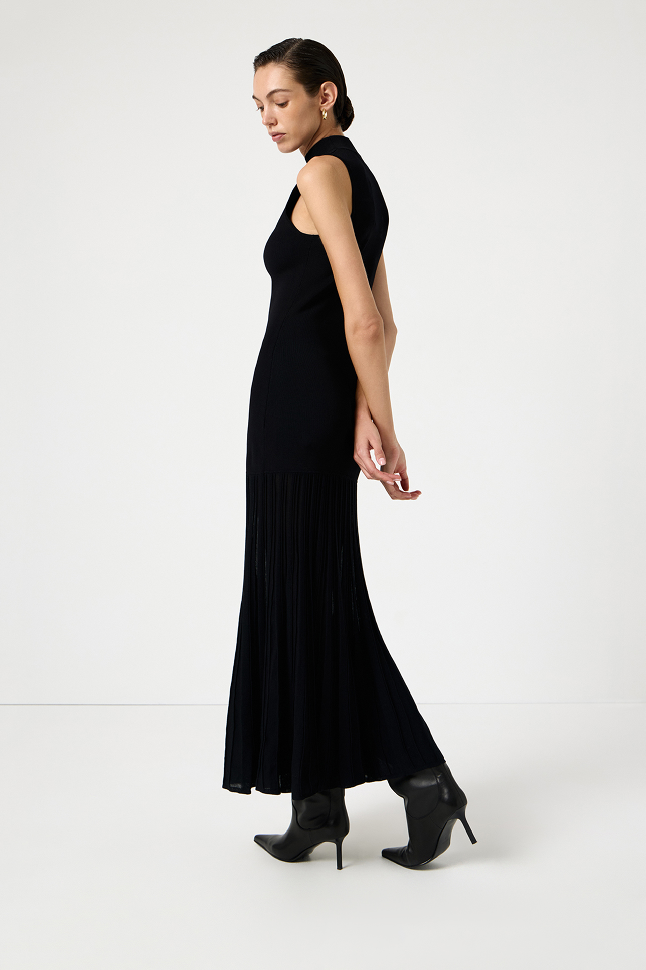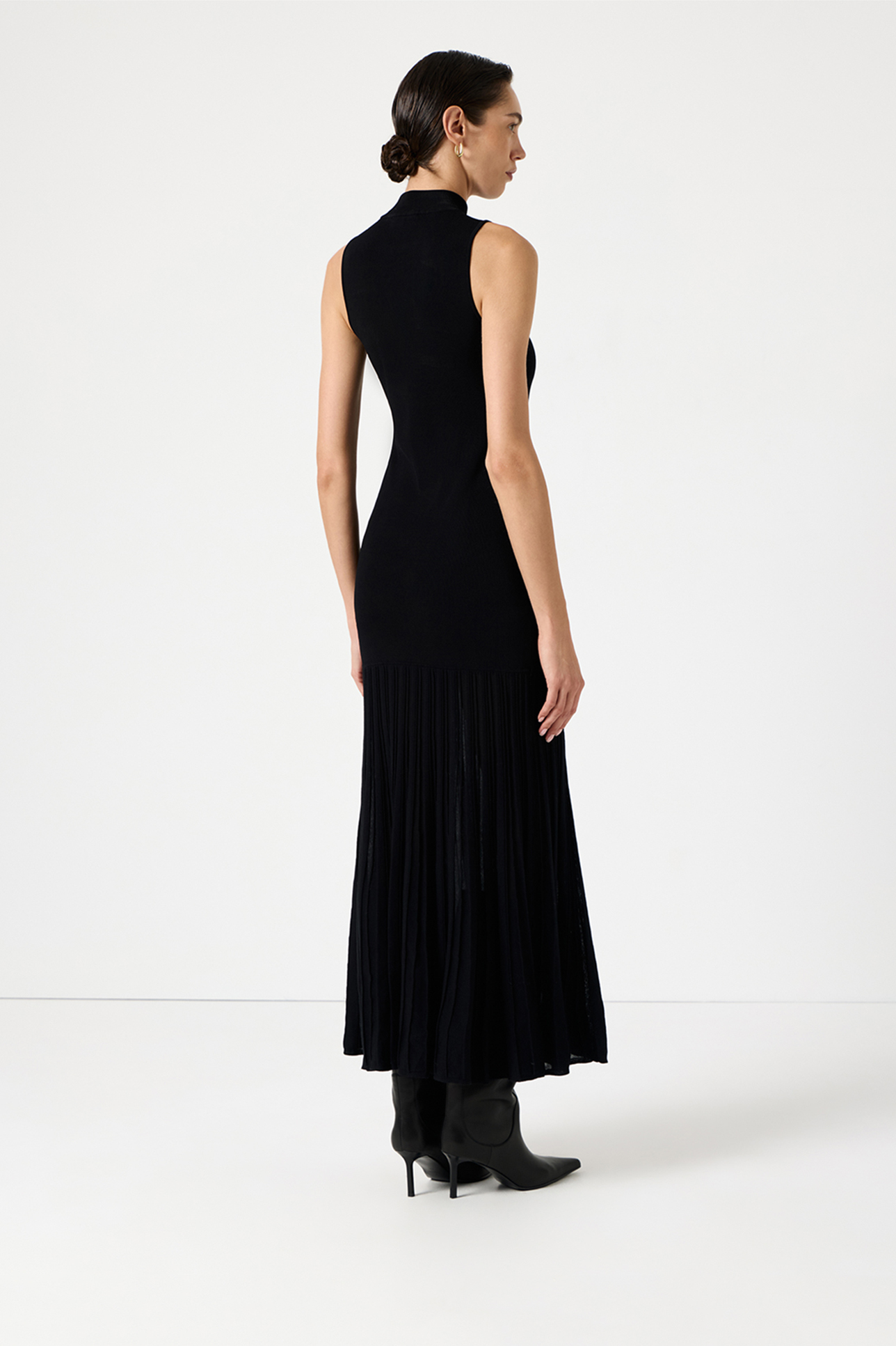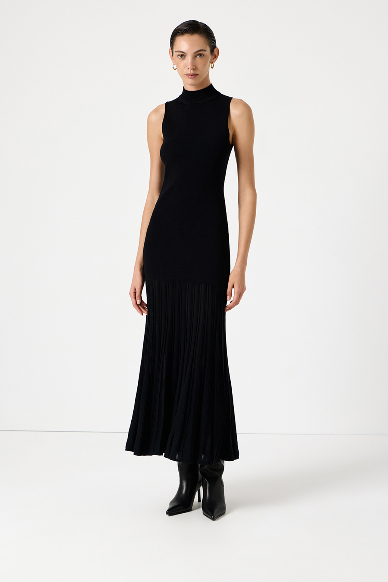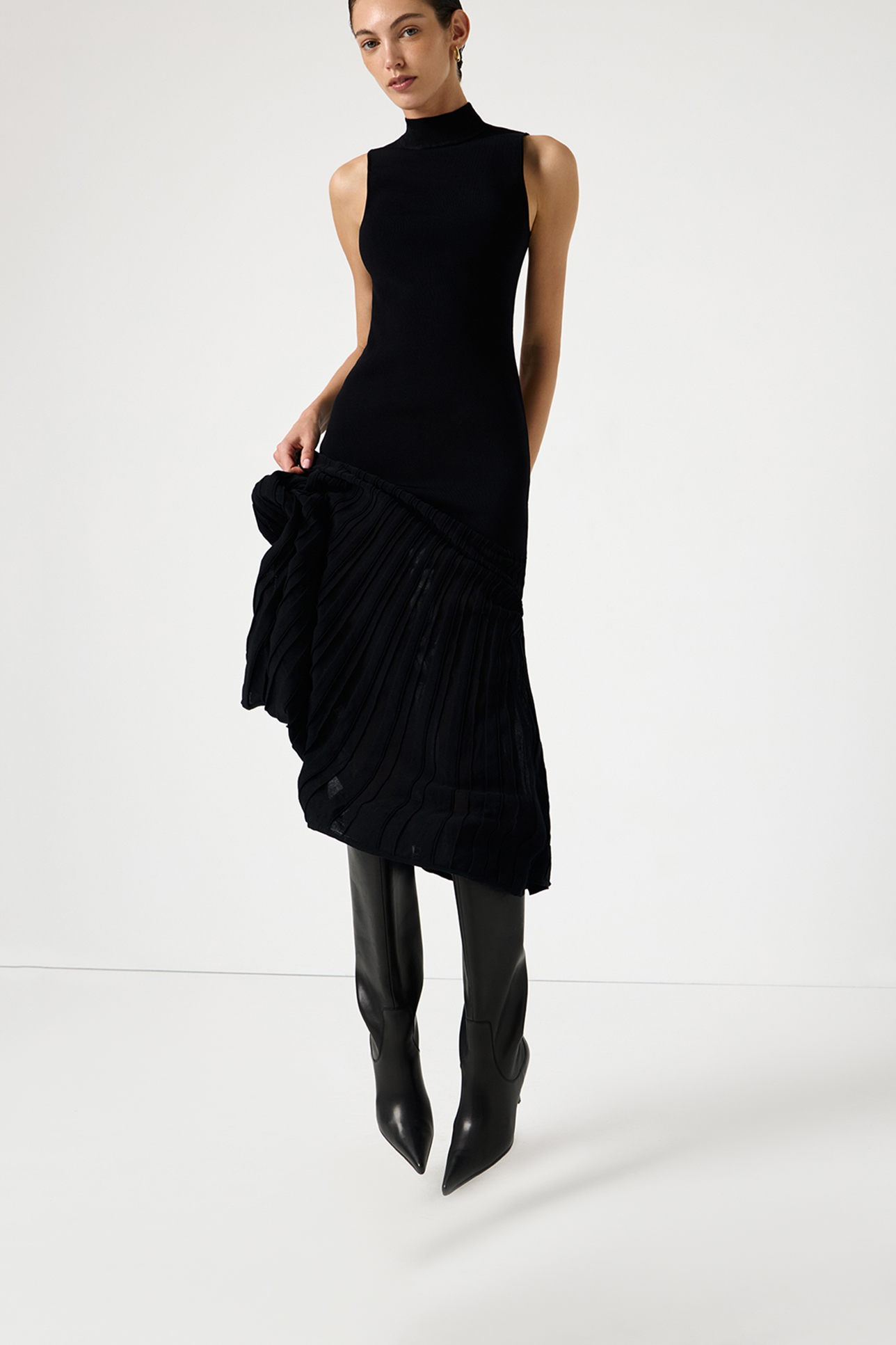 Плиссированное вязаное платье черного цвета