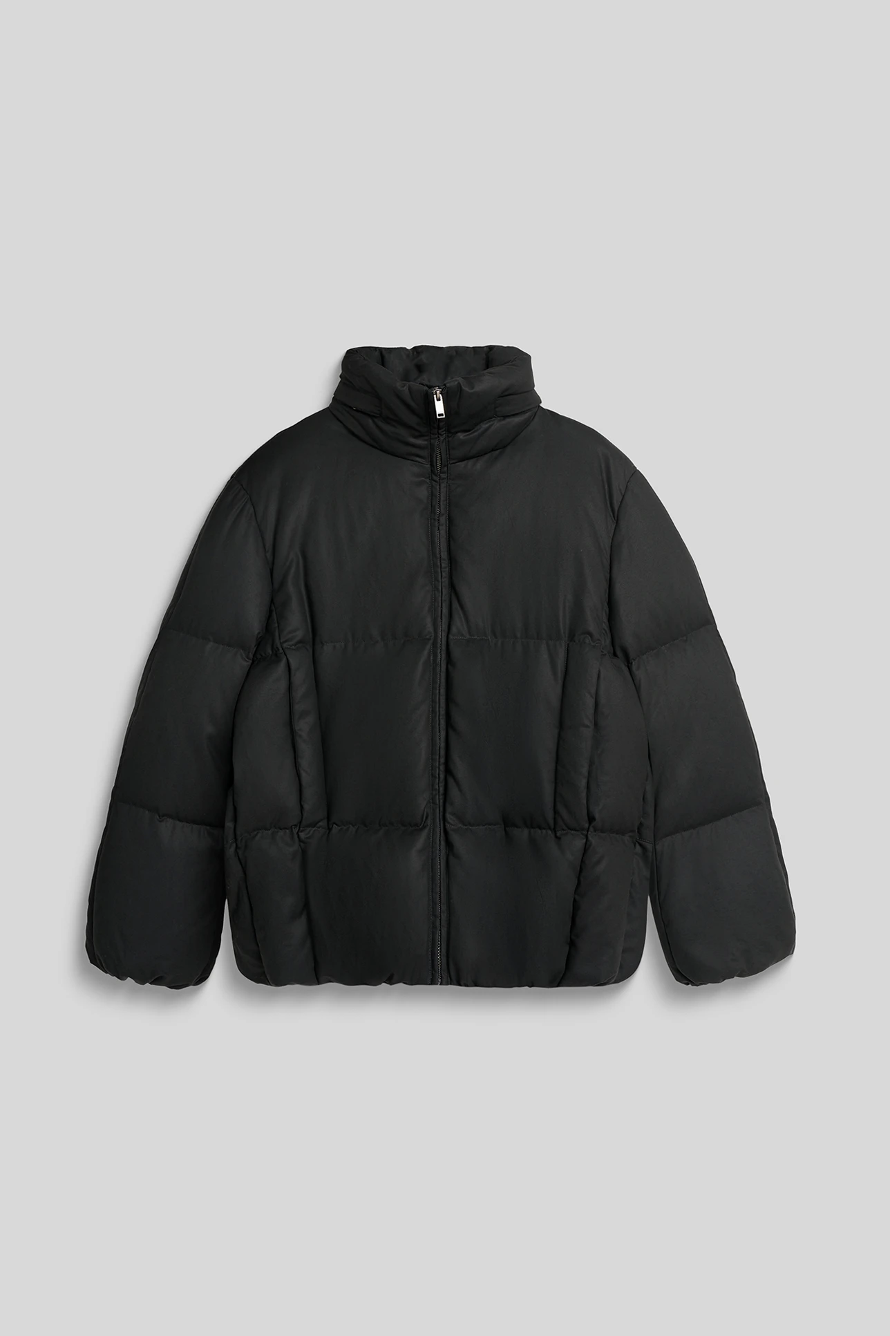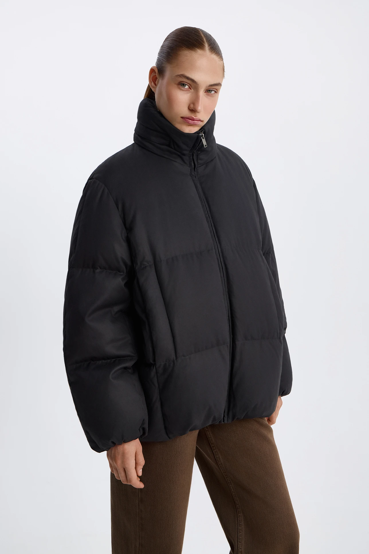 Пуховик со скрытым капюшоном графитового цвета