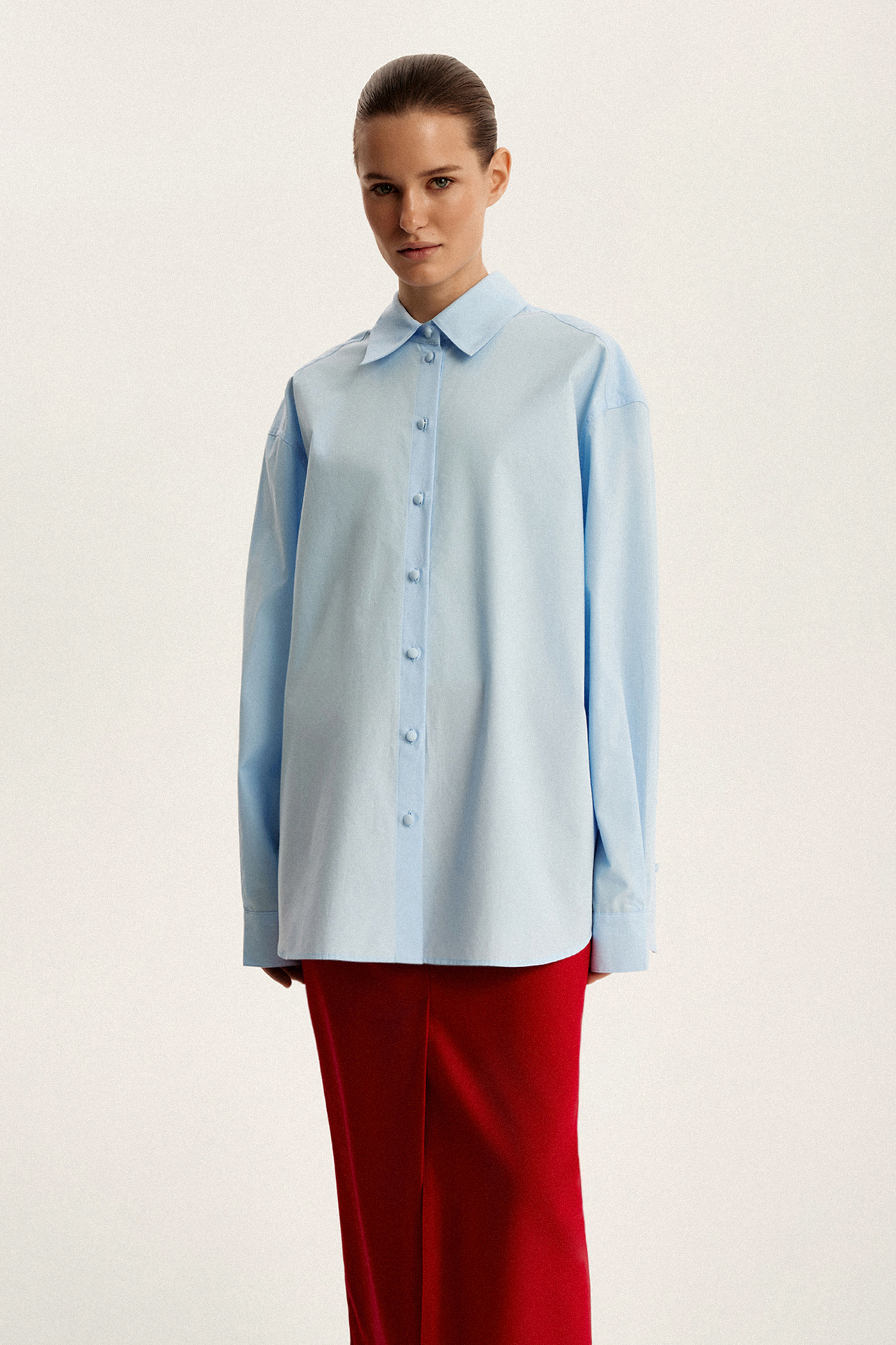 Рубашка объемного кроя их хлопка