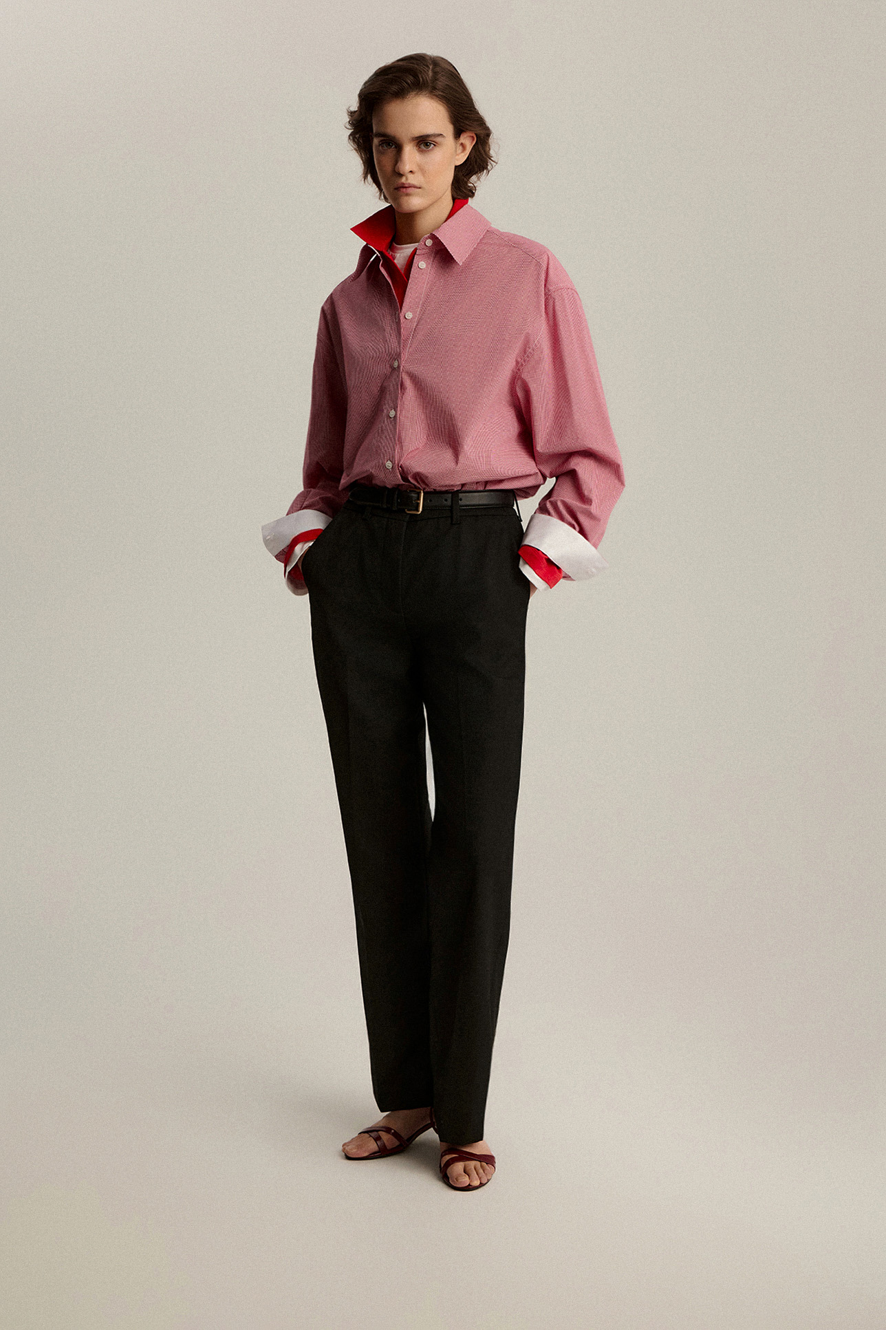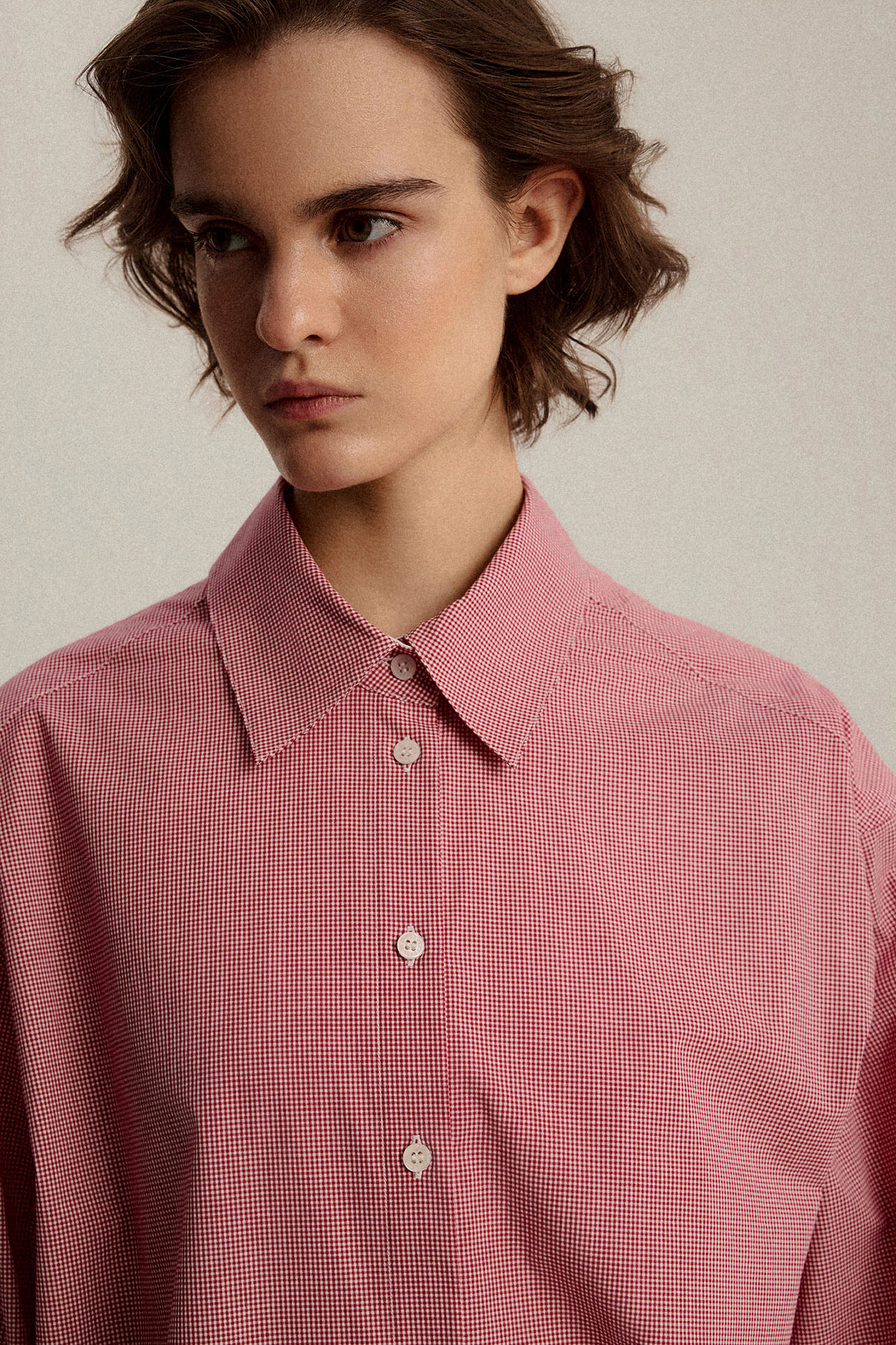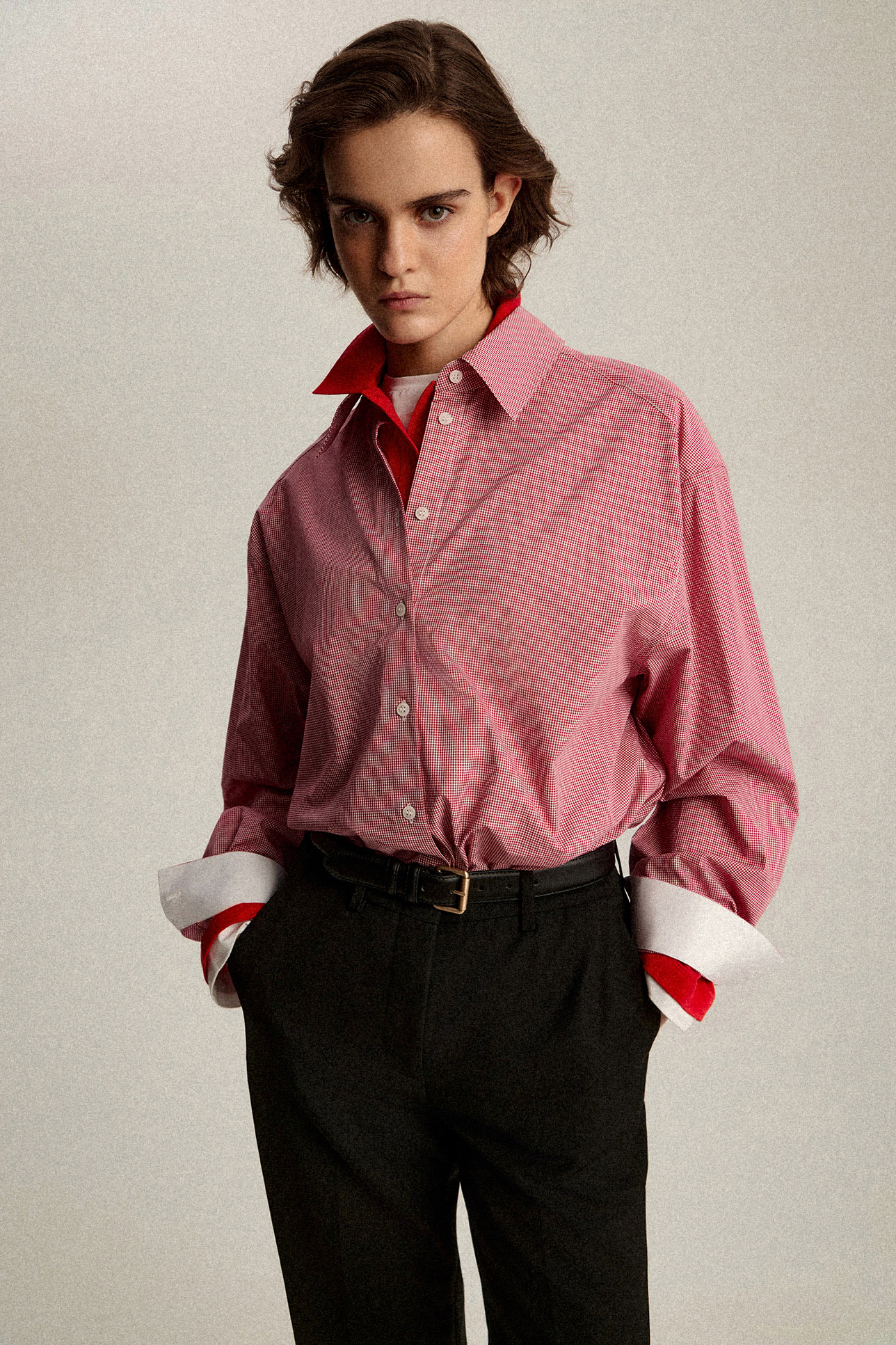 Рубашка в клетку с контрастным воротником