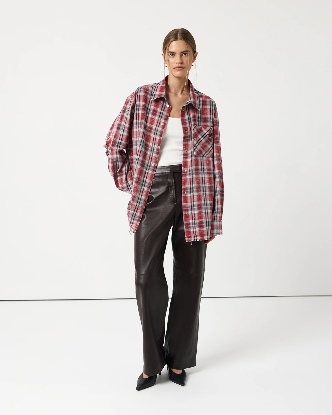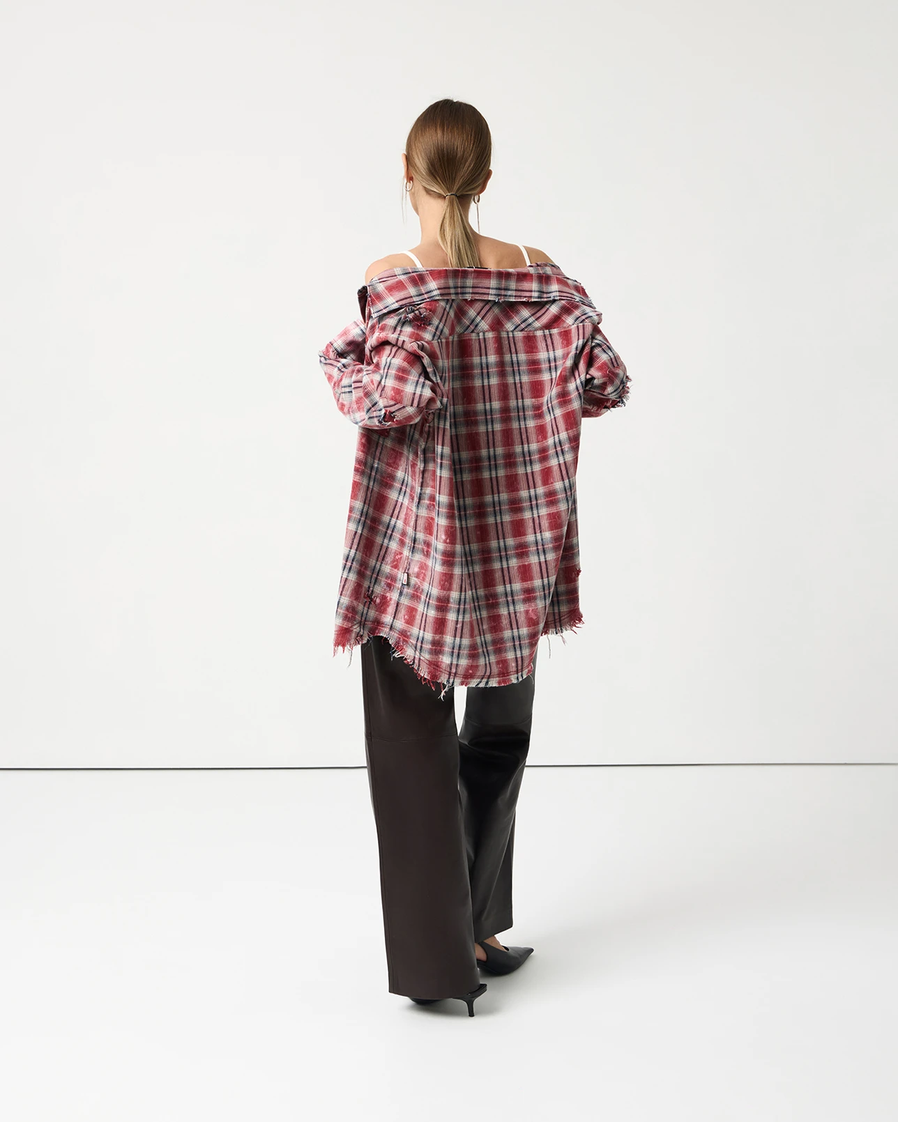 Рубашка рваная с эффектом варки красного цвета