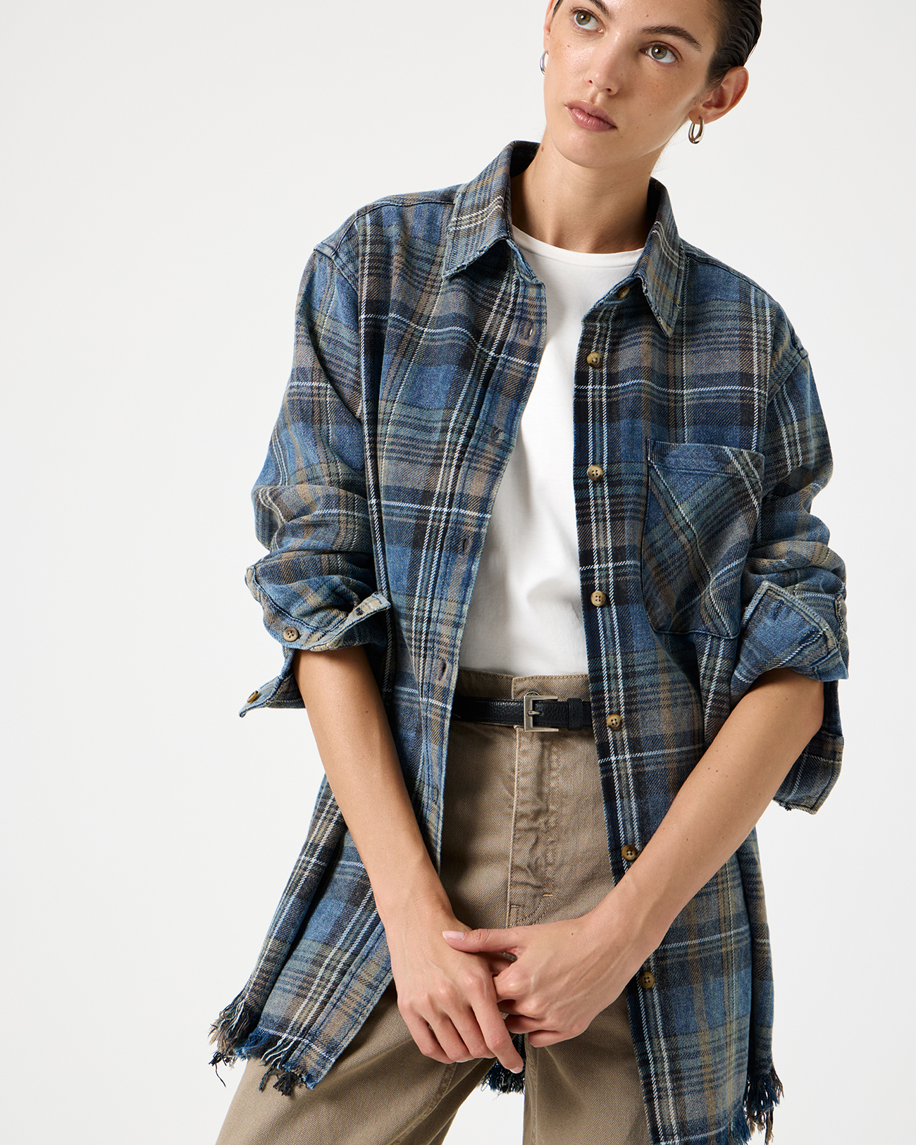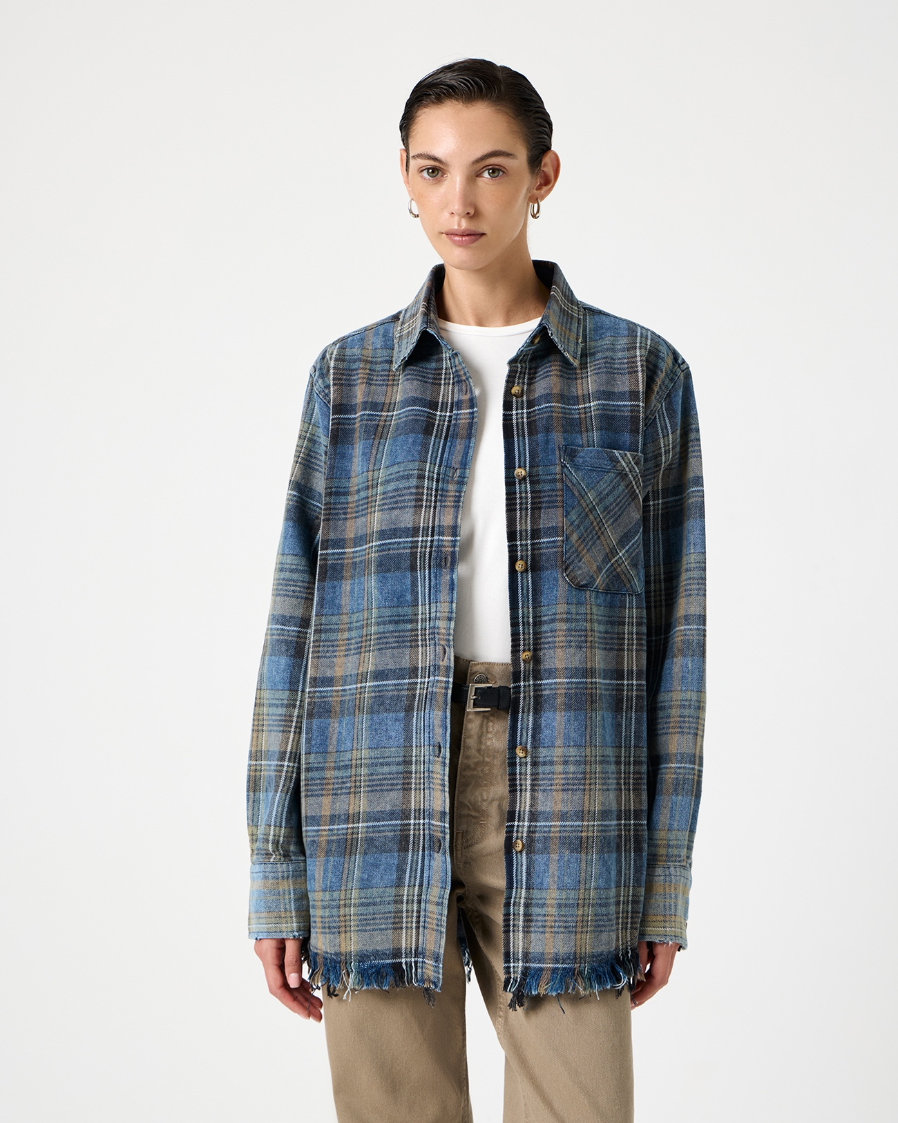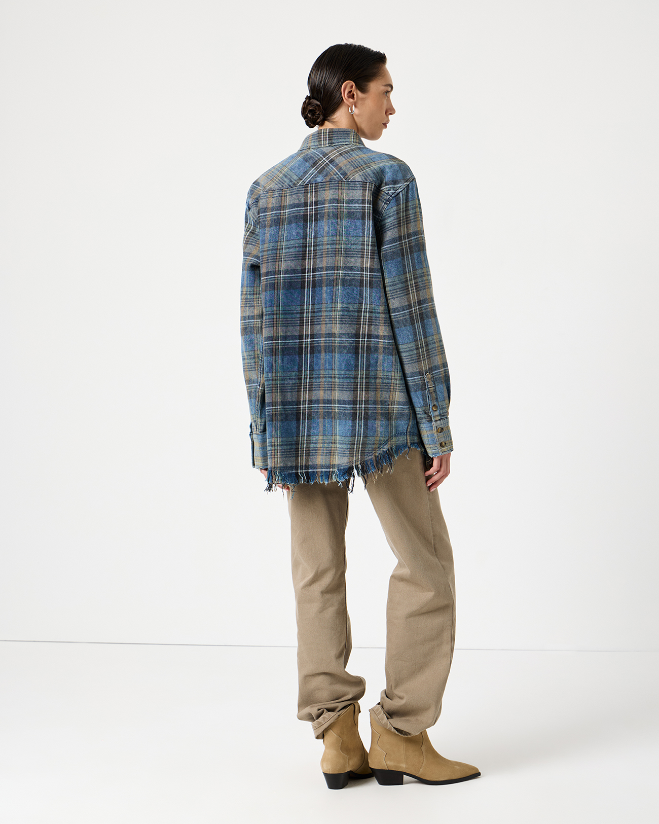 Рубашка с эффектом варки и необработанным краем синего цвета