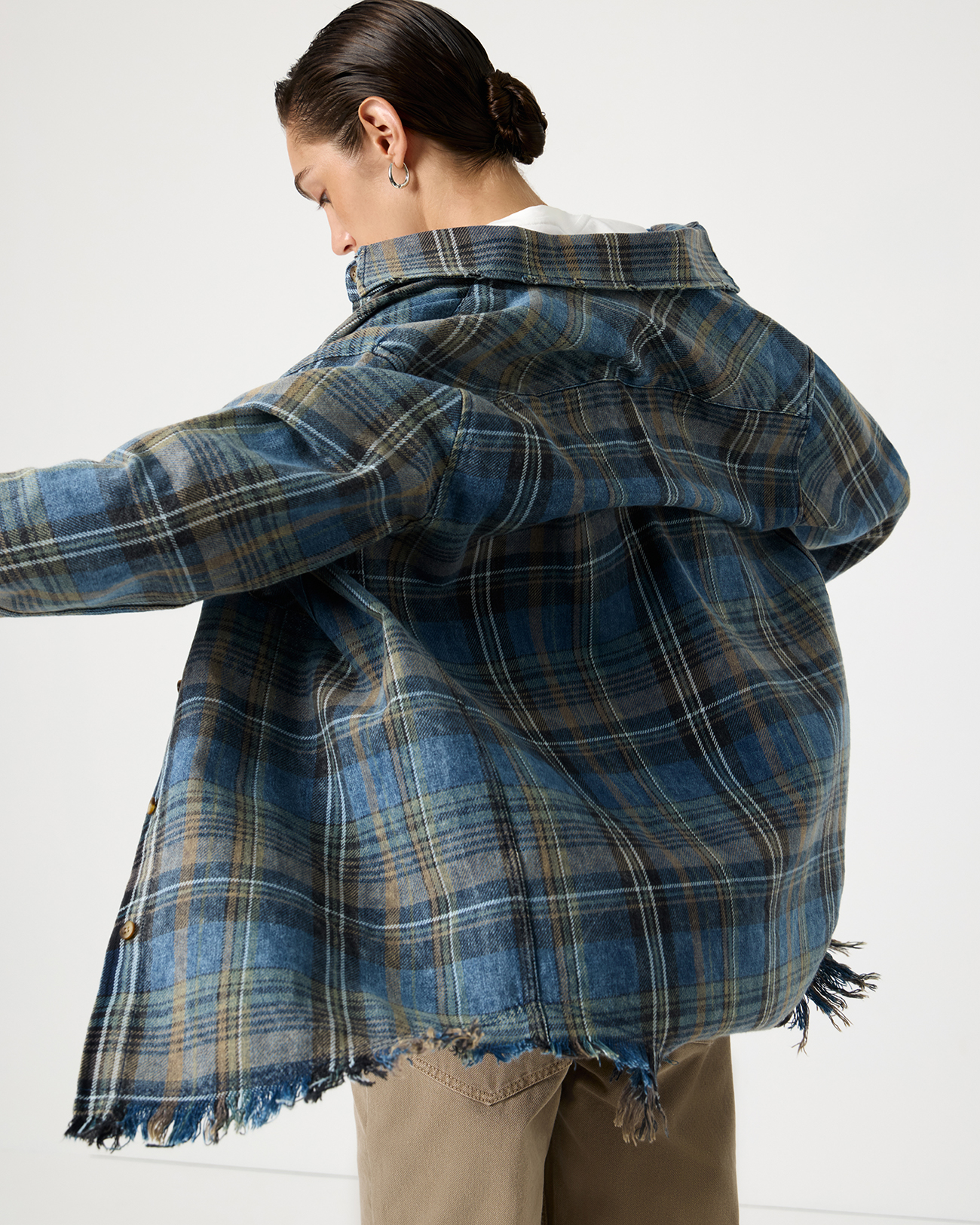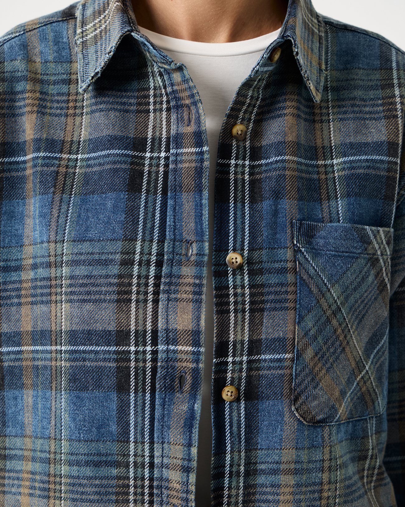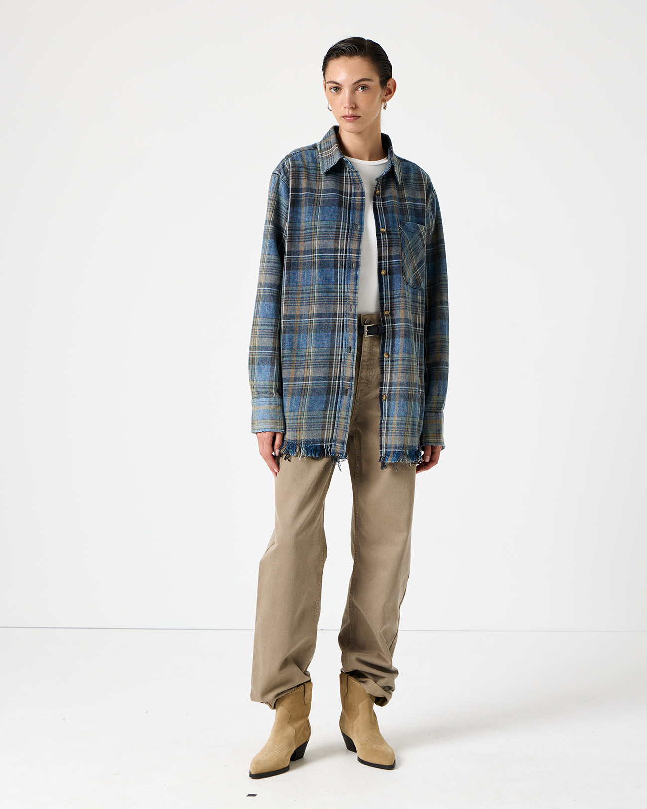 Рубашка с эффектом варки и необработанным краем синего цвета