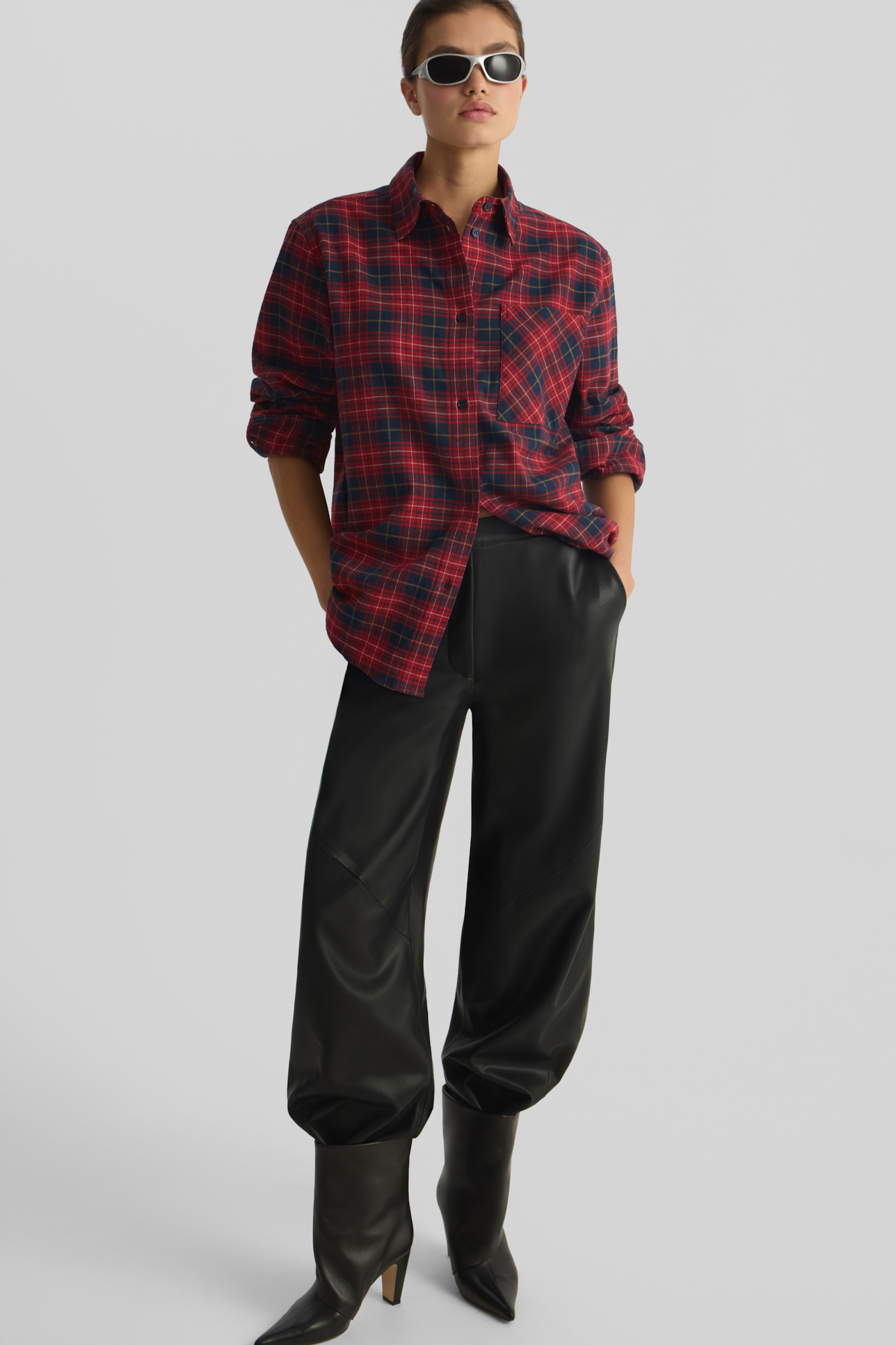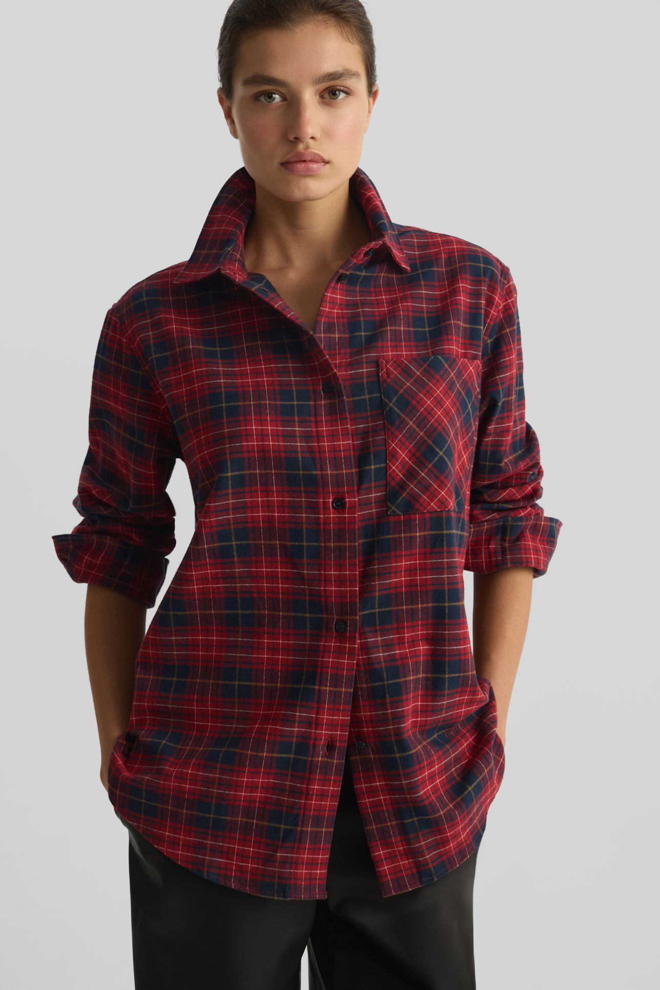 Рубашка в клетку бордового цвета