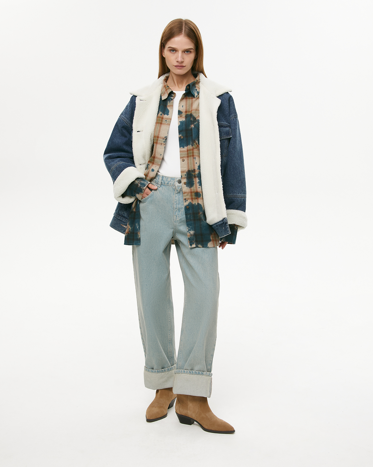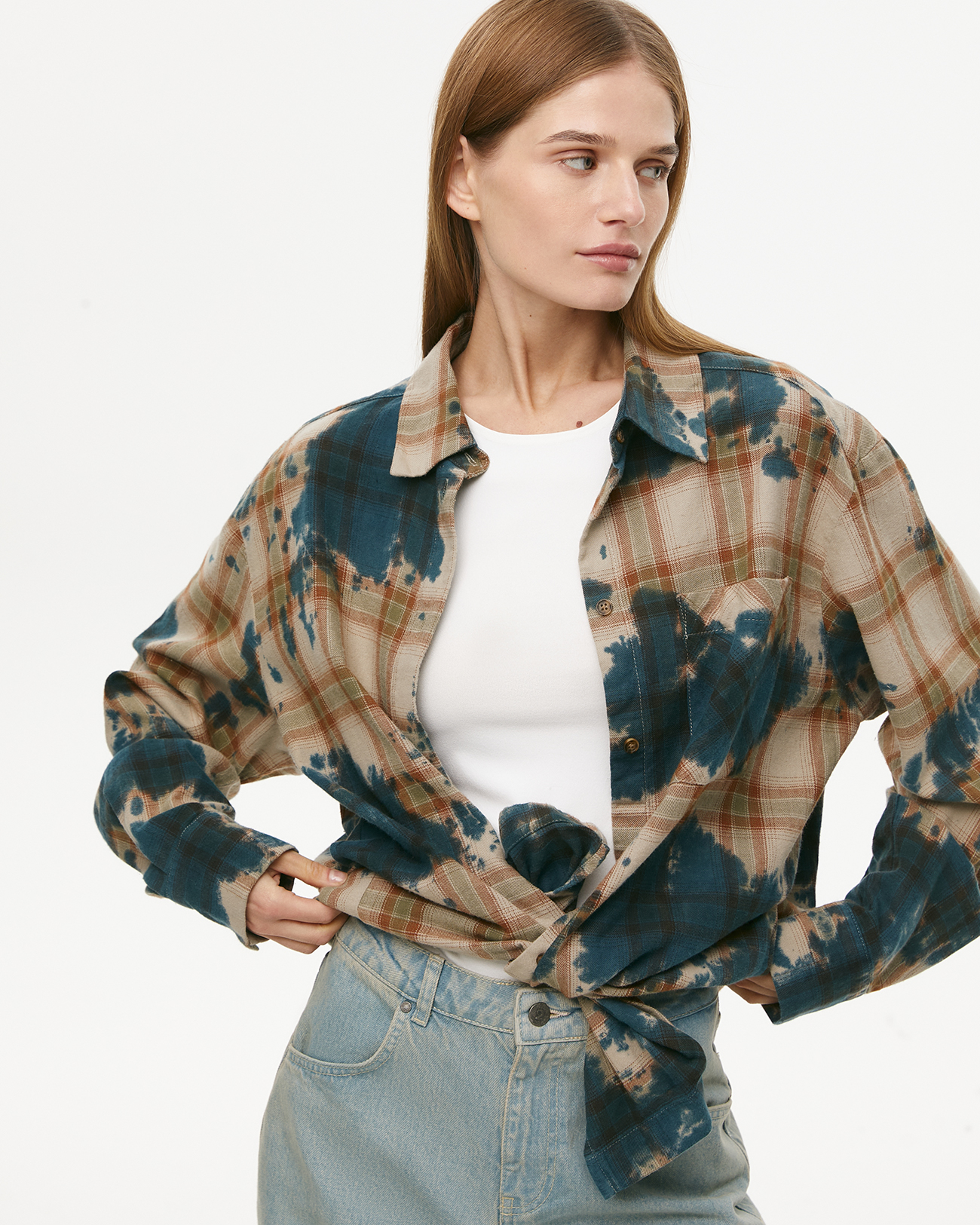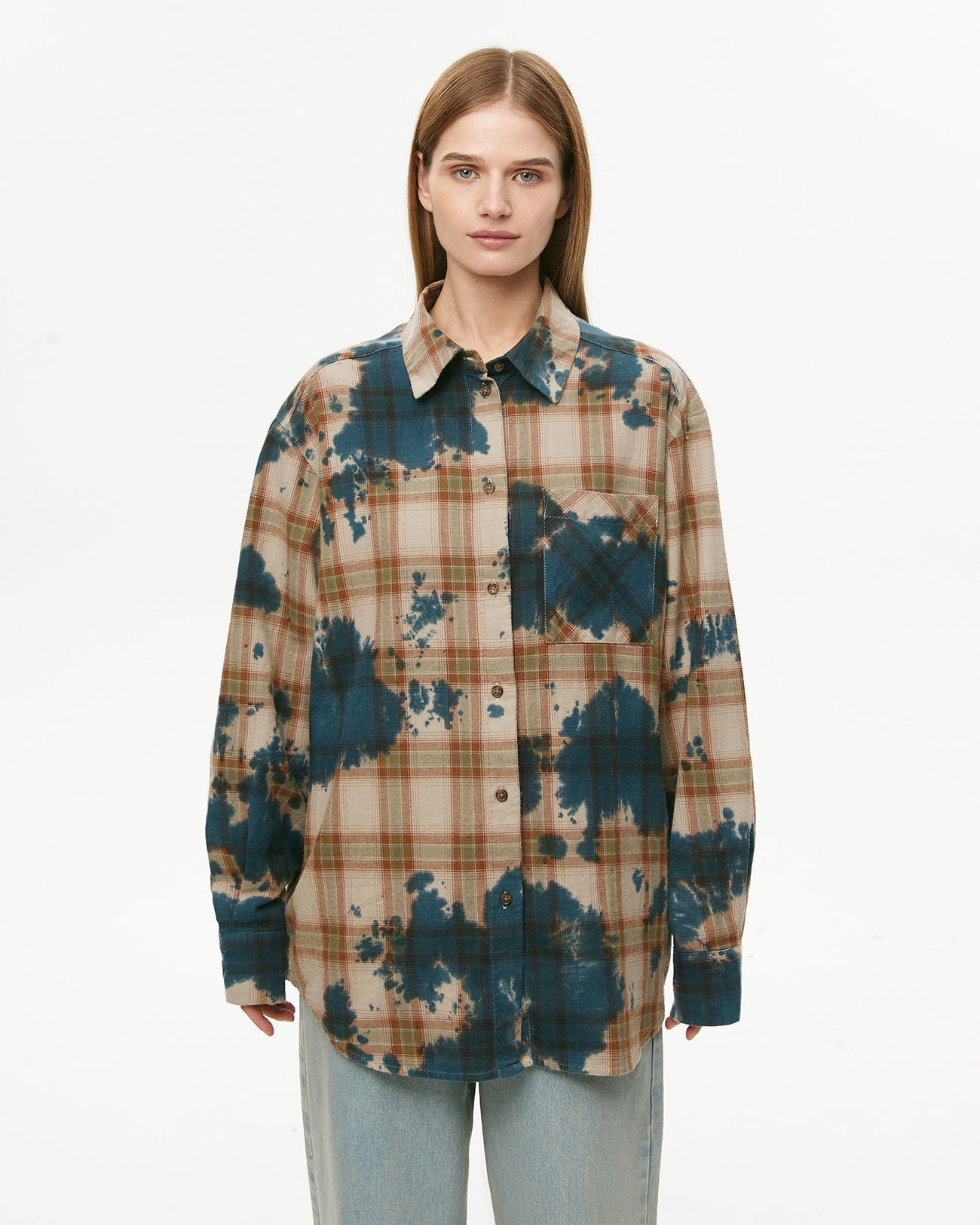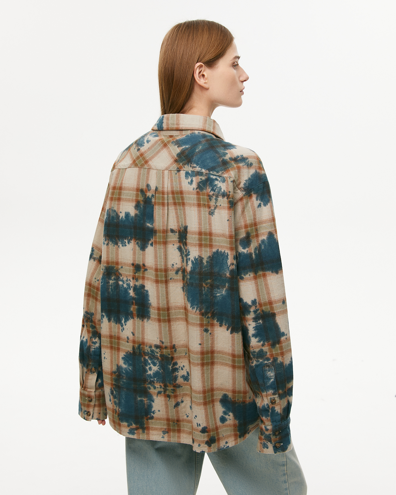 Рубашка в клетку с эффектом тай-дай зеленого цвета