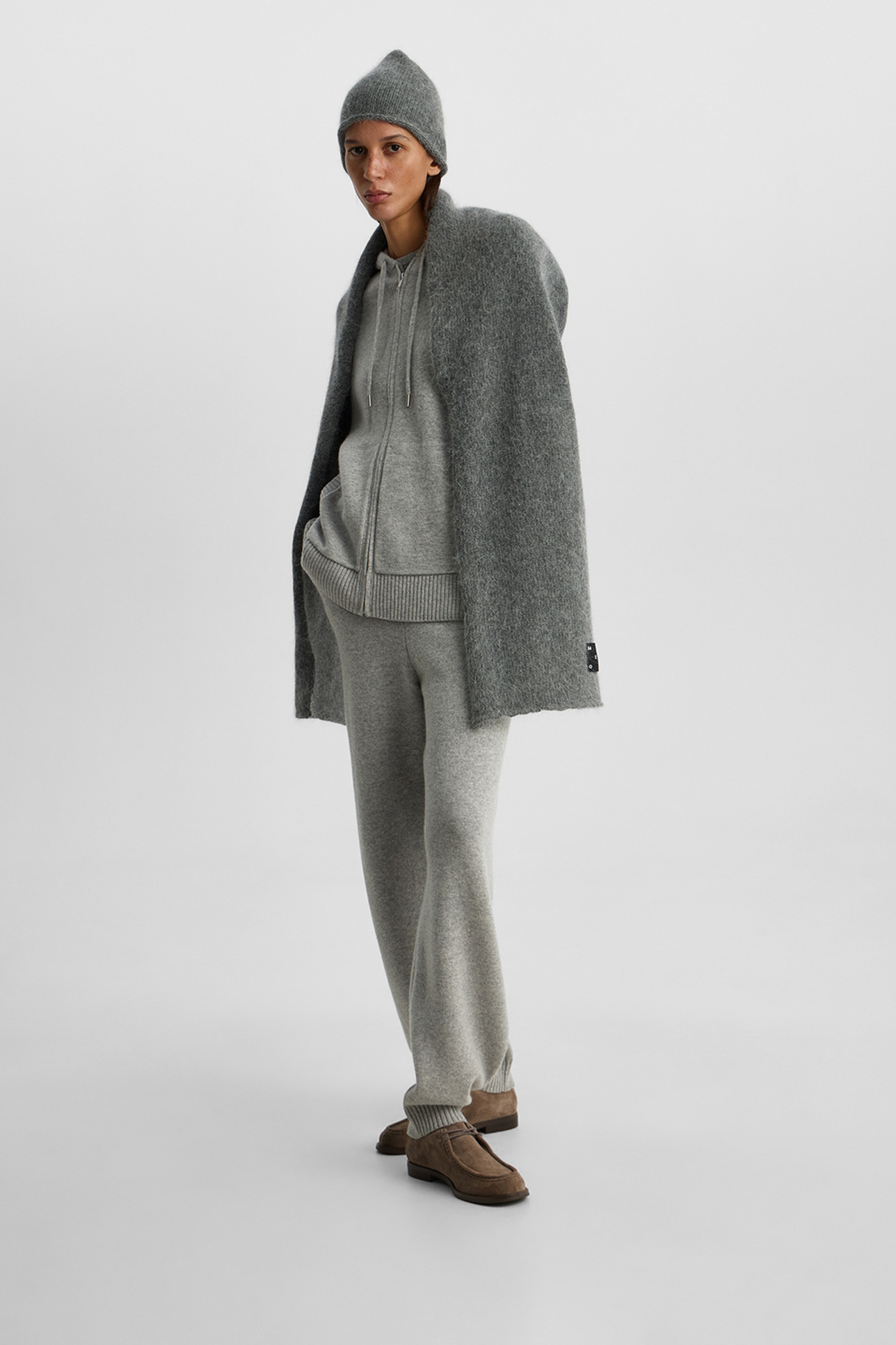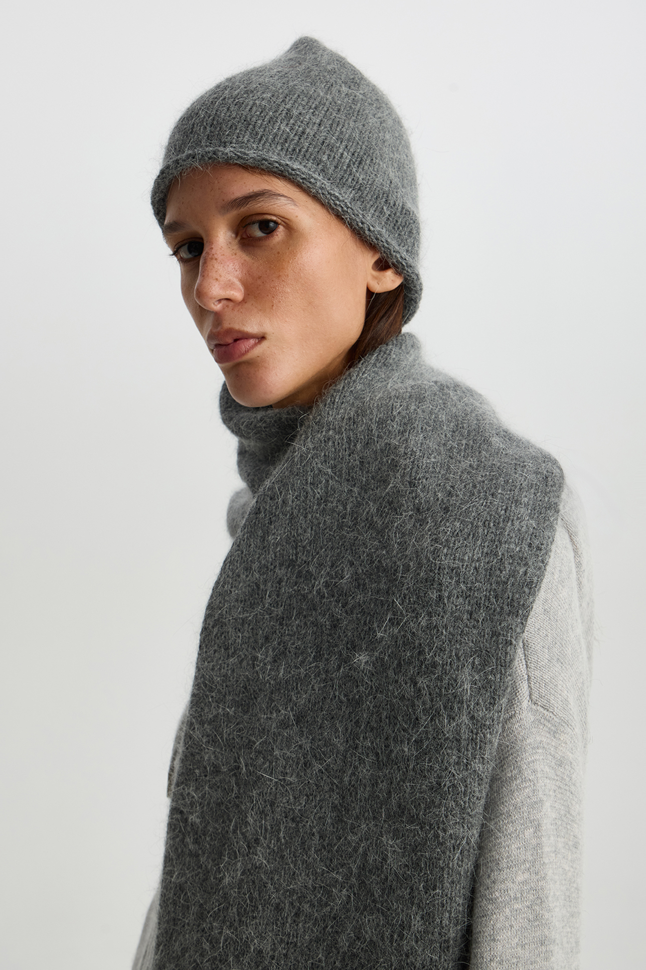 Шапка из ангорской шерсти темно-серого цвета