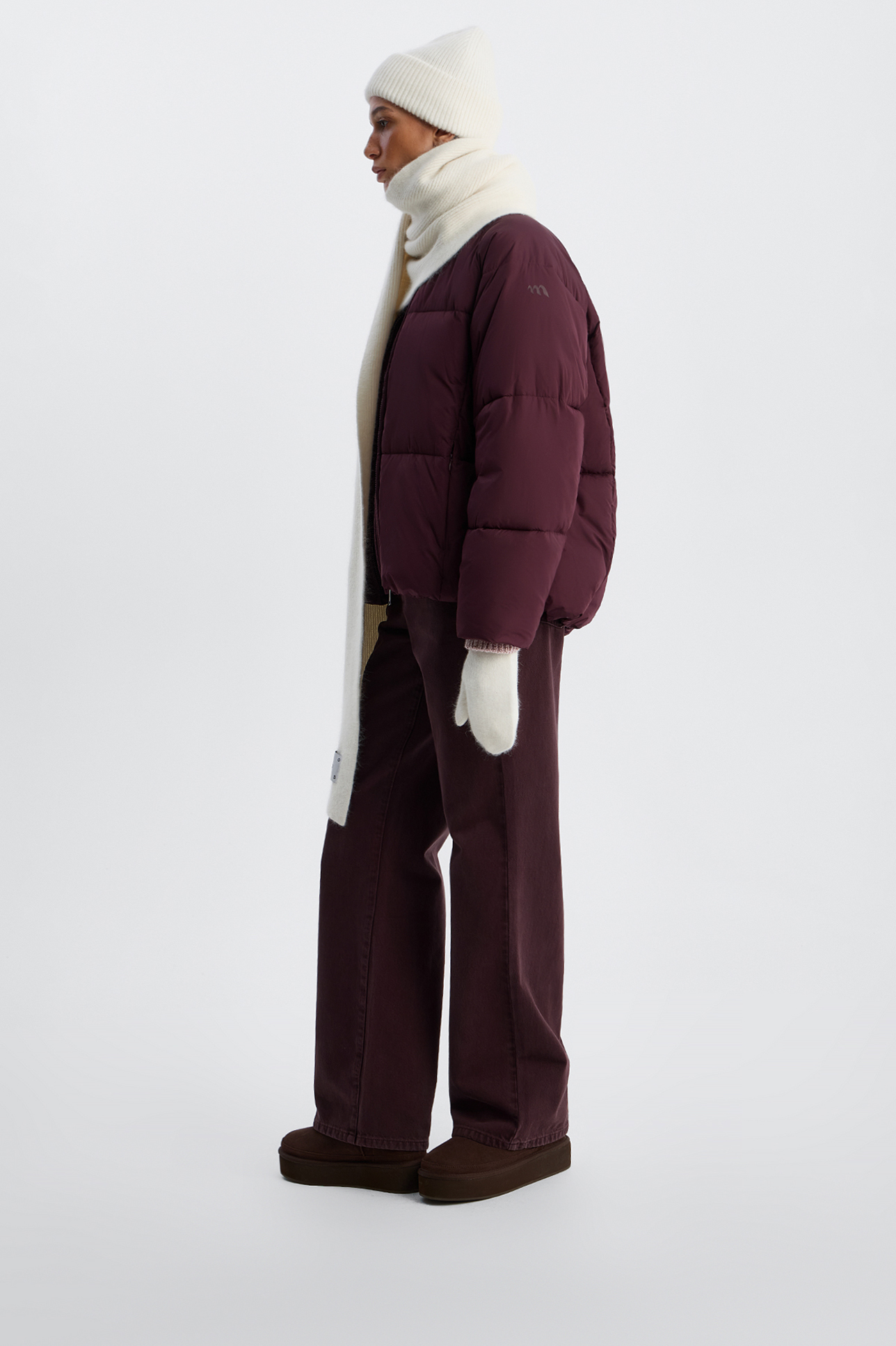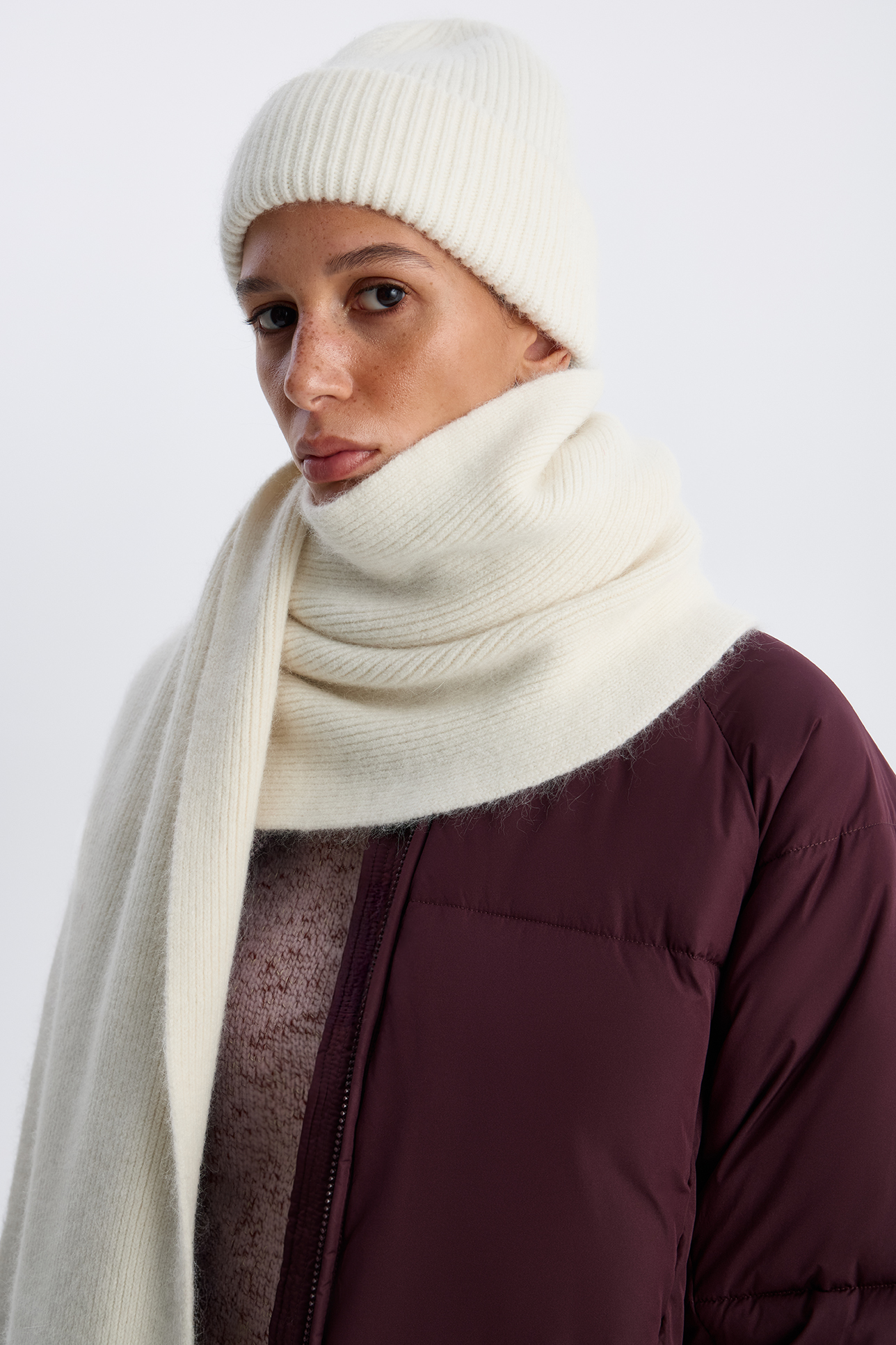Шапка с шерстью енота молочного цвета