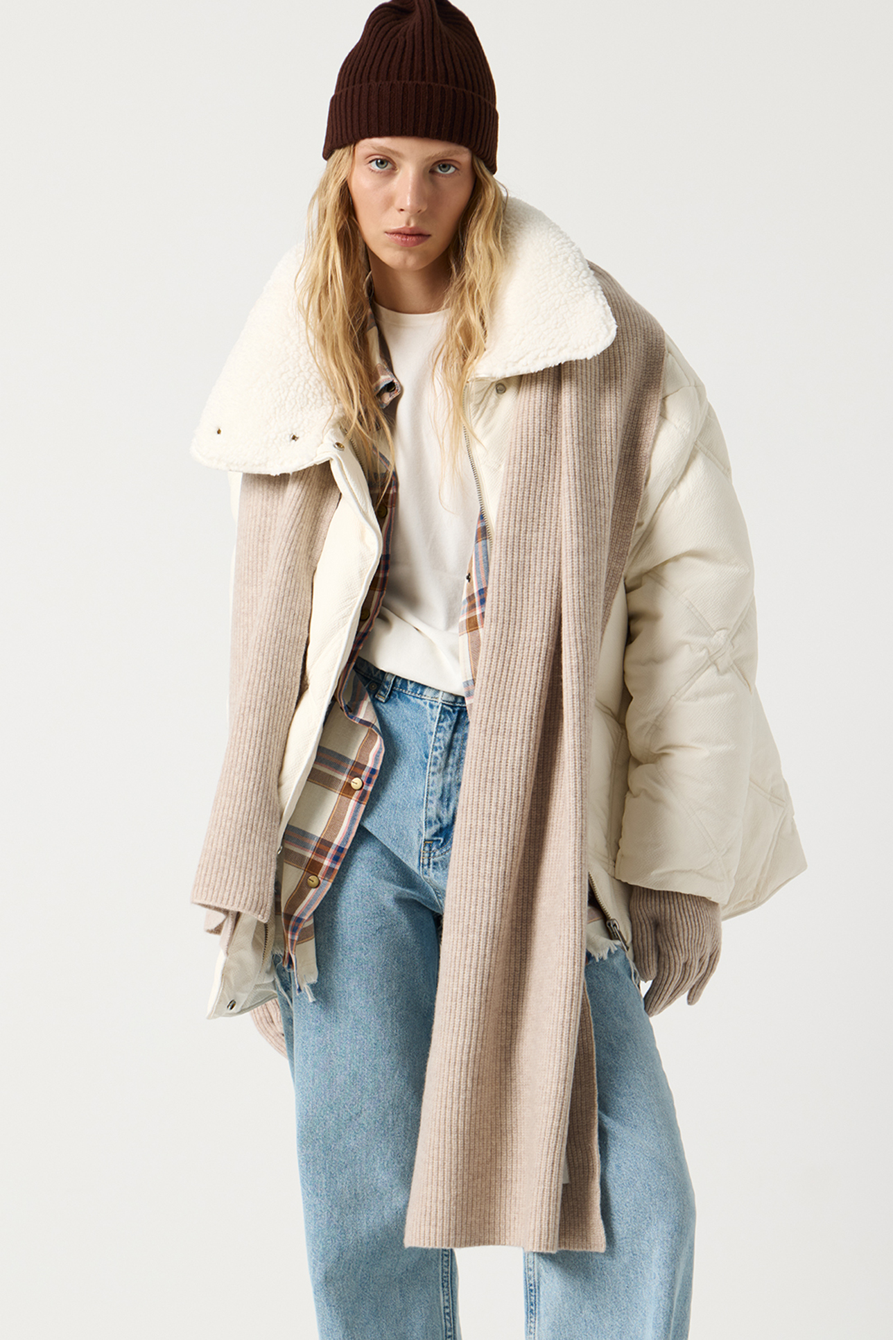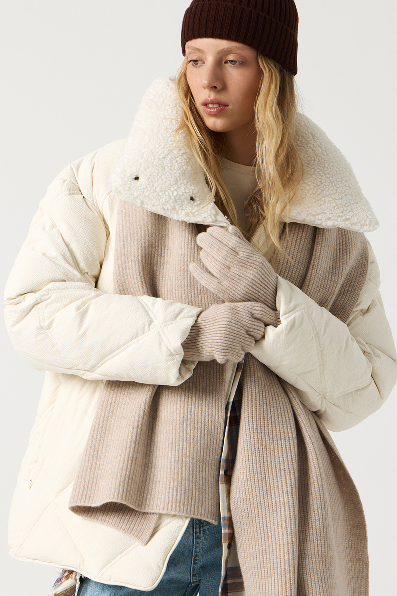 Шарф из шерсти мериноса бежевого цвета